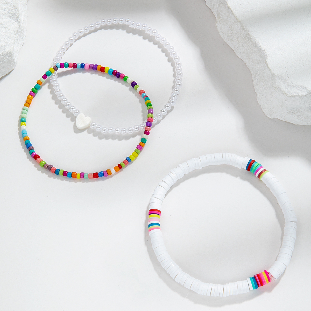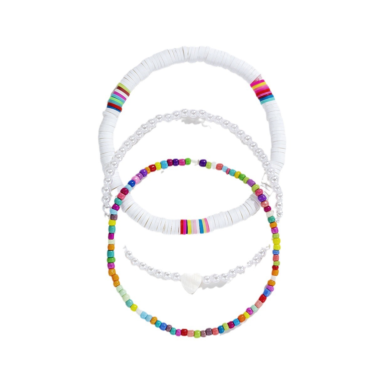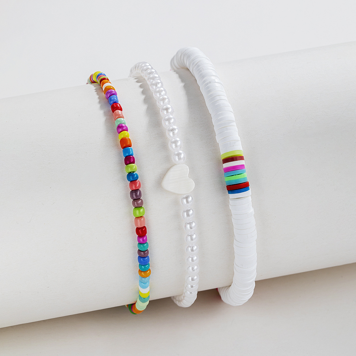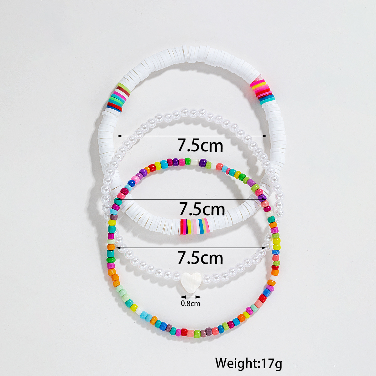 波西米亚度假风软陶爱心珍珠随机彩色米珠3层弹力脚链男女通用