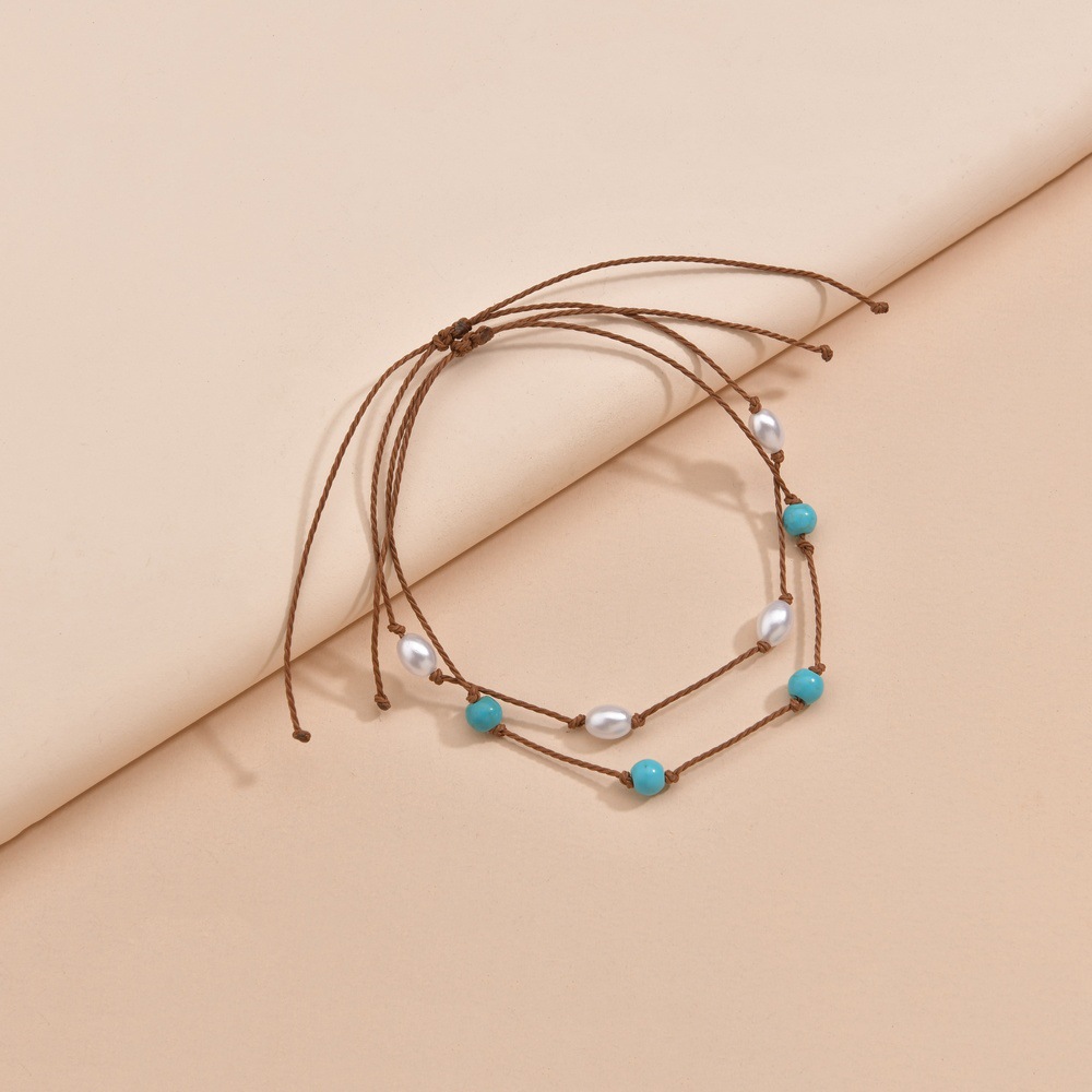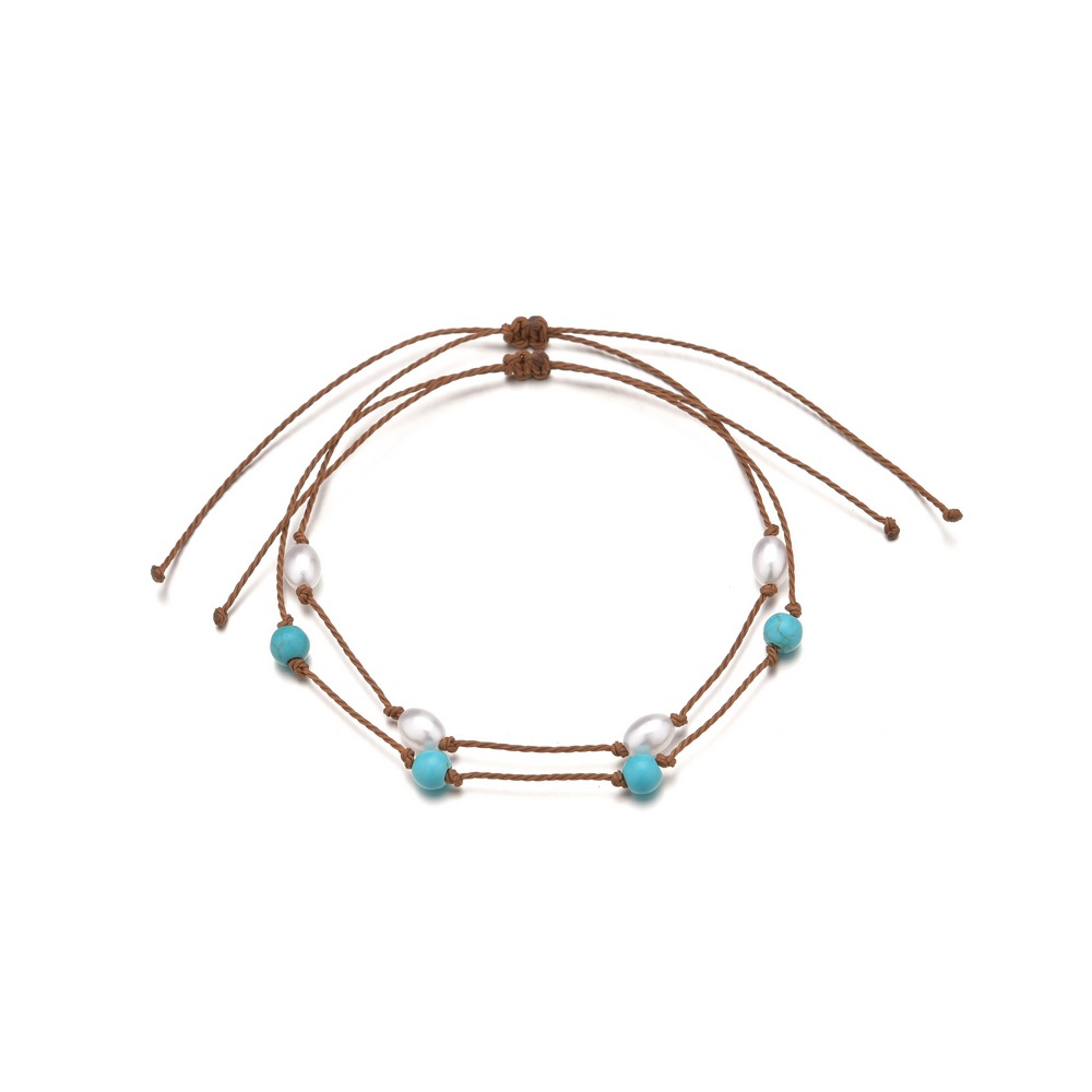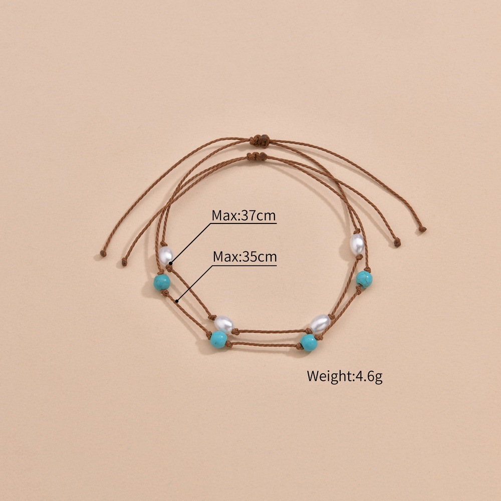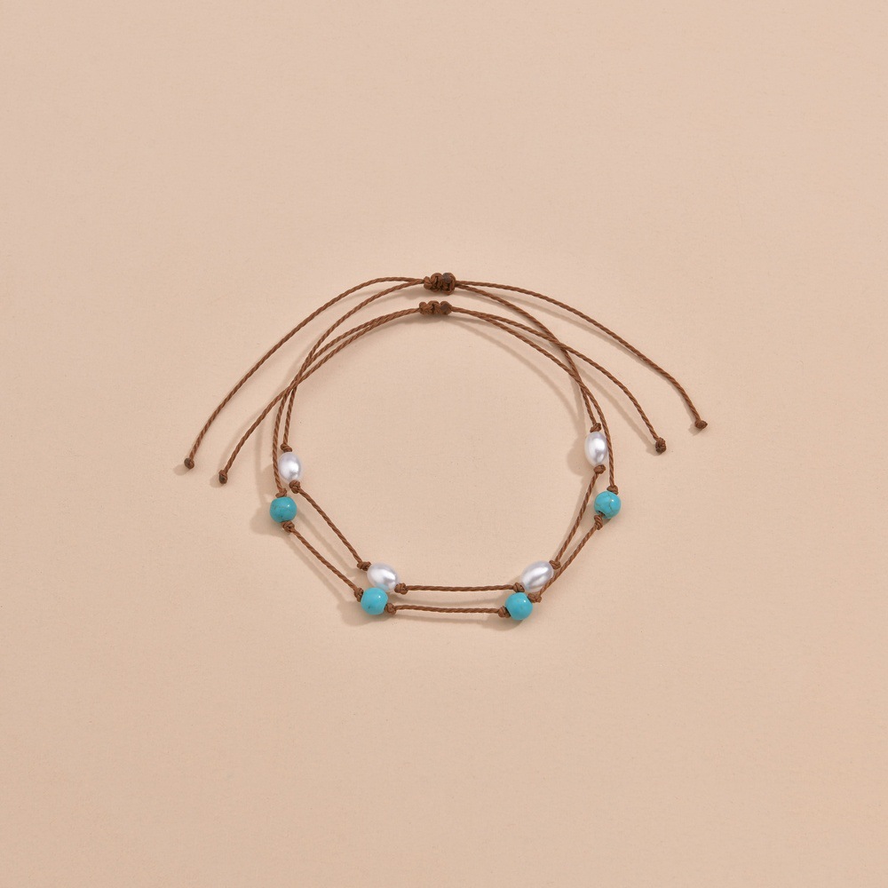 欧美跨境饰品复古时尚珍珠绿色串珠双层可调节女士脚链首饰批发
