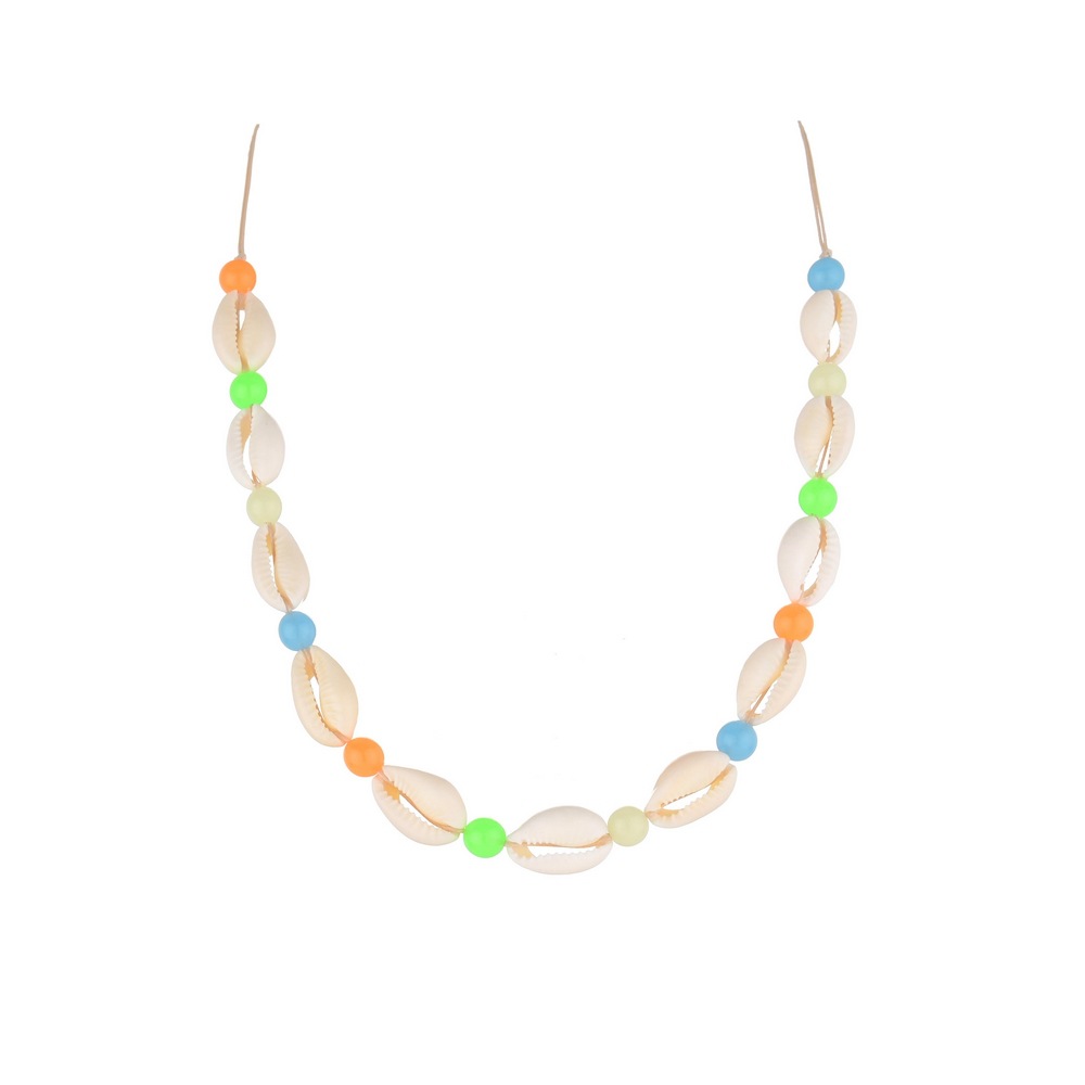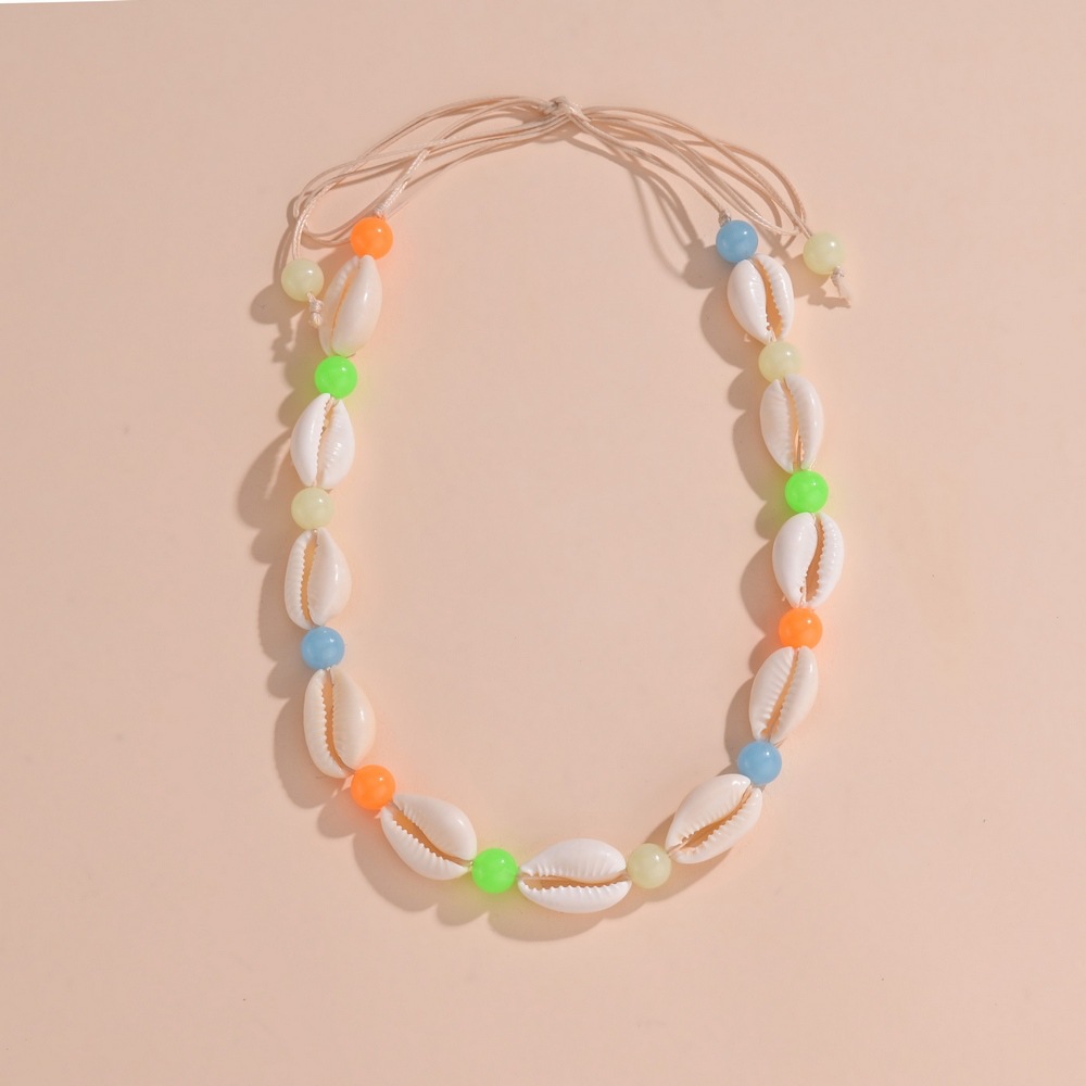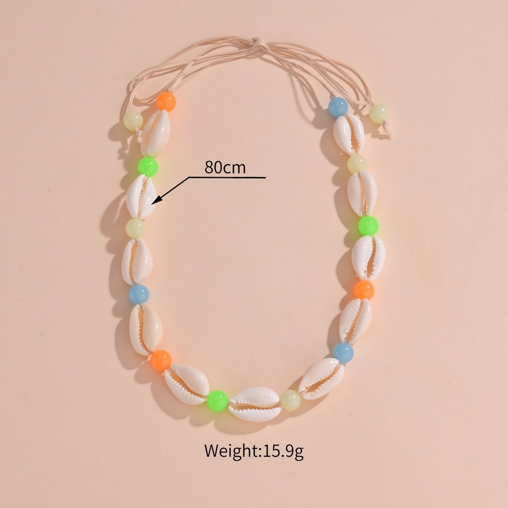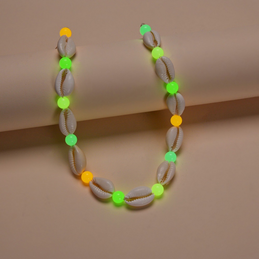 时尚度假风天然贝壳随机夜光亚克力串珠防水蜡线编织可调节项链