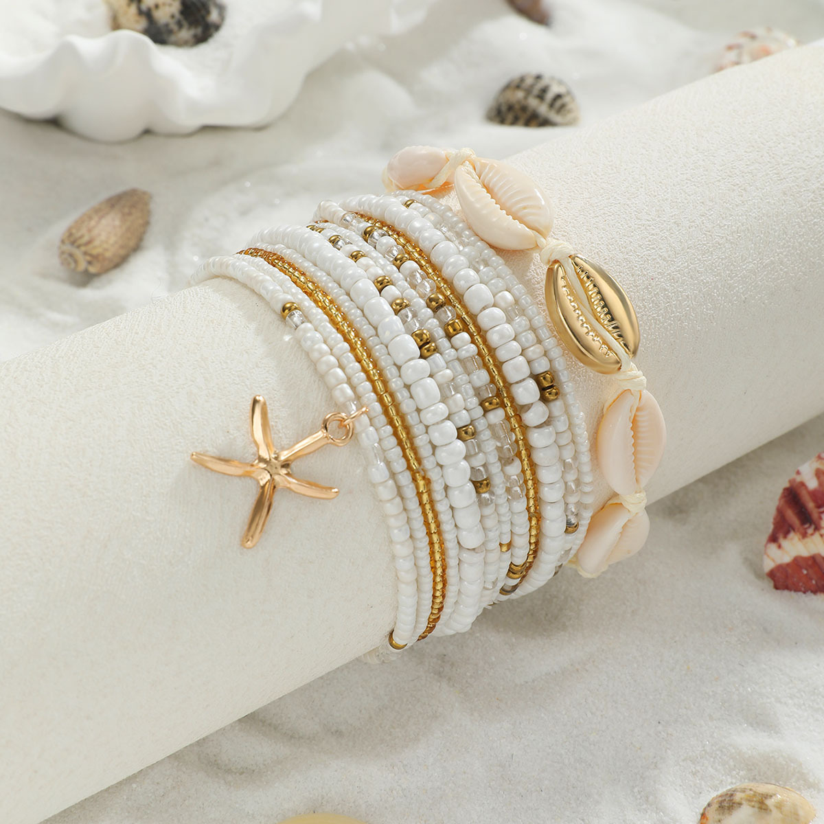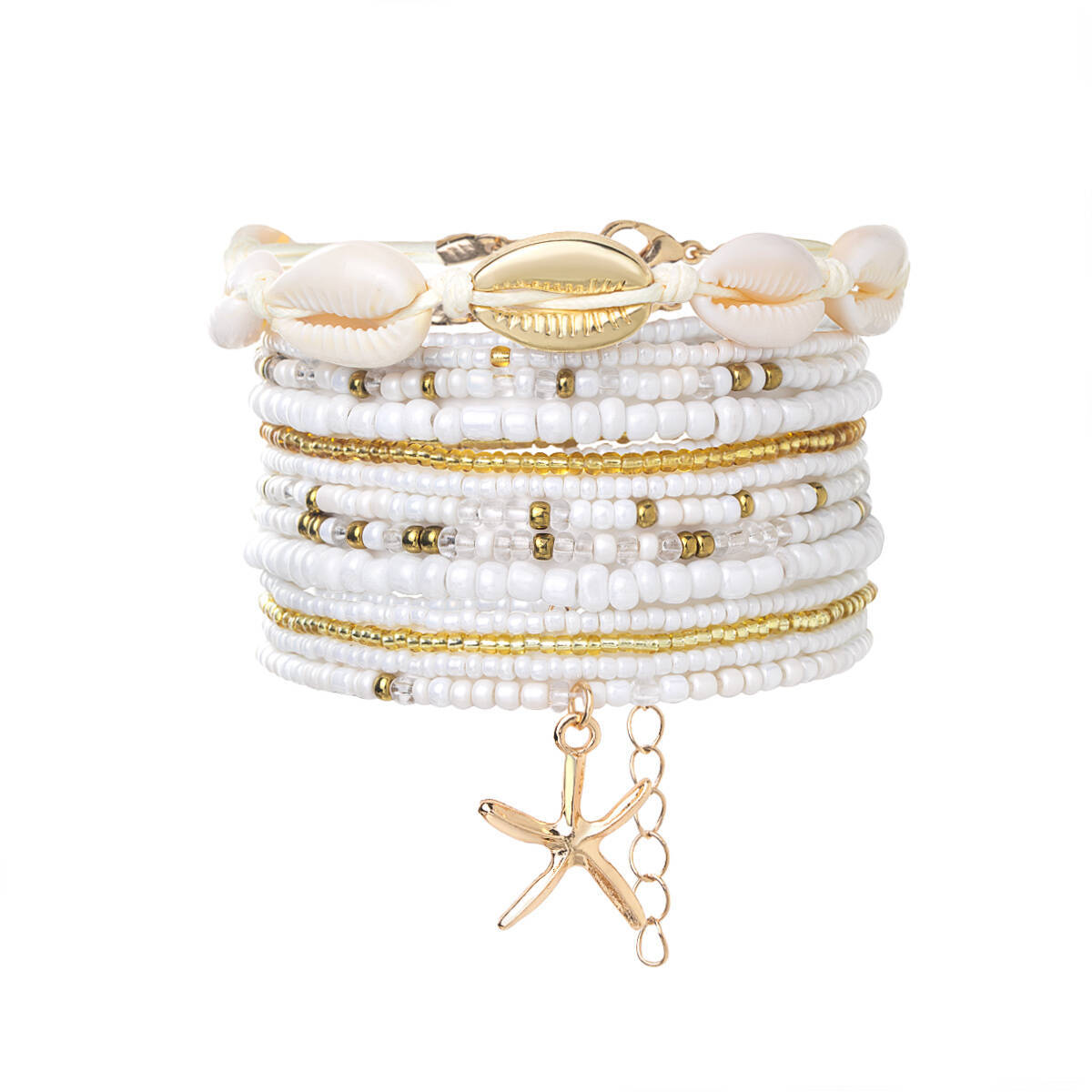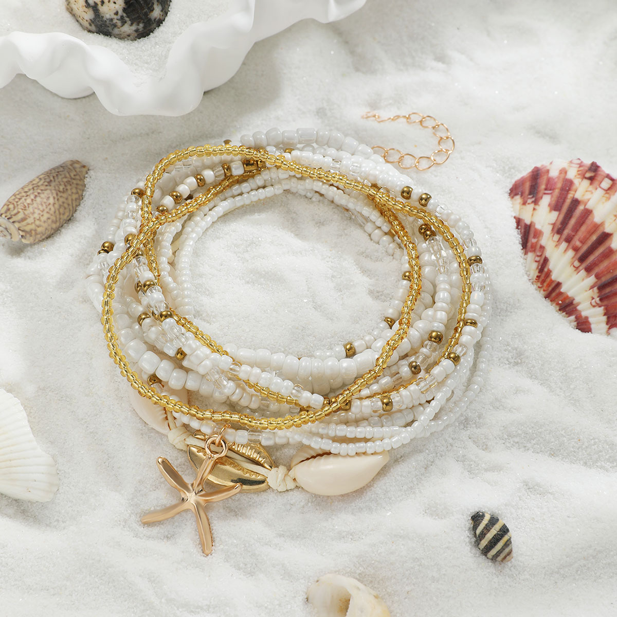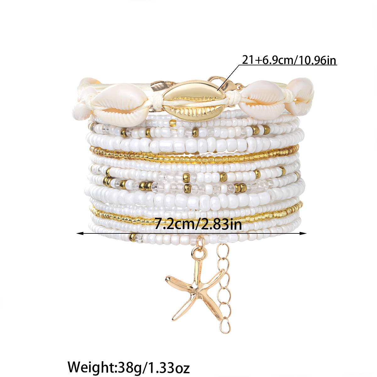 时尚海洋风合金海星吊坠贝壳米珠防水蜡线编织弹力女士脚链13件套