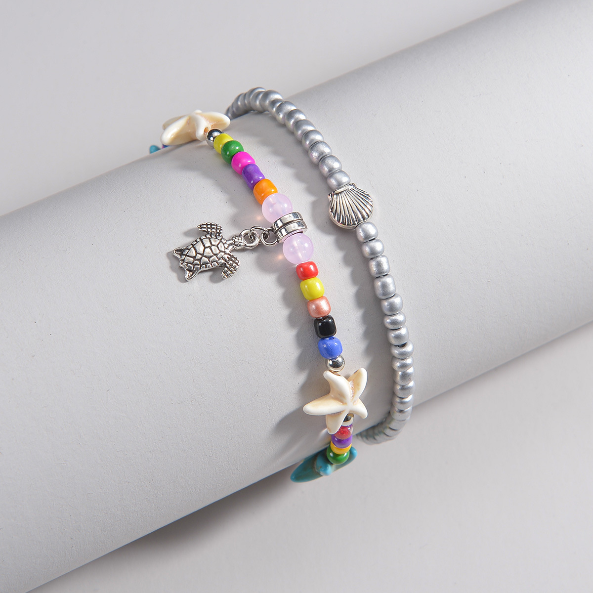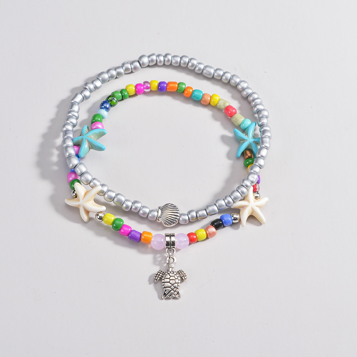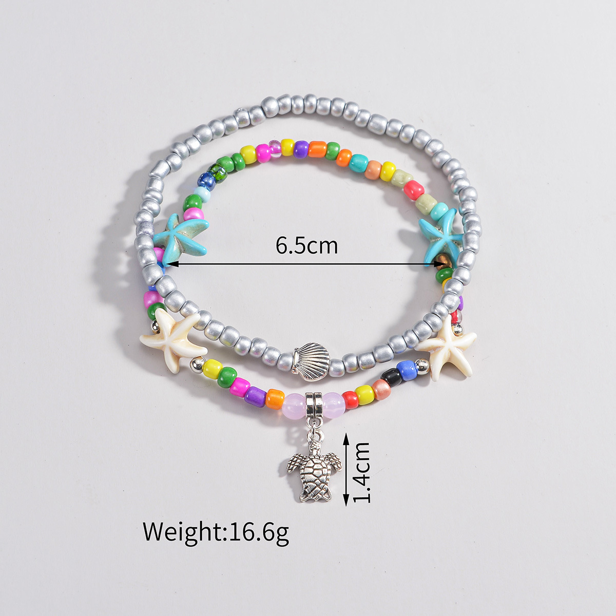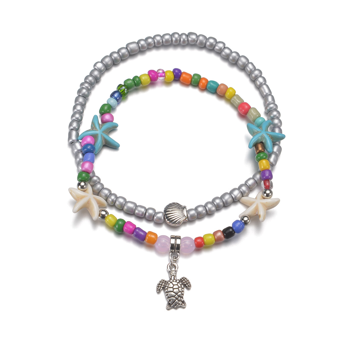 波西米亚民族风合金海龟吊坠松石随机海星彩色米珠弹力脚链2件套