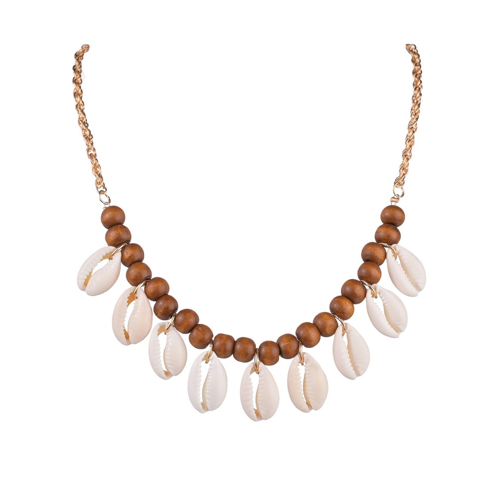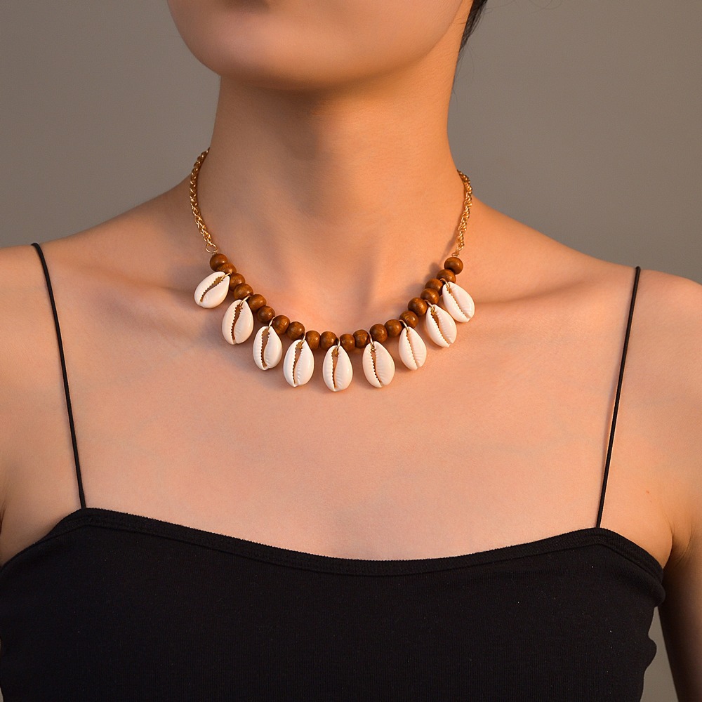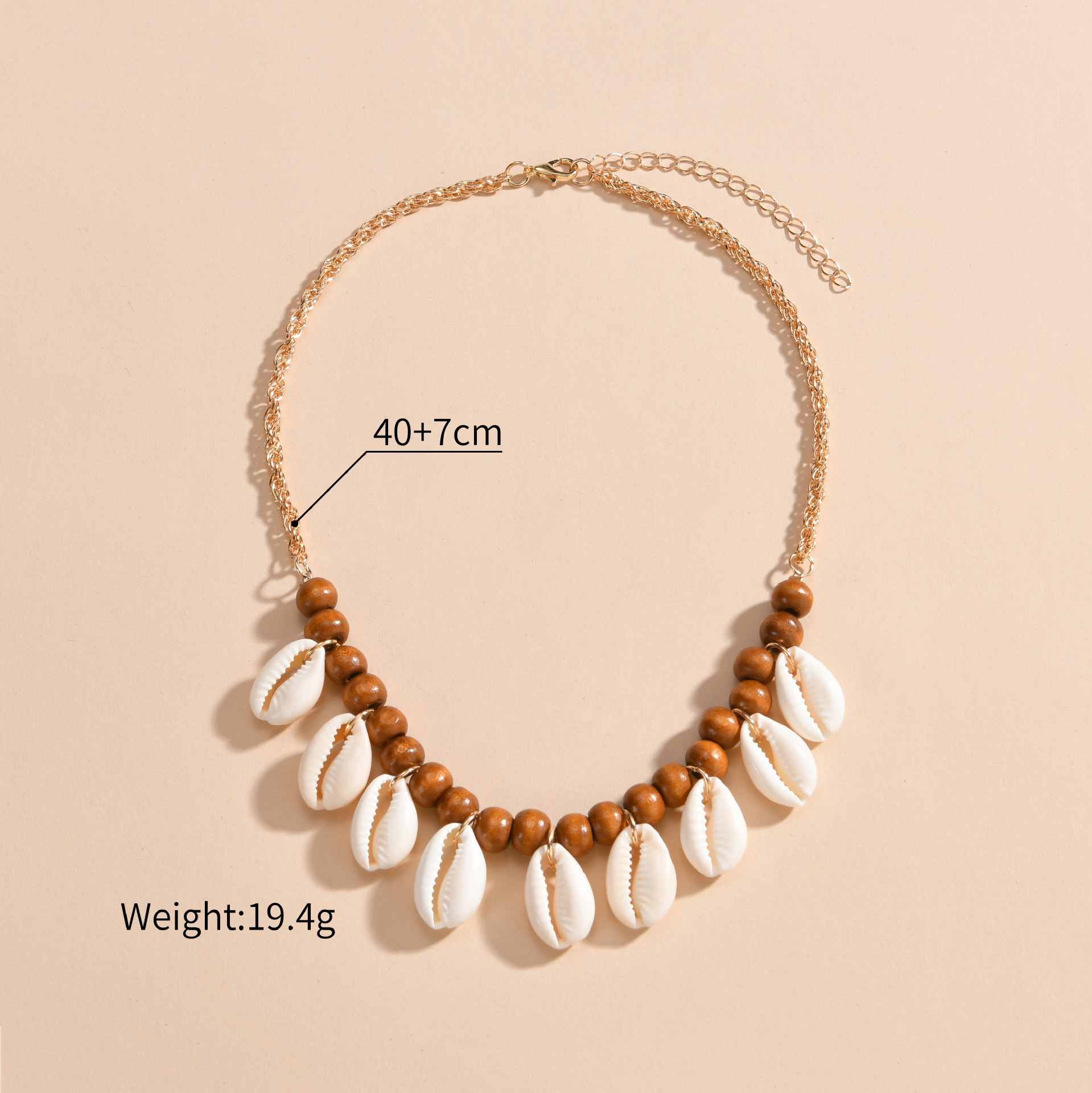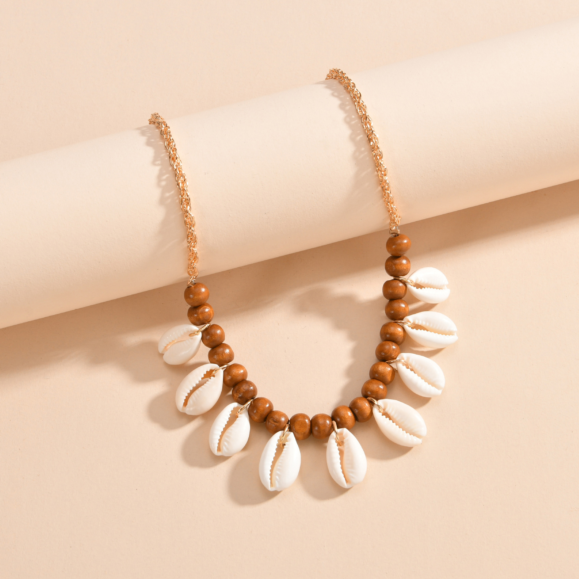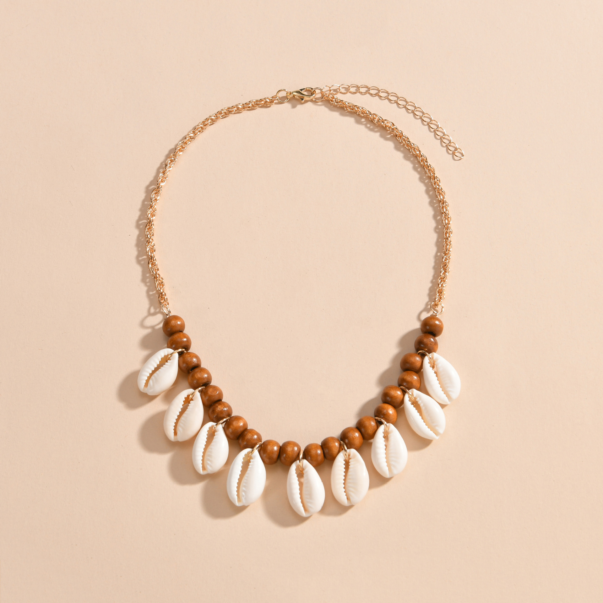 波西米亚度假风贝壳吊坠木珠合金女士项链适合沙滩派对通勤