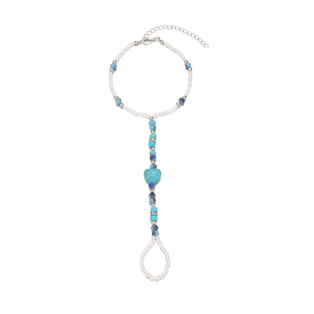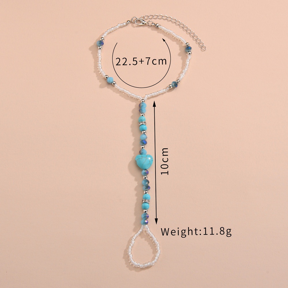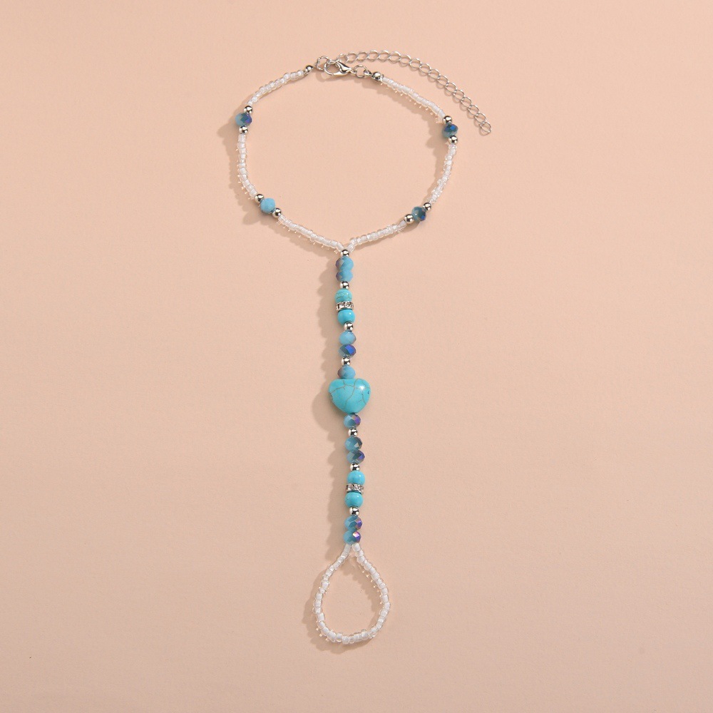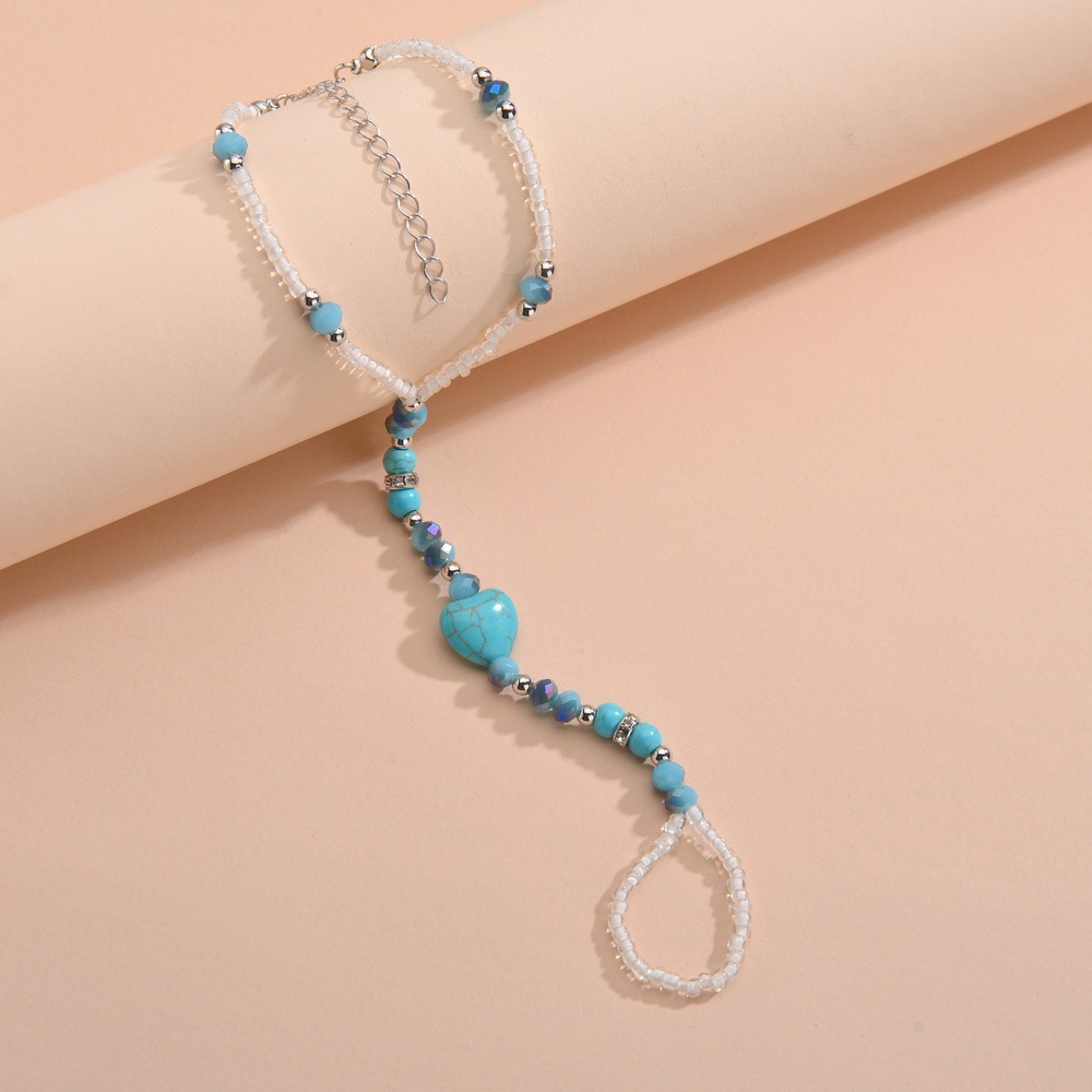 波西米亚度假风爱心松石串珠随机颜色水晶米珠穿指脚链男女通用