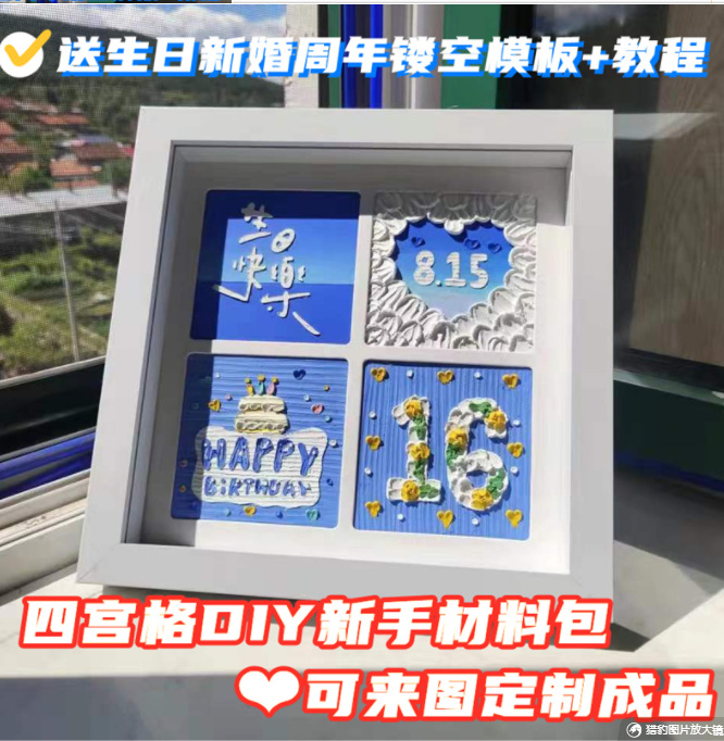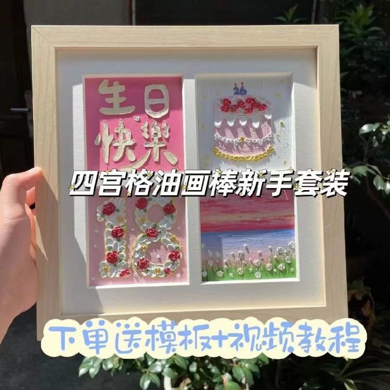 diy四宫格相框油画棒画框全套材料包抖音小红书四宫格DIY生日快乐