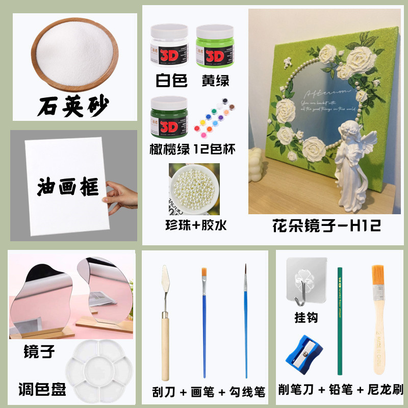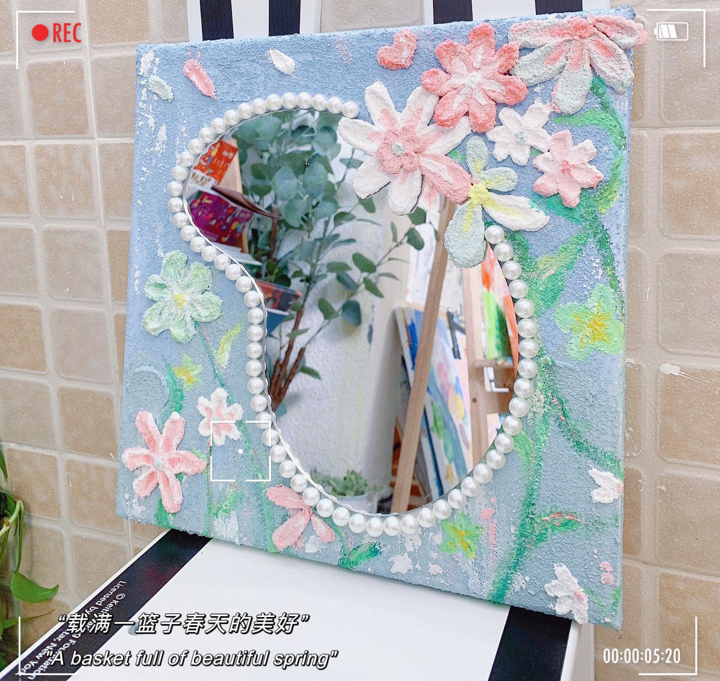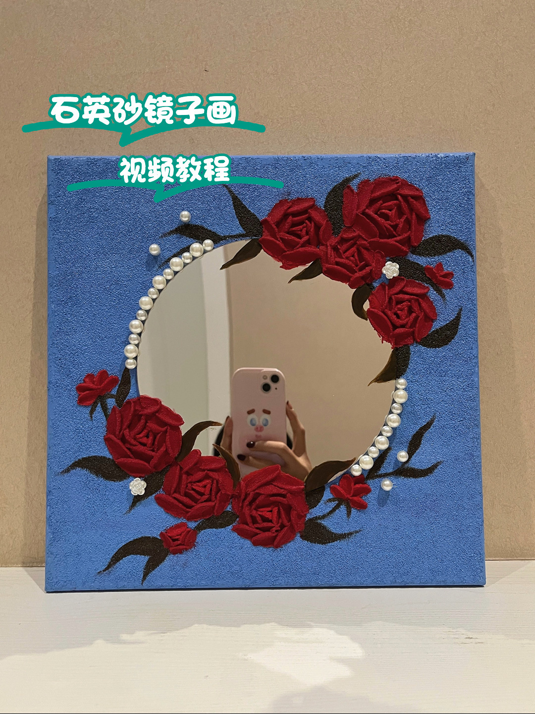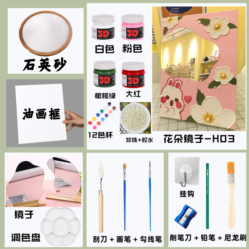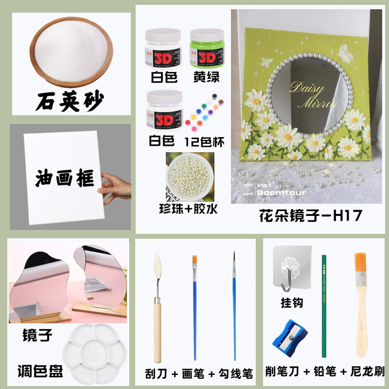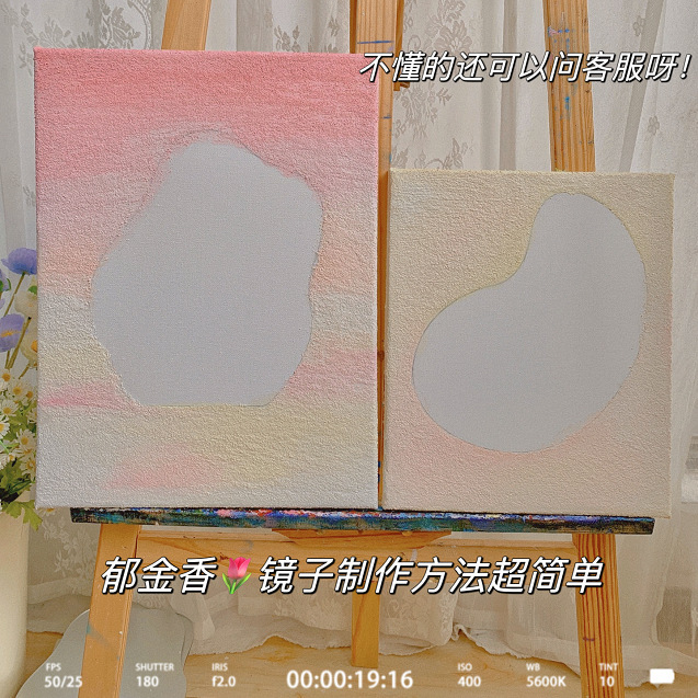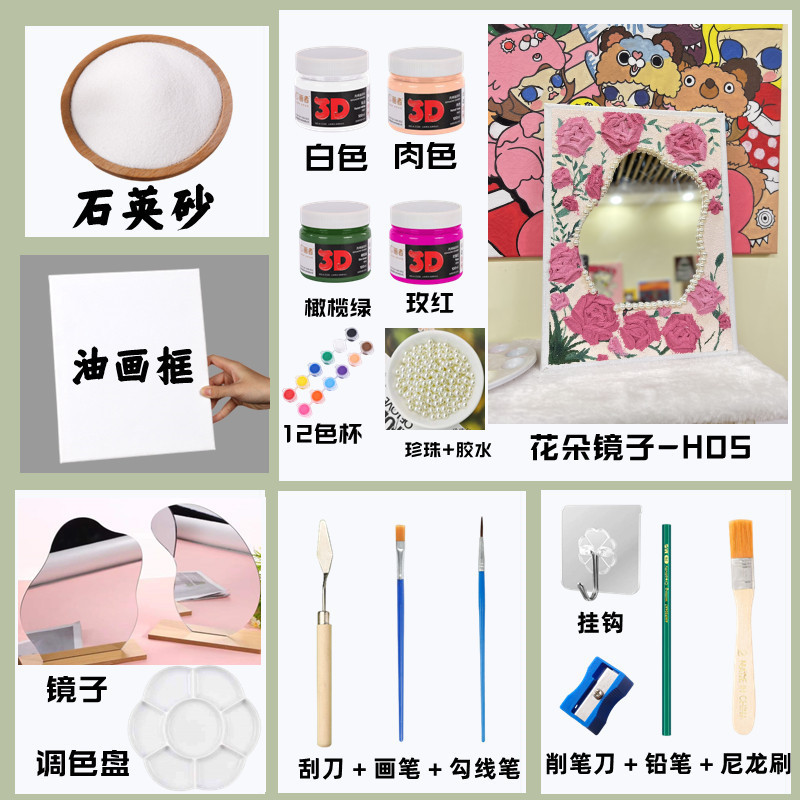 郁金香镜子DIY石英砂丙烯肌理画异形云朵化妆镜立体油彩画材料包