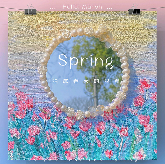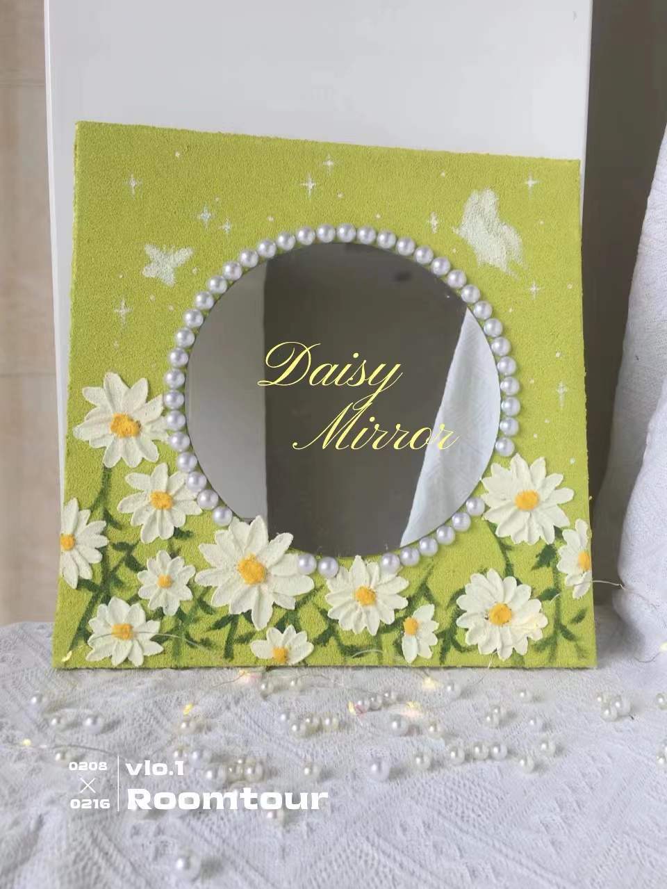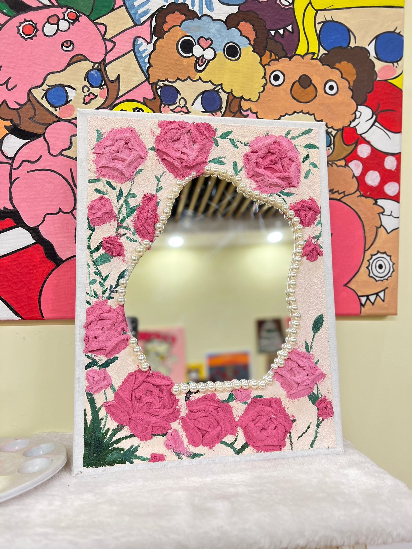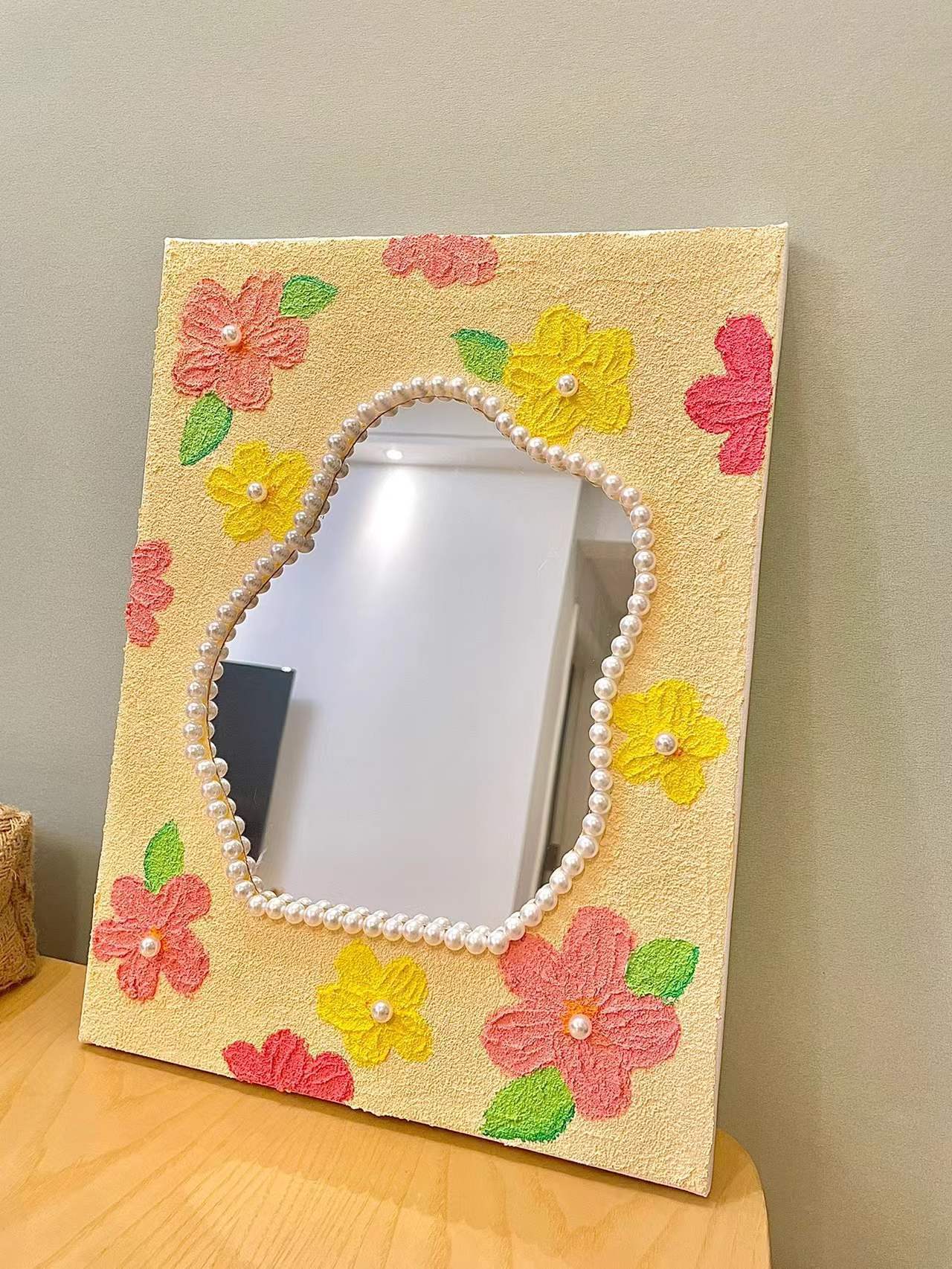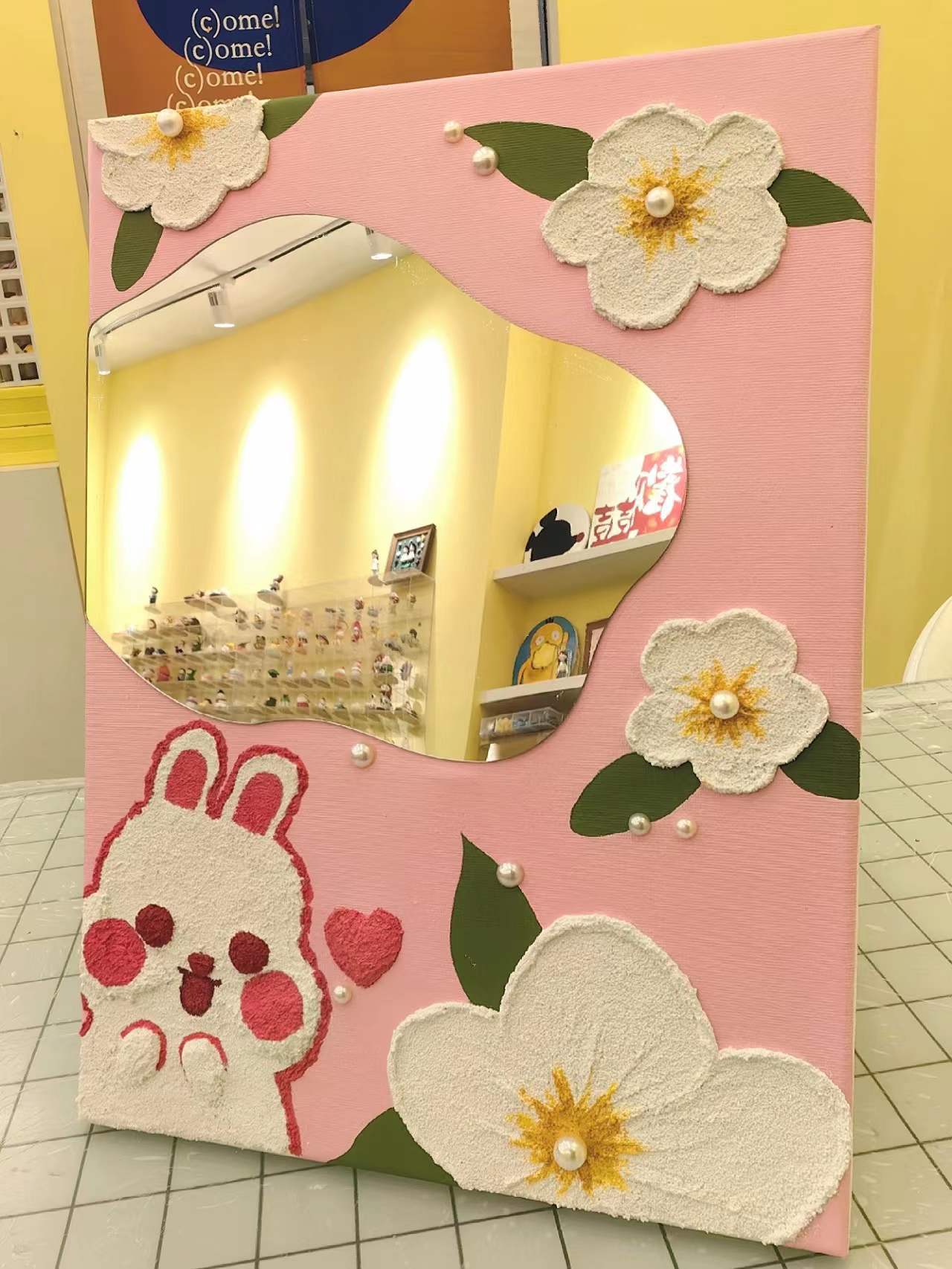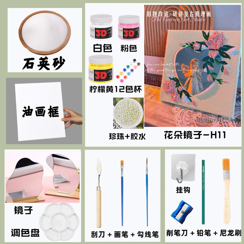 郁金香镜子DIY石英砂丙烯肌理画异形云朵化妆镜立体油彩画材料包
