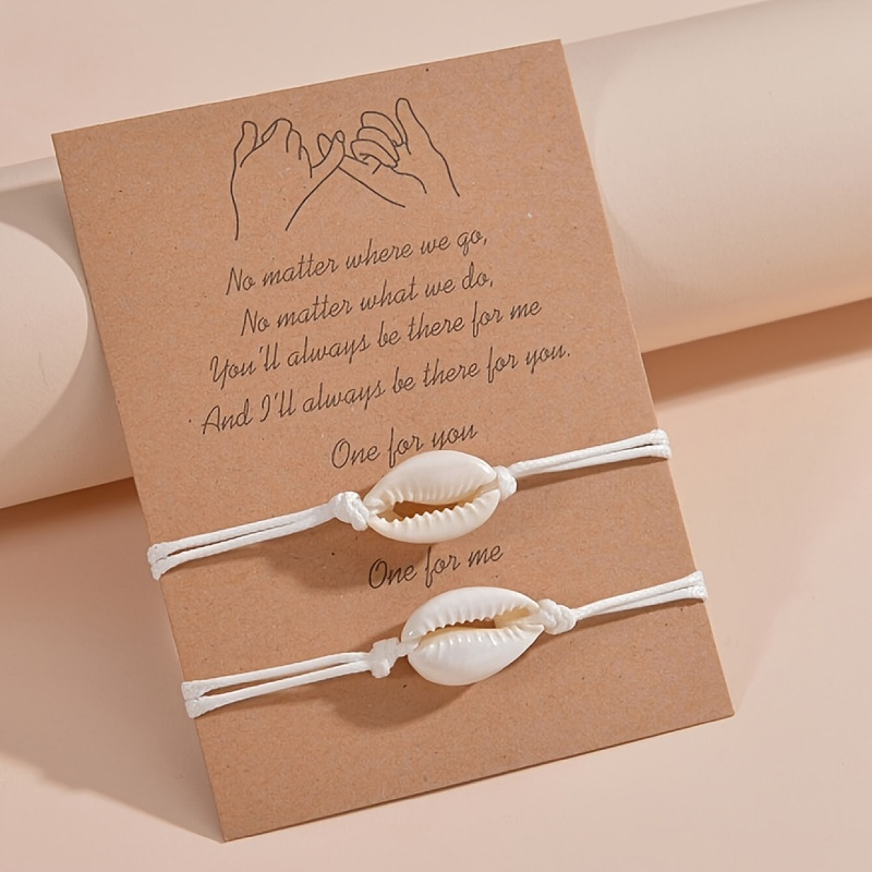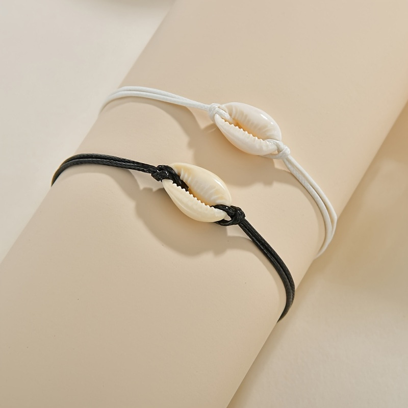 跨境时尚海洋风贝壳白黑色编织绳可调节卡片女士手链两件套
