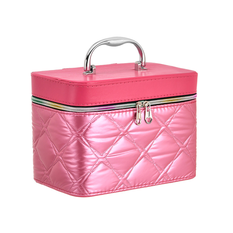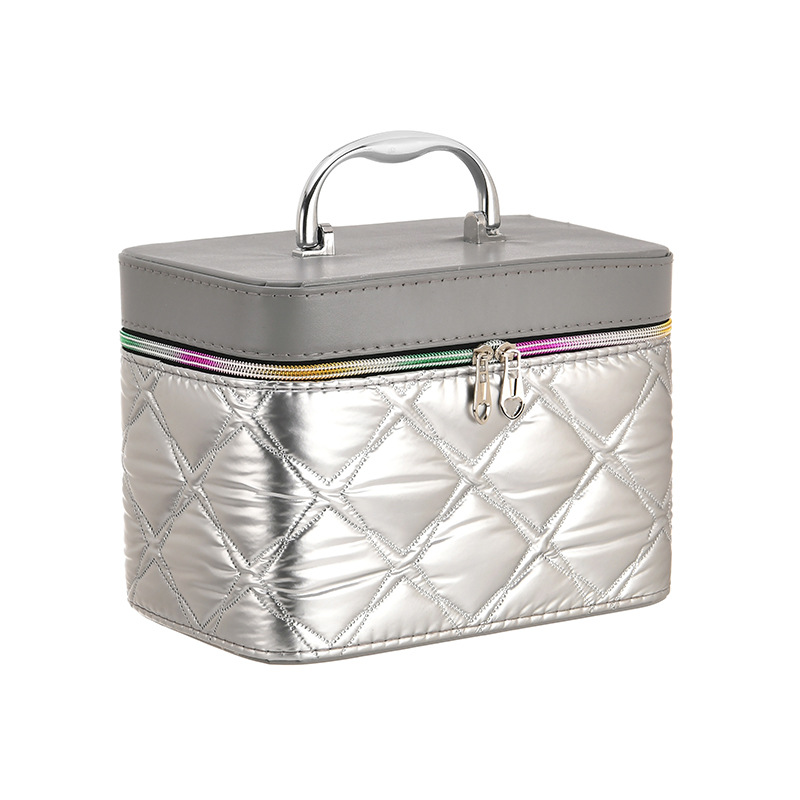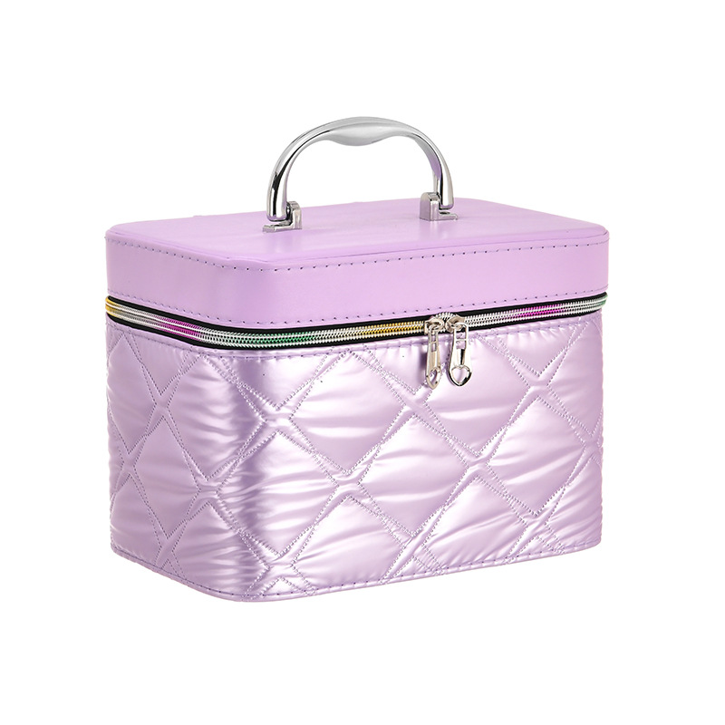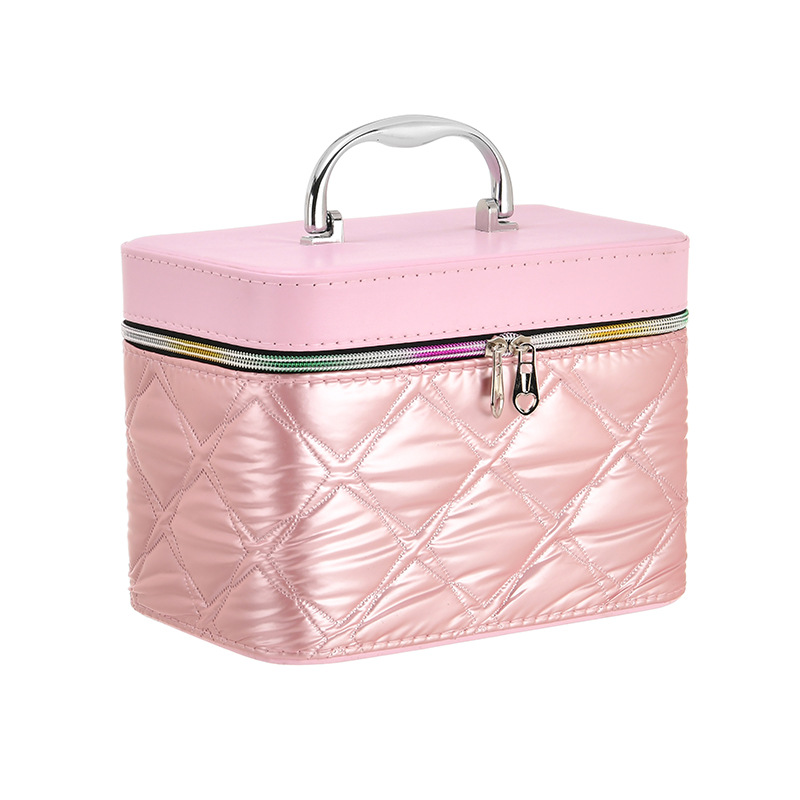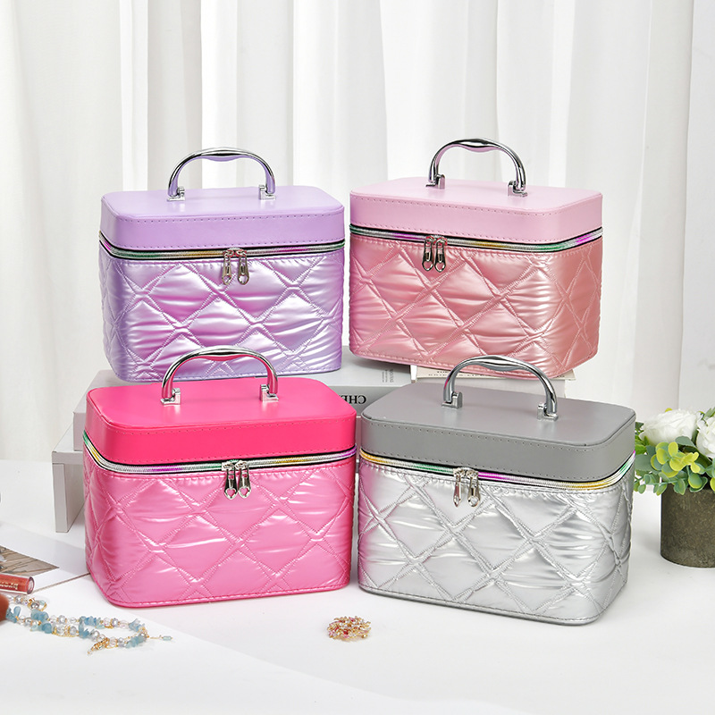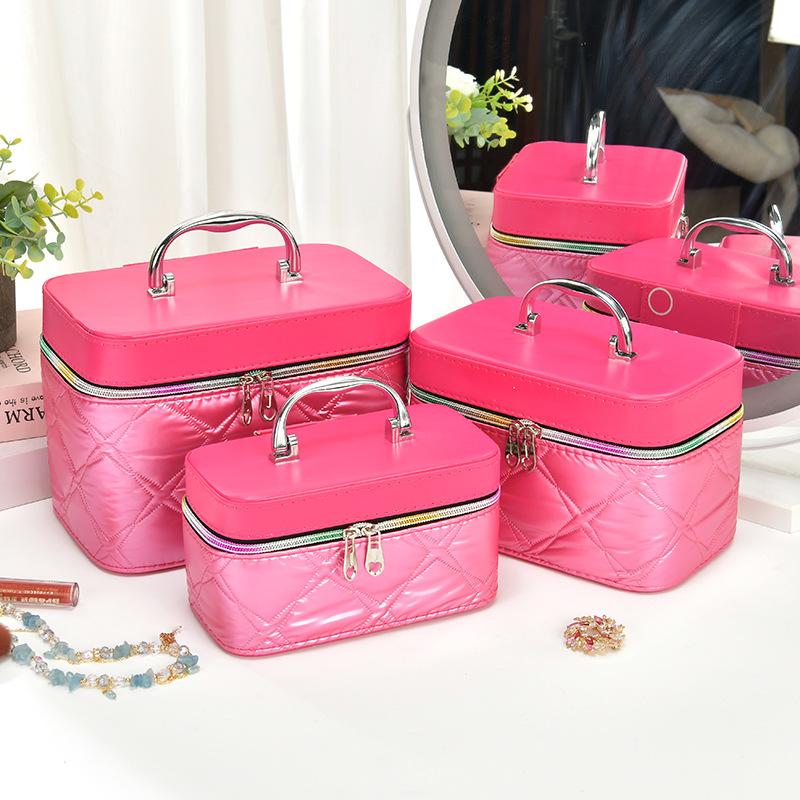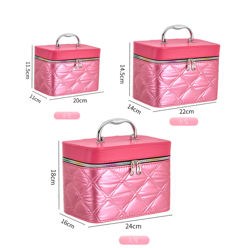 化妆包大容量高级感绣格手提带镜子is风收纳化妆箱三件套