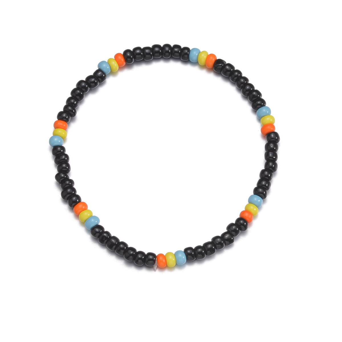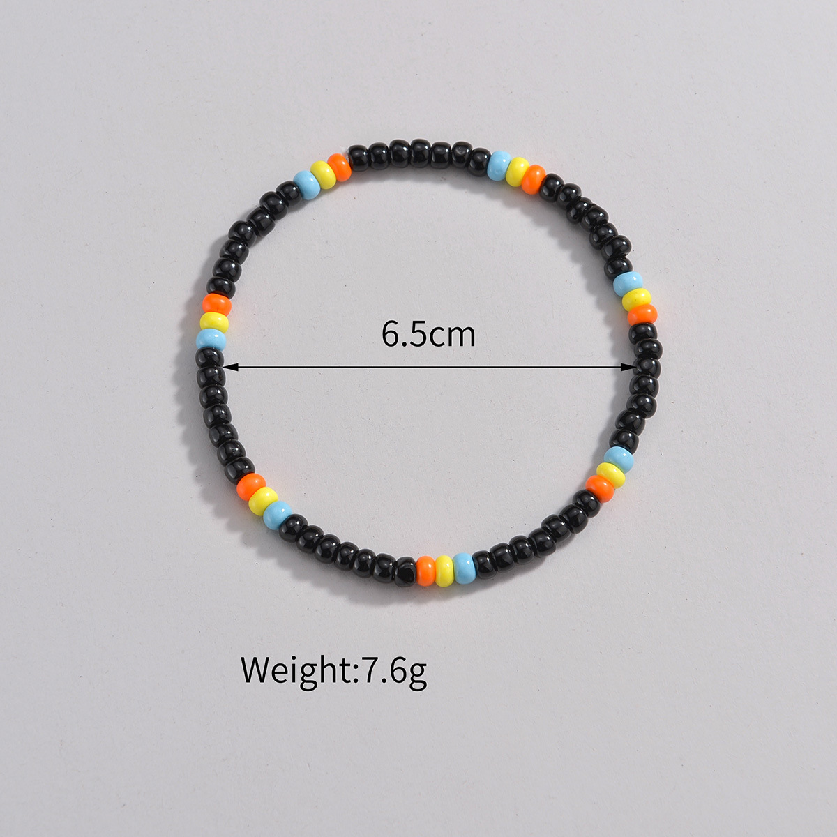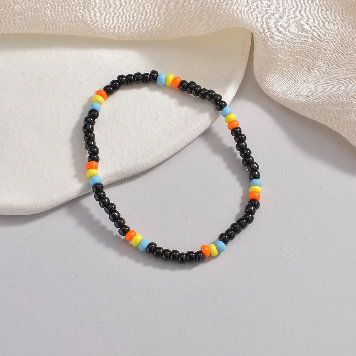 时尚个性简约风彩色米珠搭配黑色米珠单层编织脚链男女通用