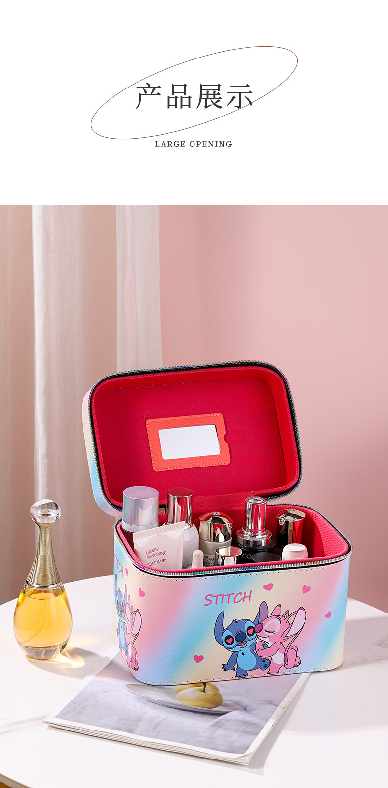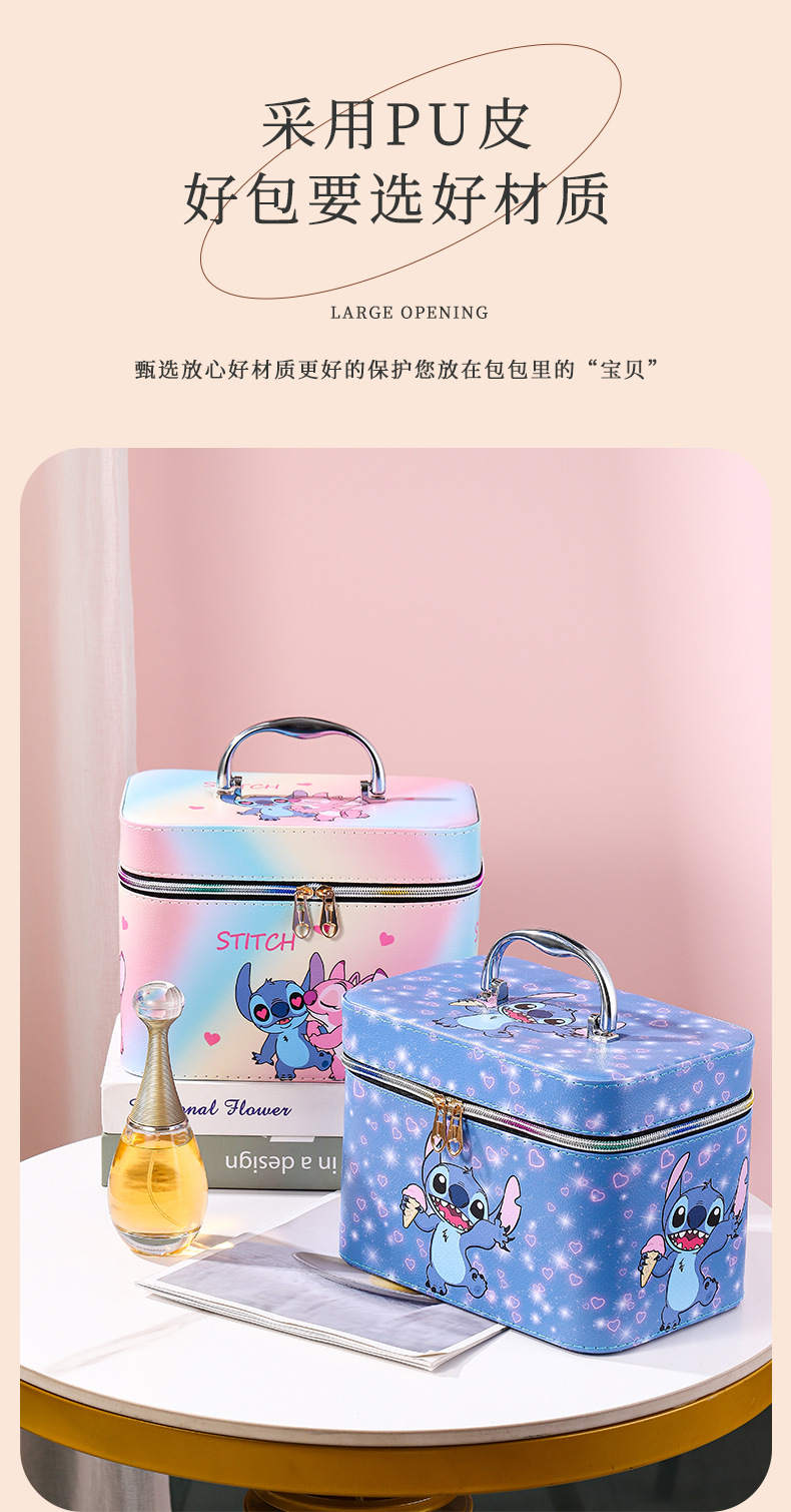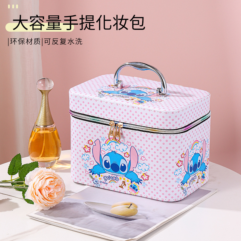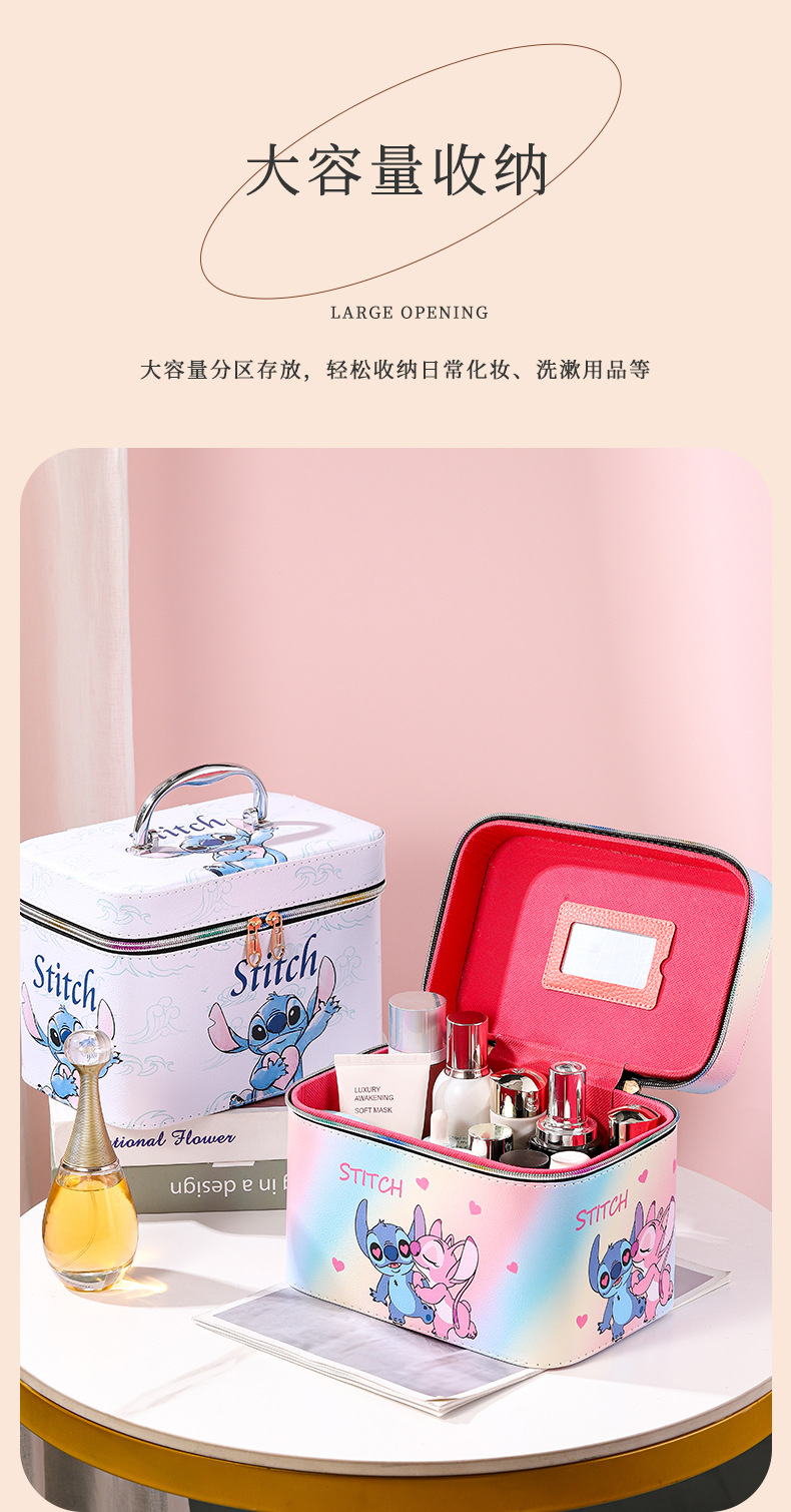 化妆包大容量史迪仔高级感手提带镜子多功能收纳方便化妆箱三件套