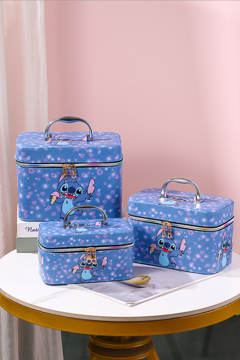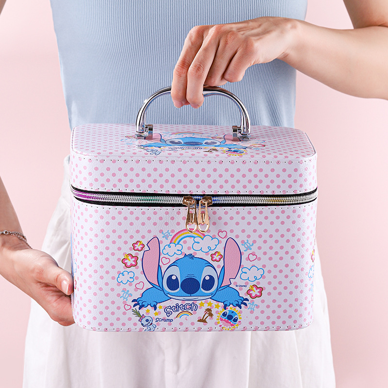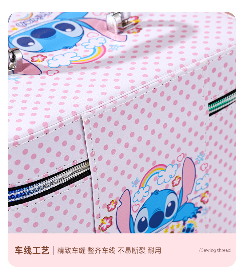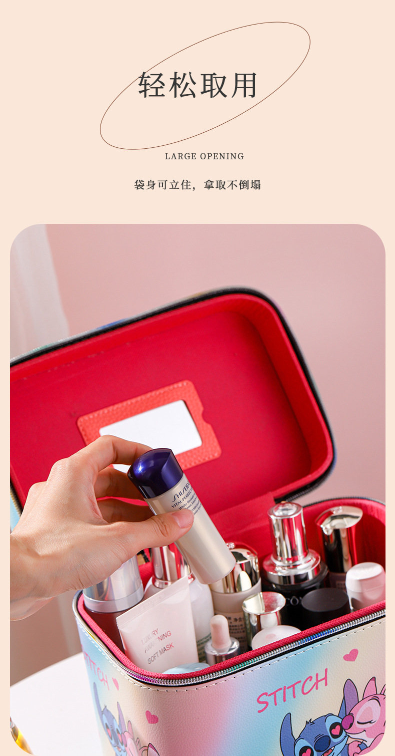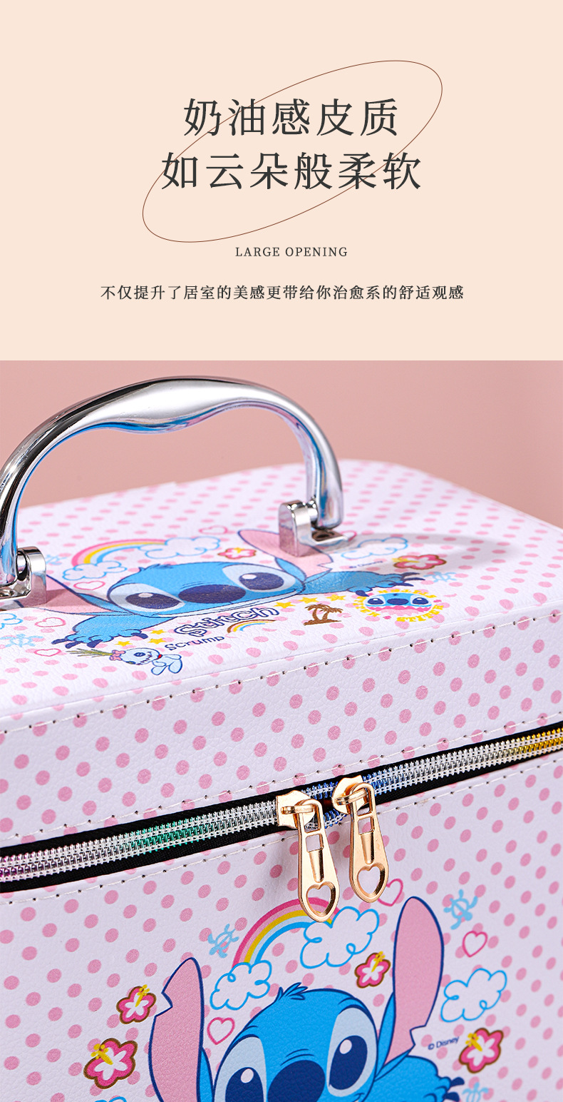化妆包大容量史迪仔高级感手提带镜子多功能收纳方便化妆箱三件套