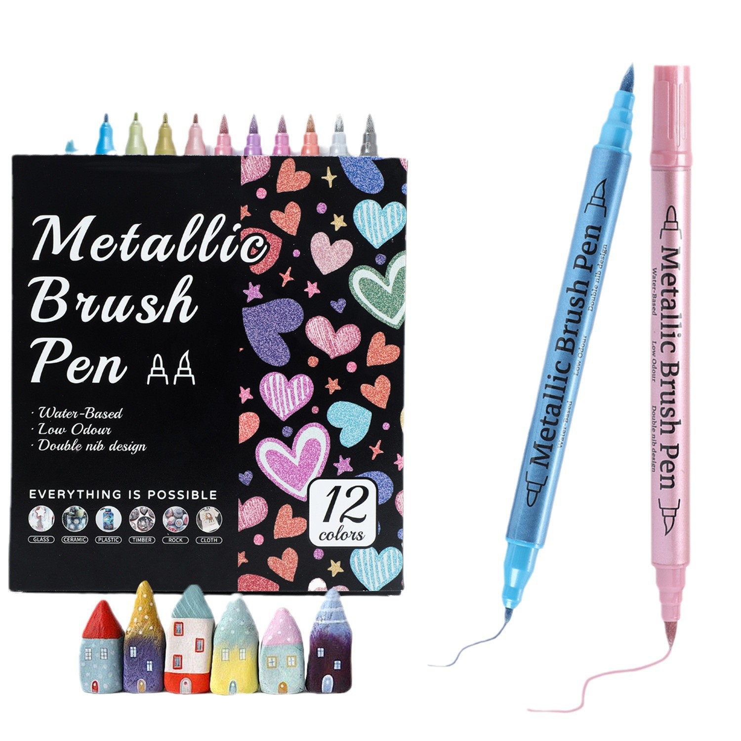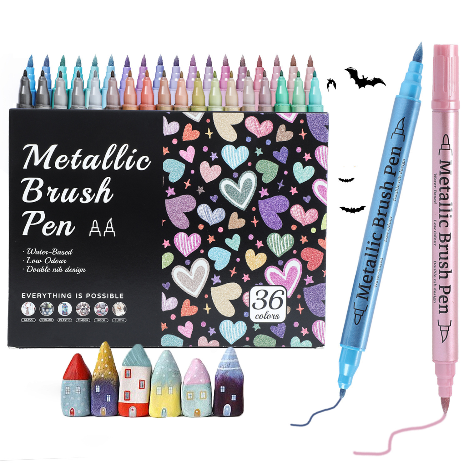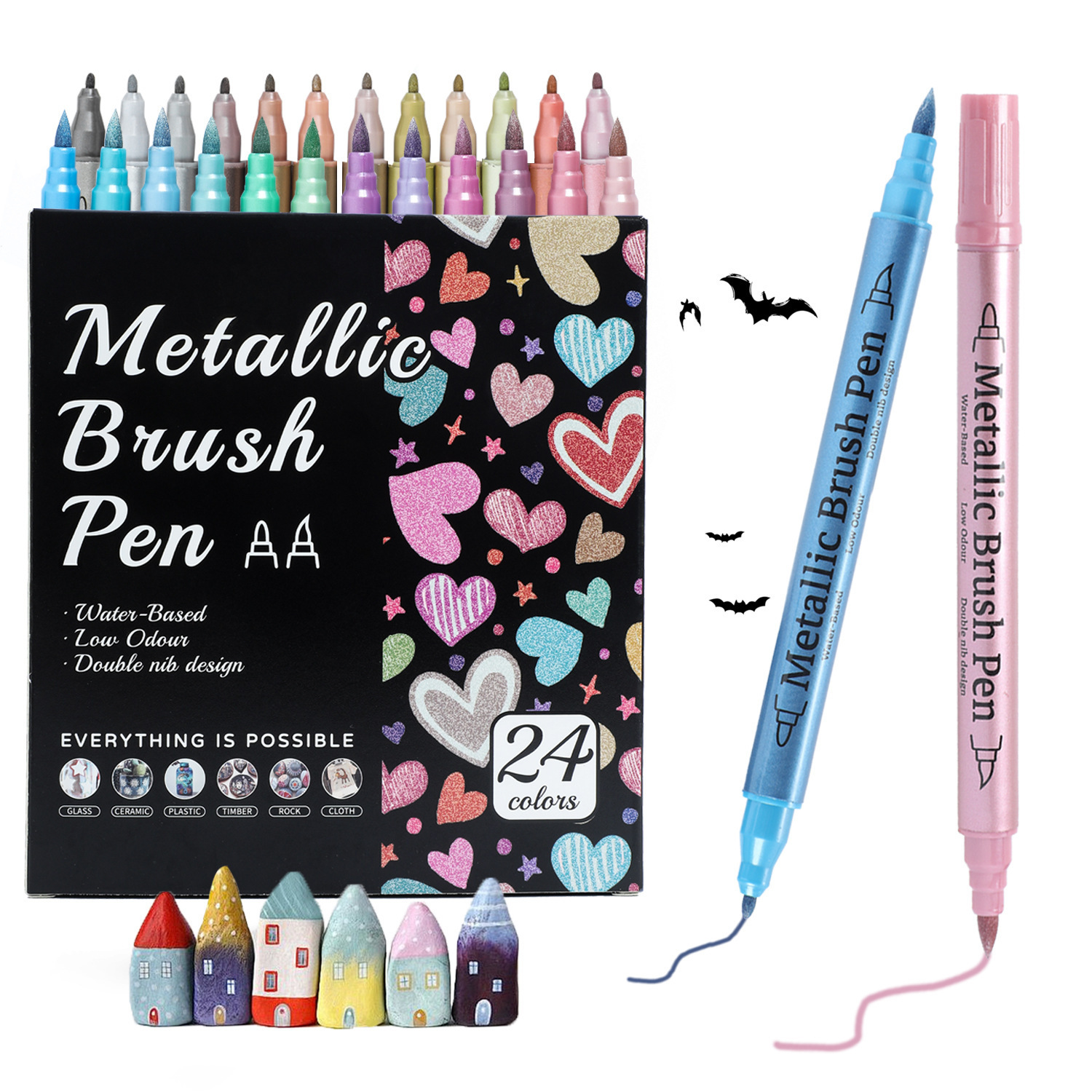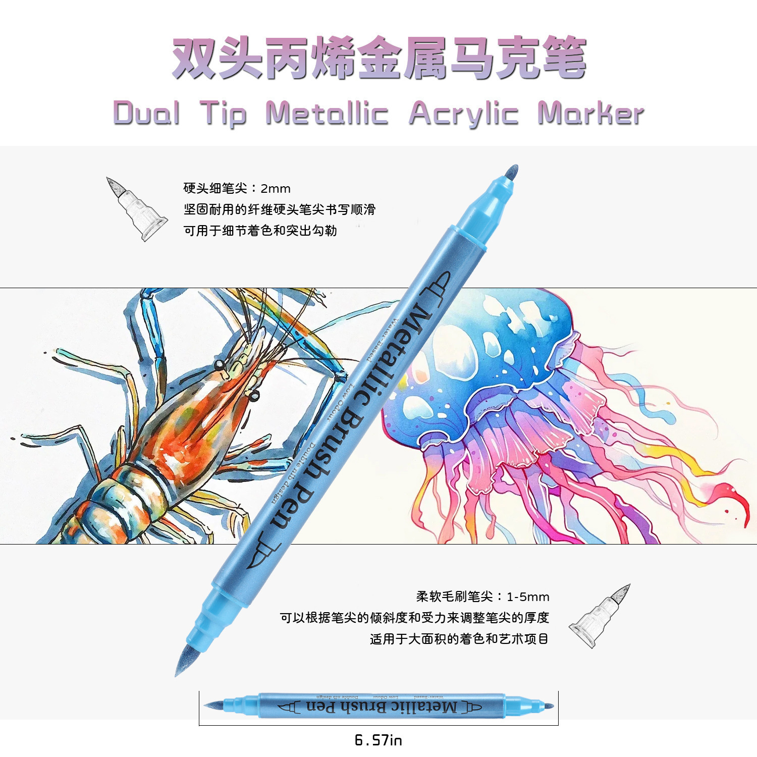 跨境双头金属色丙烯马克笔涂鸦防水不掉色闪光油漆软硬头记号笔