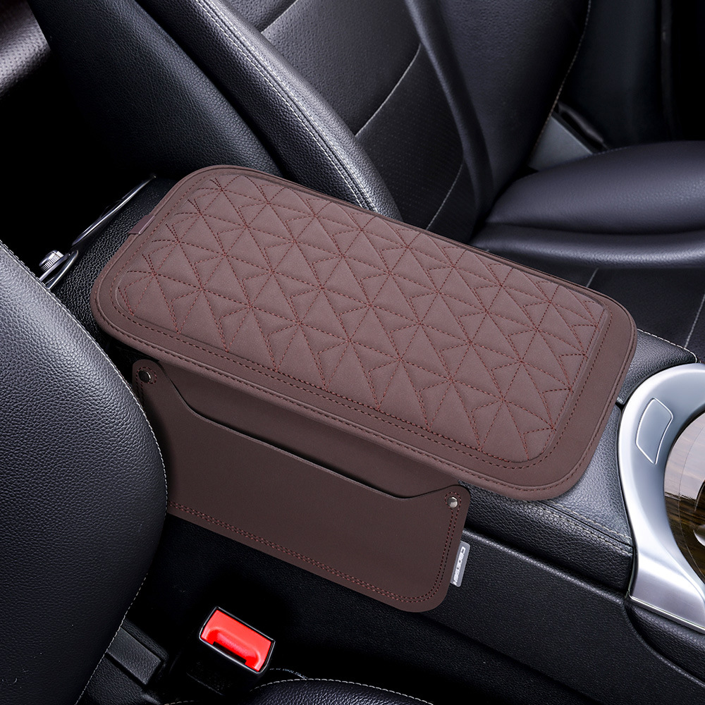 新款跨境汽车扶手箱垫舒适肘托枕皮革绣花四季通用收纳口袋升级款
