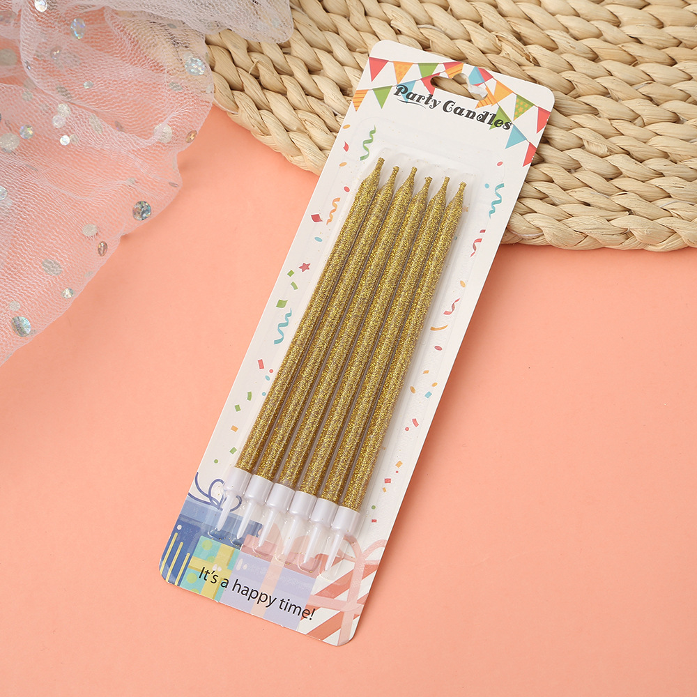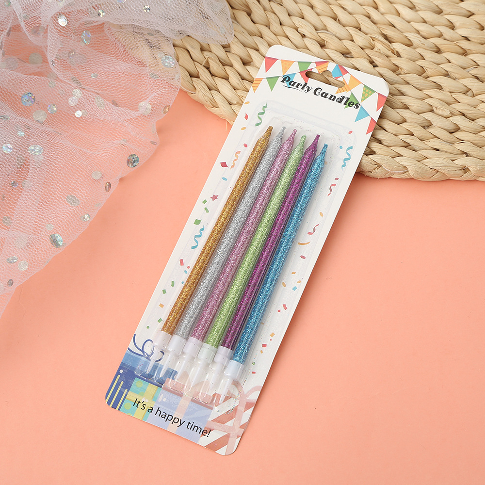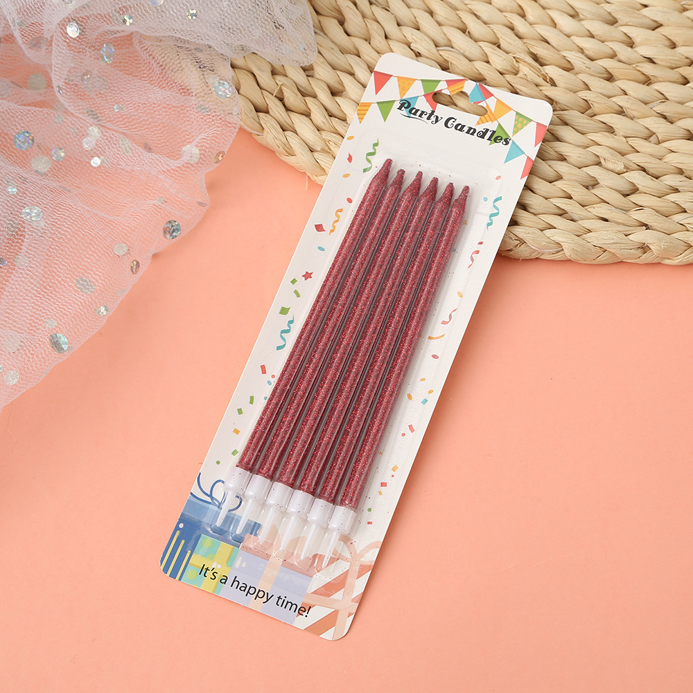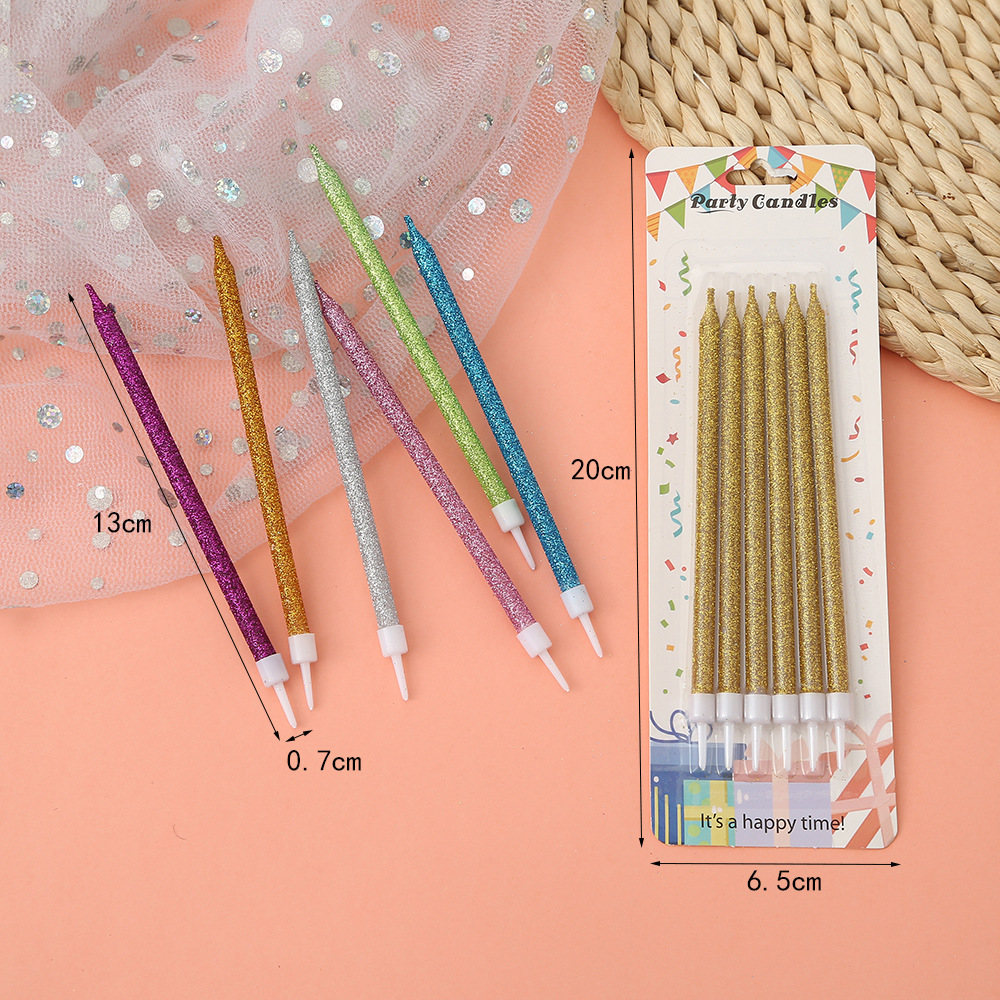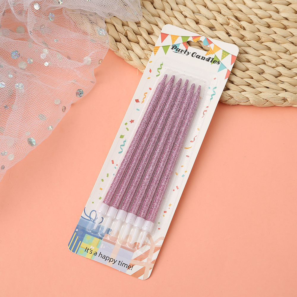 创意浪漫6支装沾粉直杆生日蜡烛派对烘焙蛋糕装饰铅笔蜡烛批发