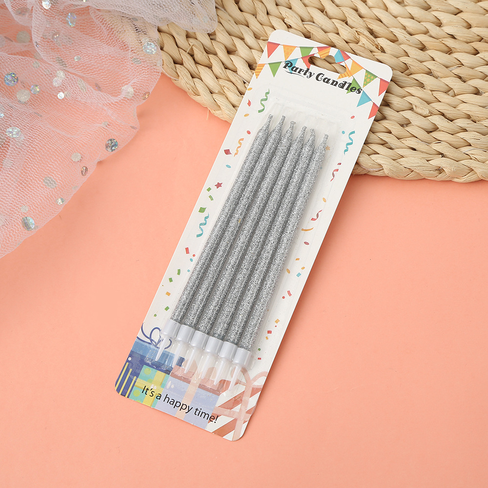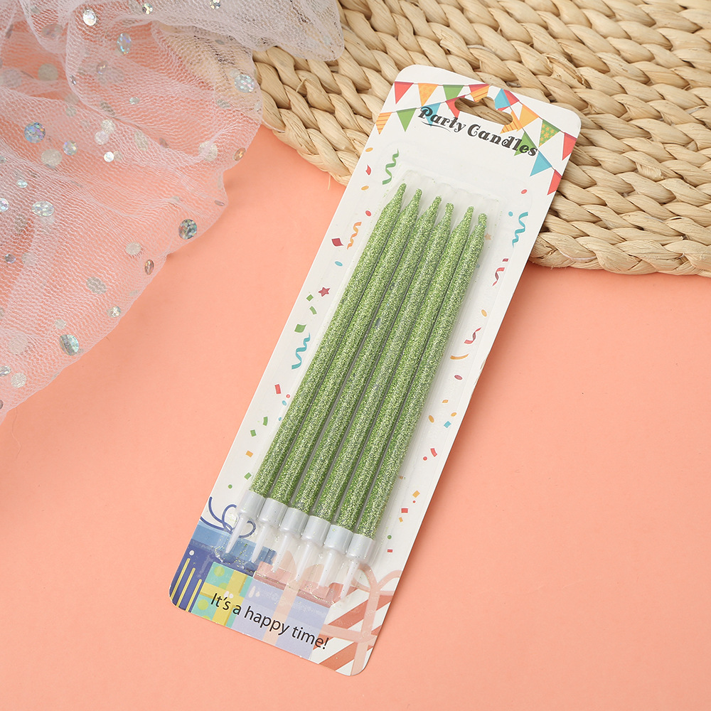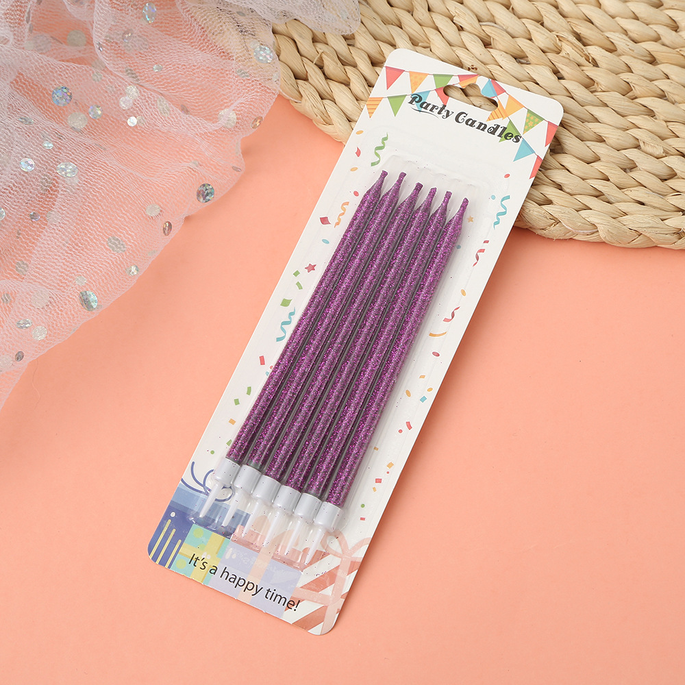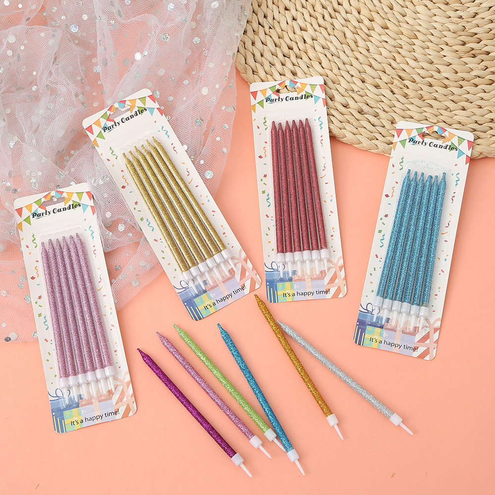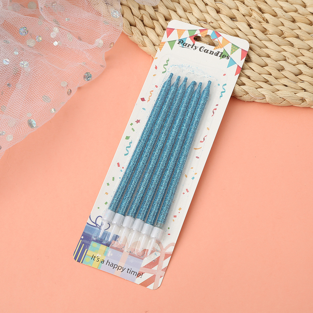 创意浪漫6支装沾粉直杆生日蜡烛派对烘焙蛋糕装饰铅笔蜡烛批发