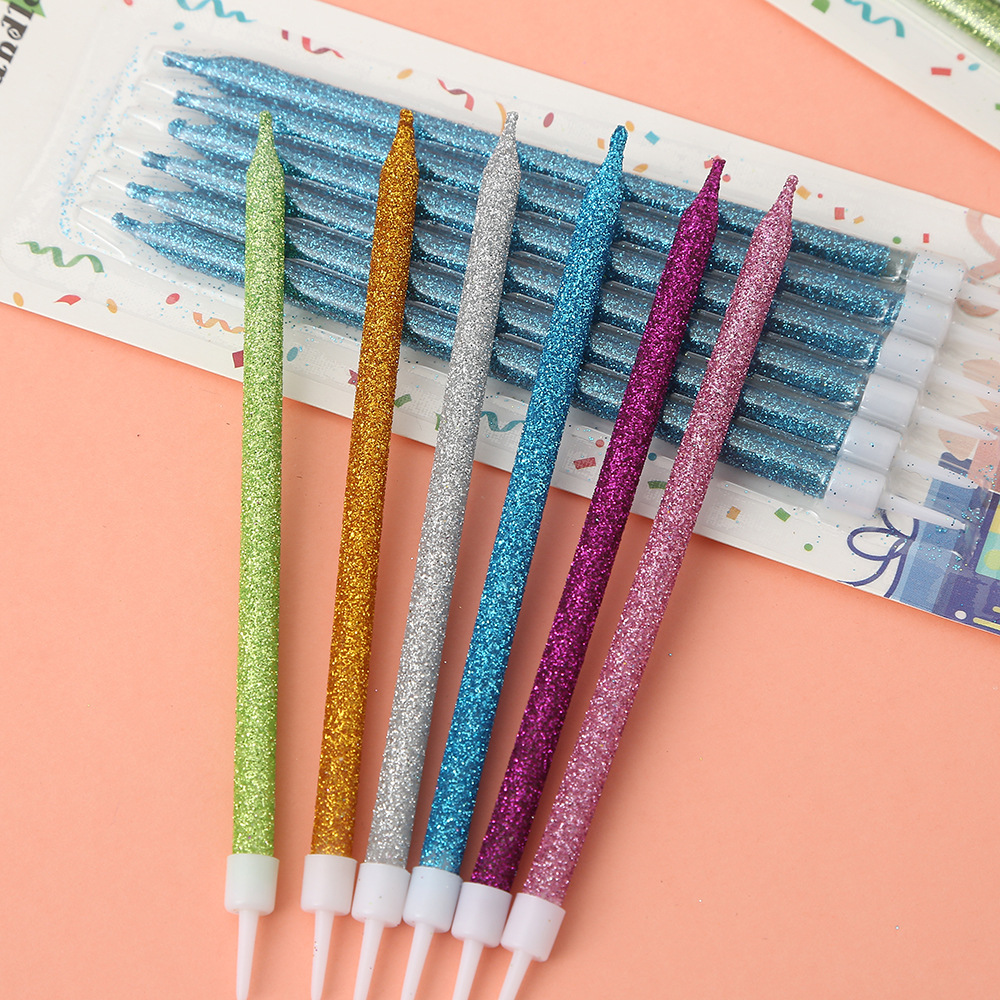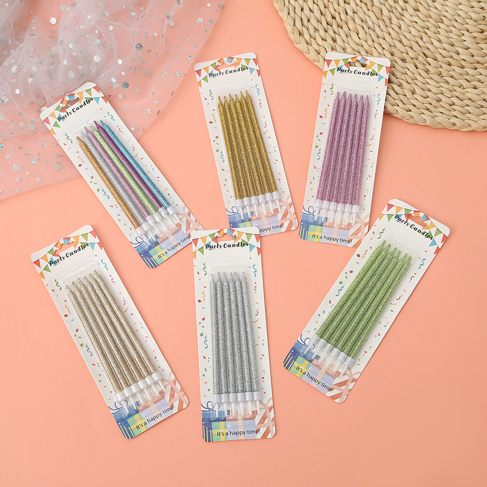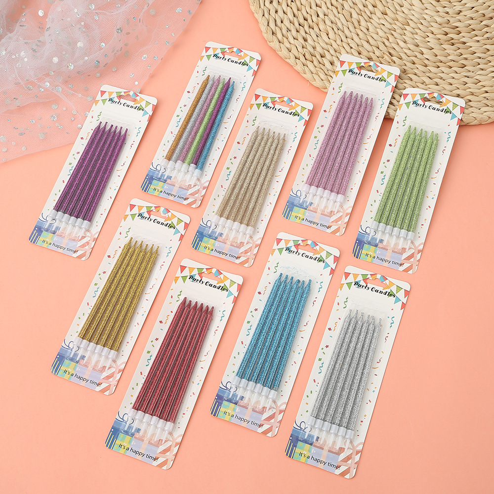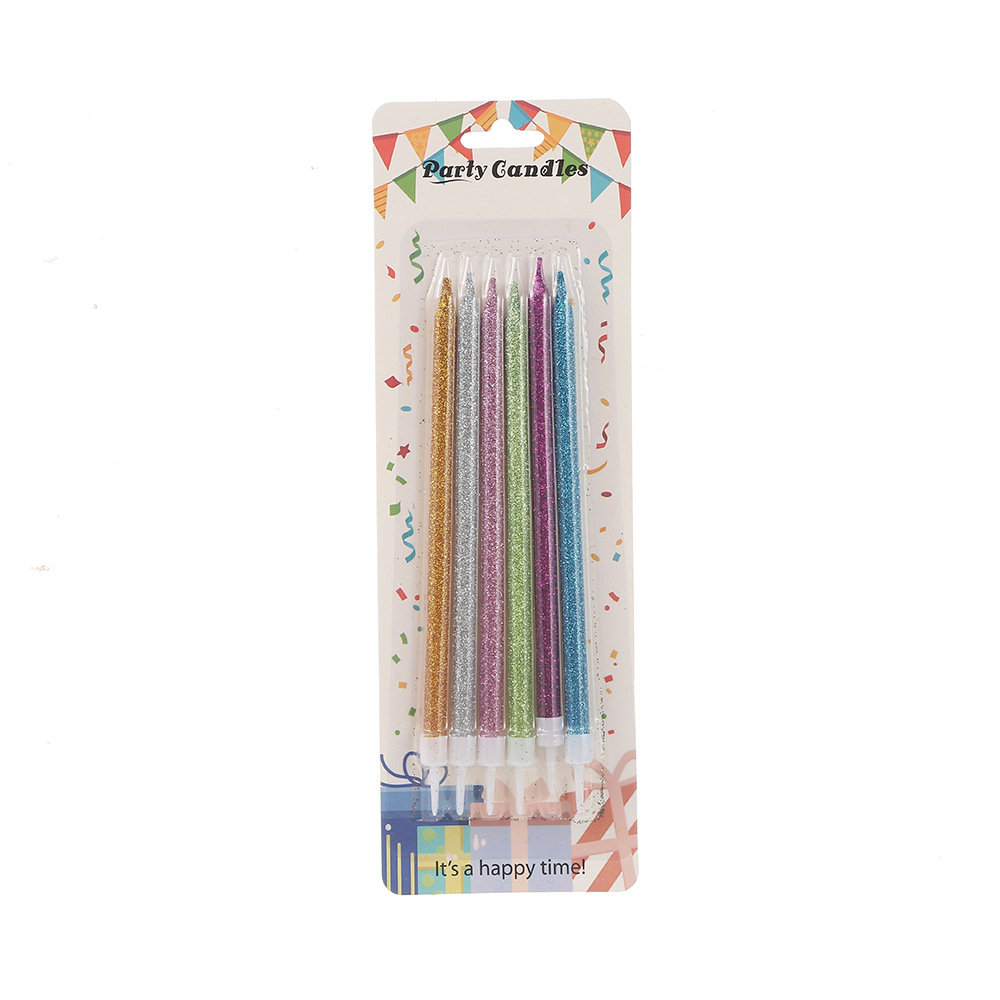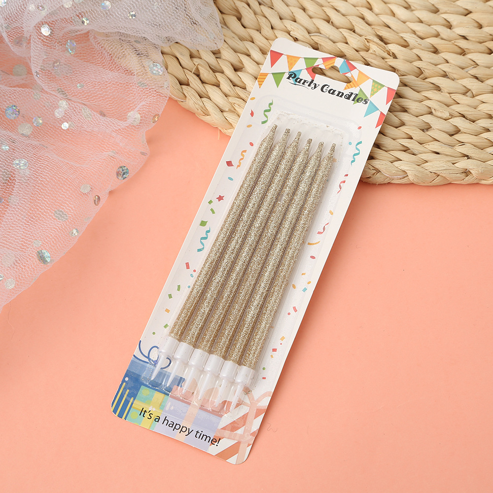 创意浪漫6支装沾粉直杆生日蜡烛派对烘焙蛋糕装饰铅笔蜡烛批发