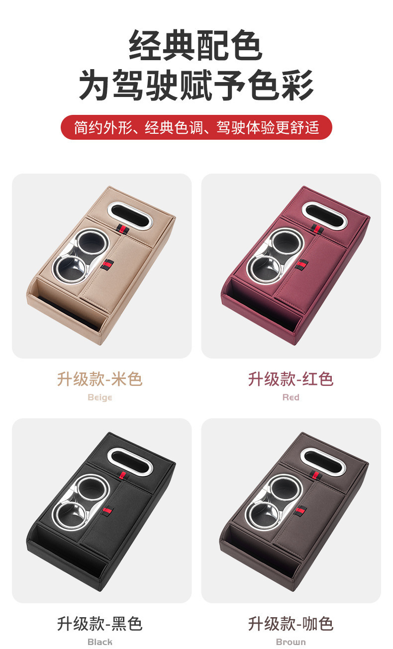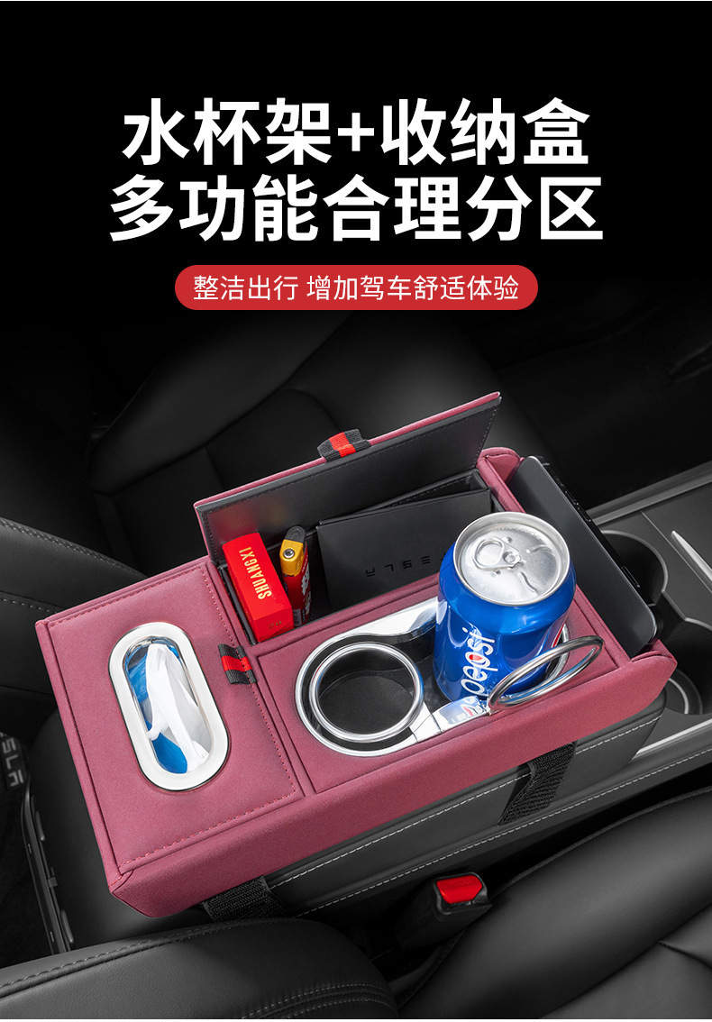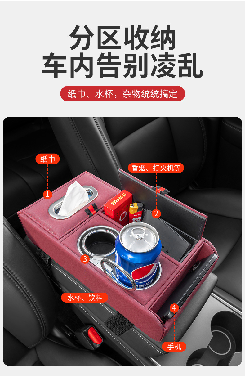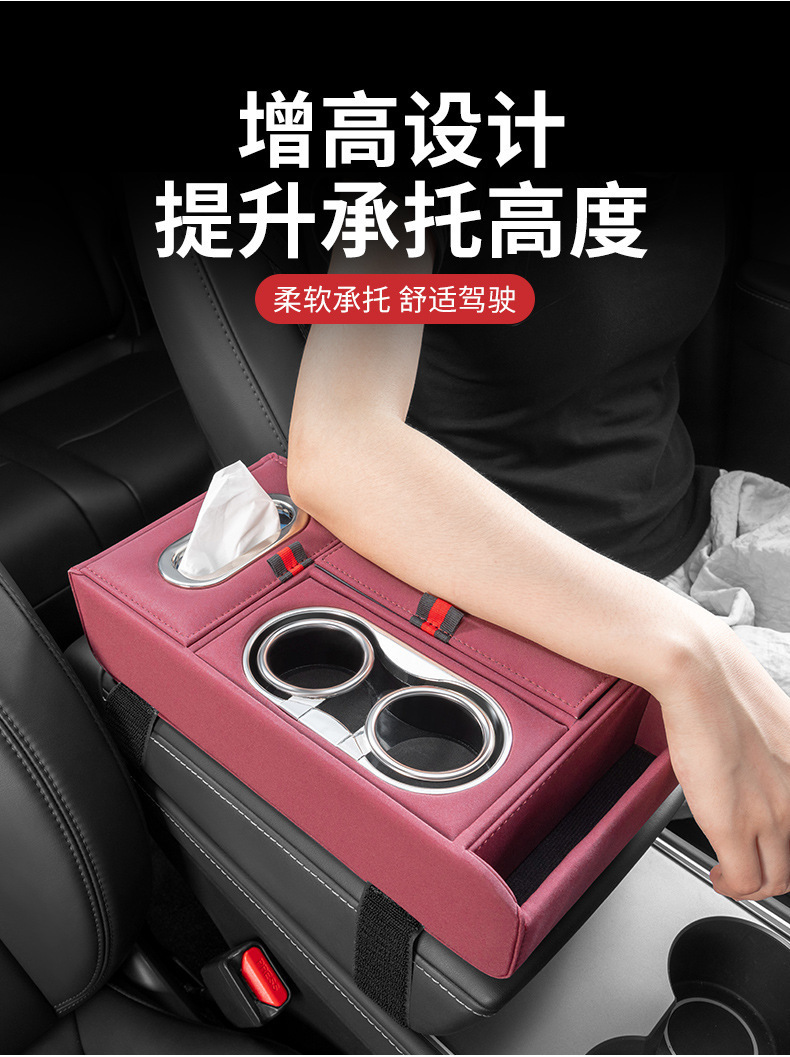 跨境车载扶手箱收纳盒储物箱高级感带纸巾盒水杯架手机中央增高垫