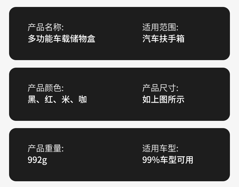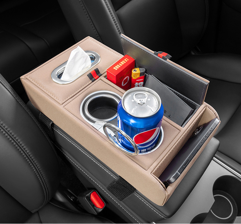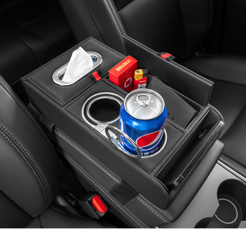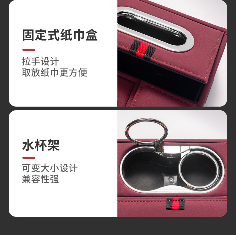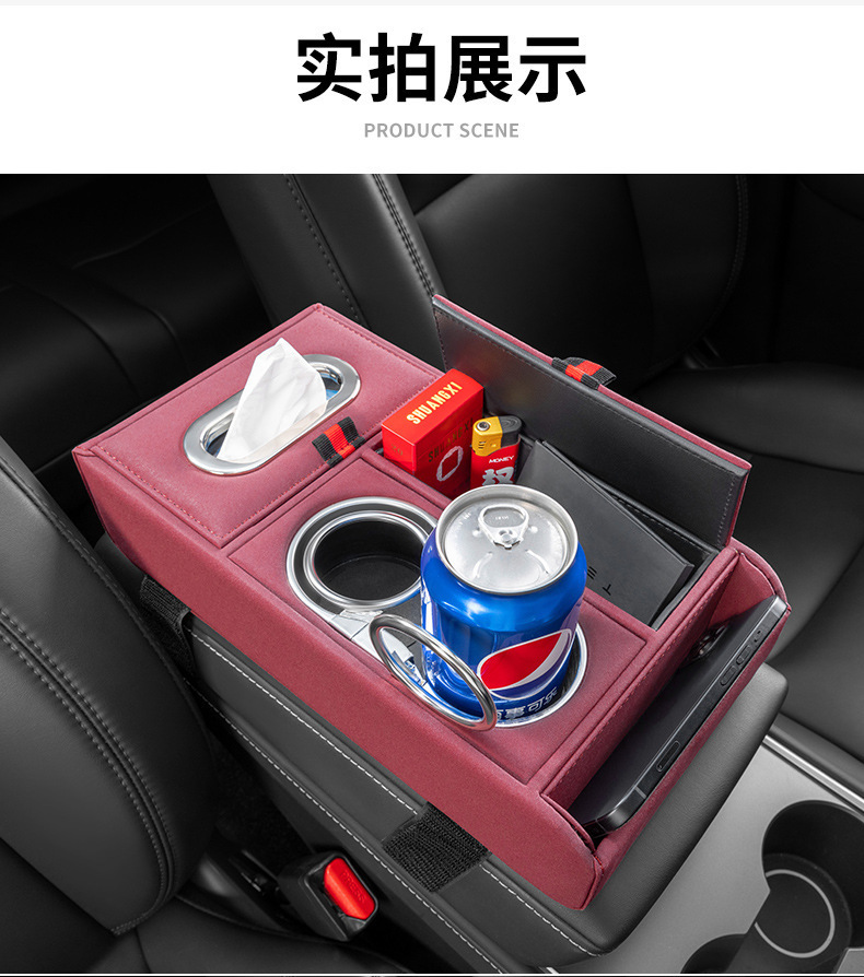 跨境车载扶手箱收纳盒储物箱高级感带纸巾盒水杯架手机中央增高垫