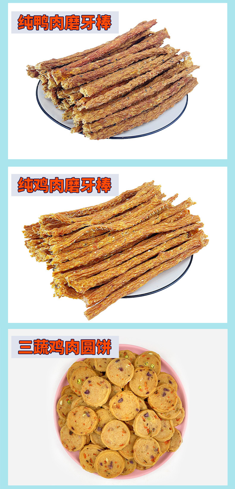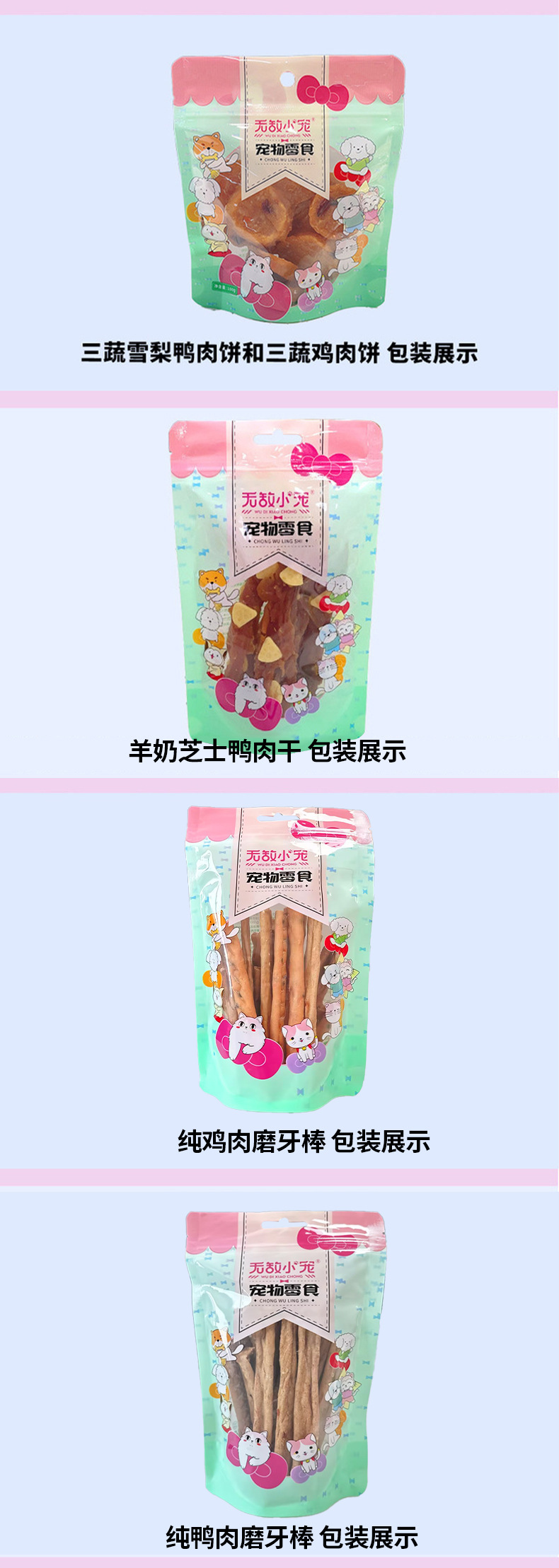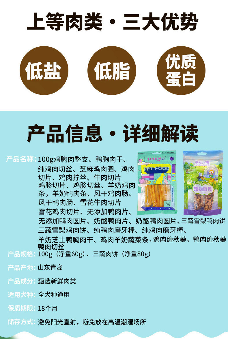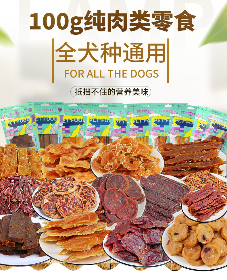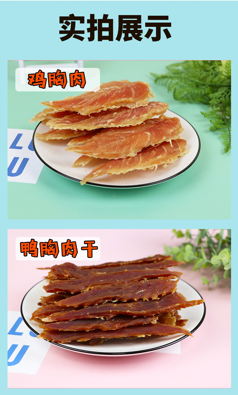 原厂货源批发狗零食纯肉类金毛100g彩袋装鸡肉鸭肉条肉干训犬奖励