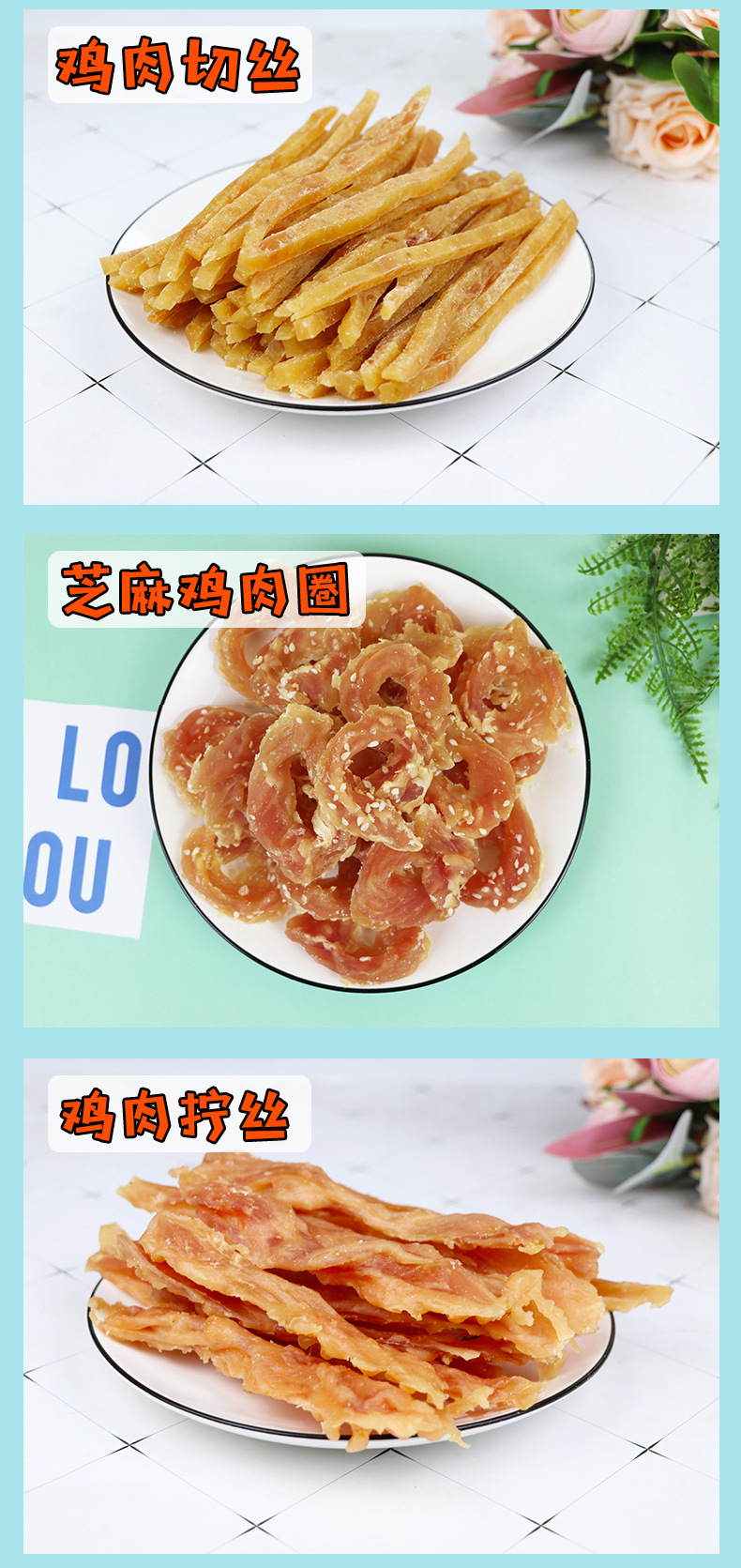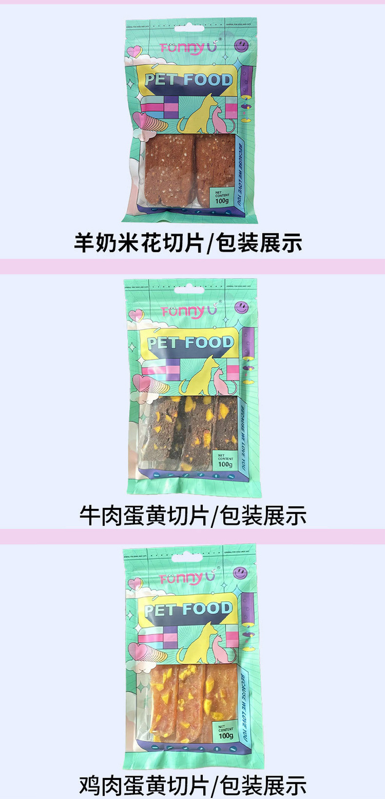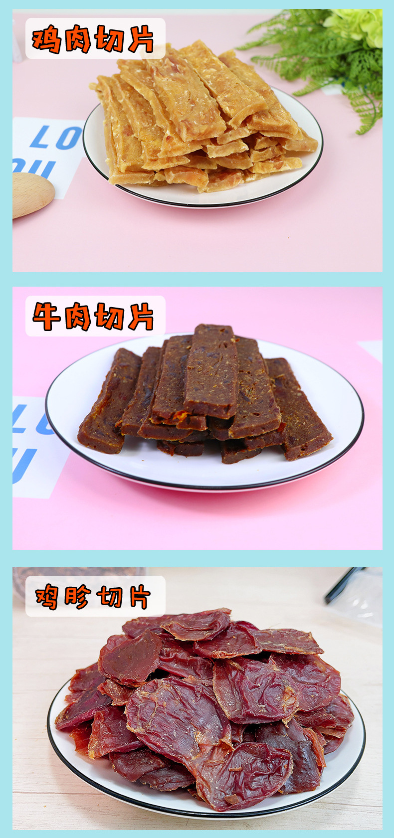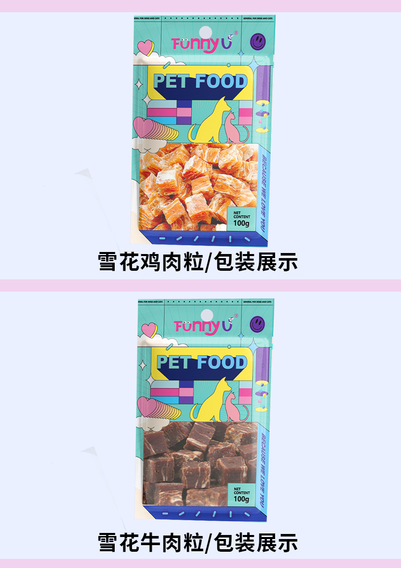 原厂货源批发狗零食纯肉类金毛100g彩袋装鸡肉鸭肉条肉干训犬奖励