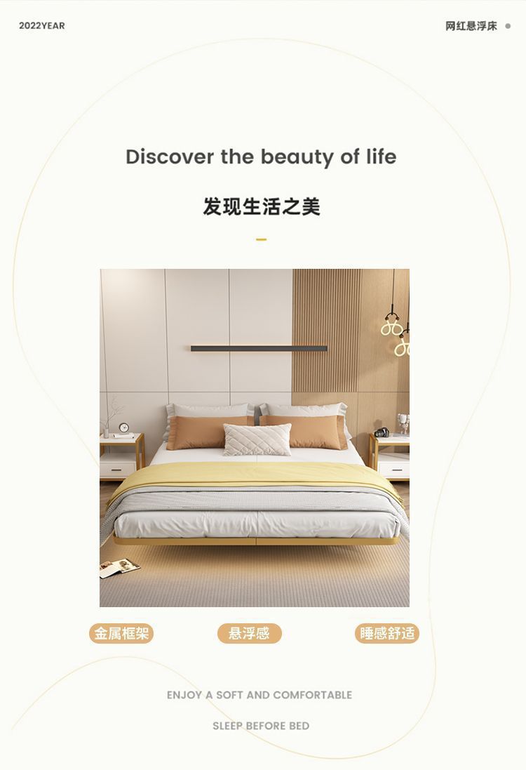 简约悬浮床1.5米1.8米静音钢架床无床头床架双人铁床单人铁床架