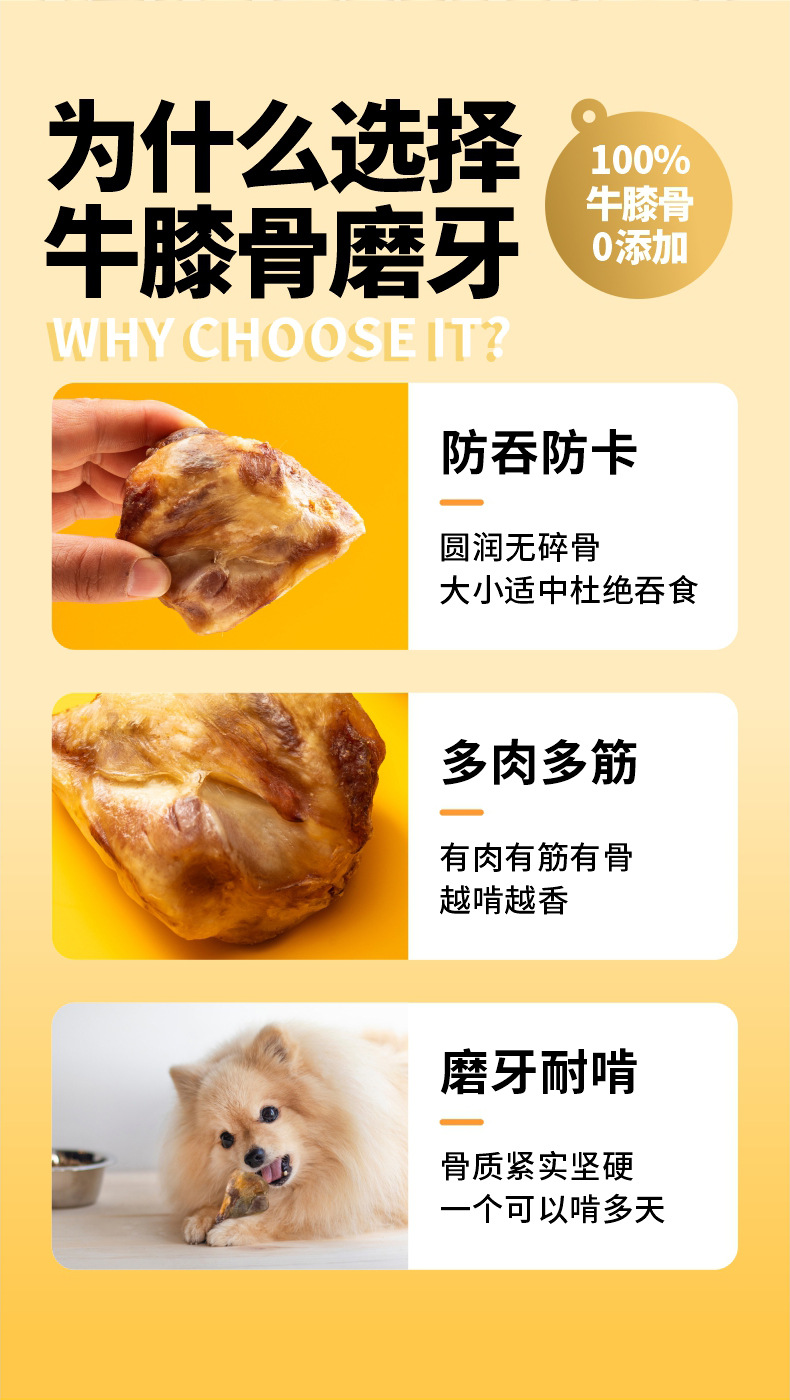 宠物零食牛膝盖骨洁齿骨狗狗零食大中小型犬烘干牛盖骨狗狗磨牙棒
