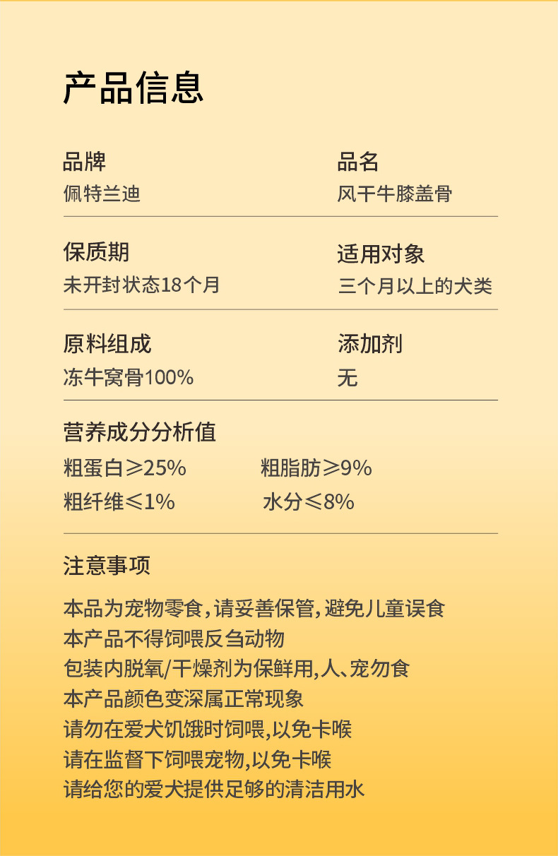 | 80-100g cow cover bone (medium)(牛盖骨80-100克(中)) | USD $0.63 | 500 bag available |