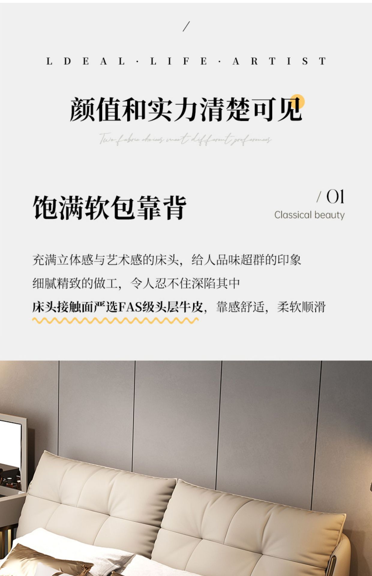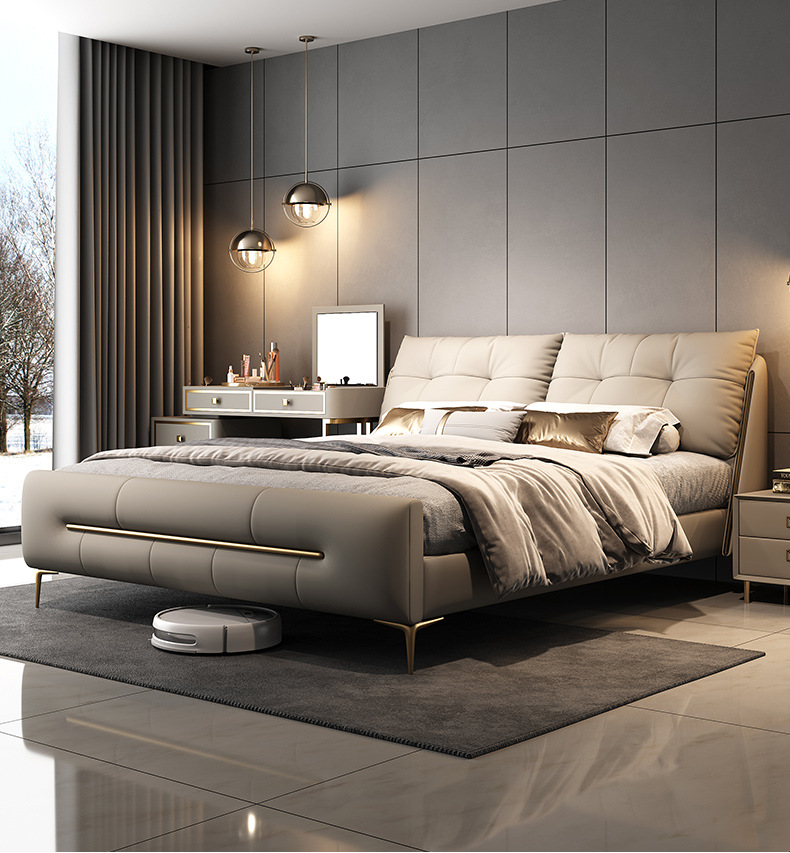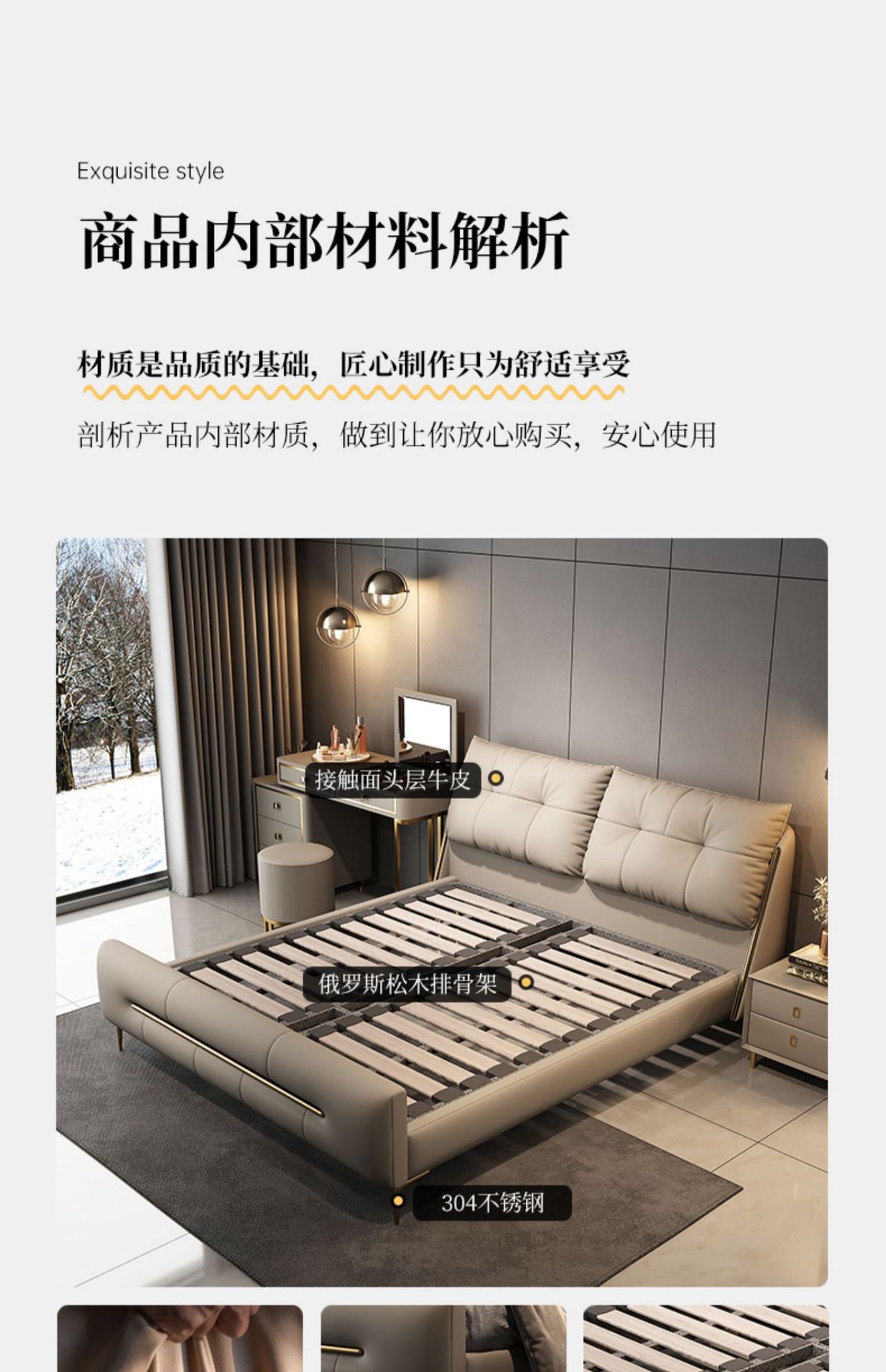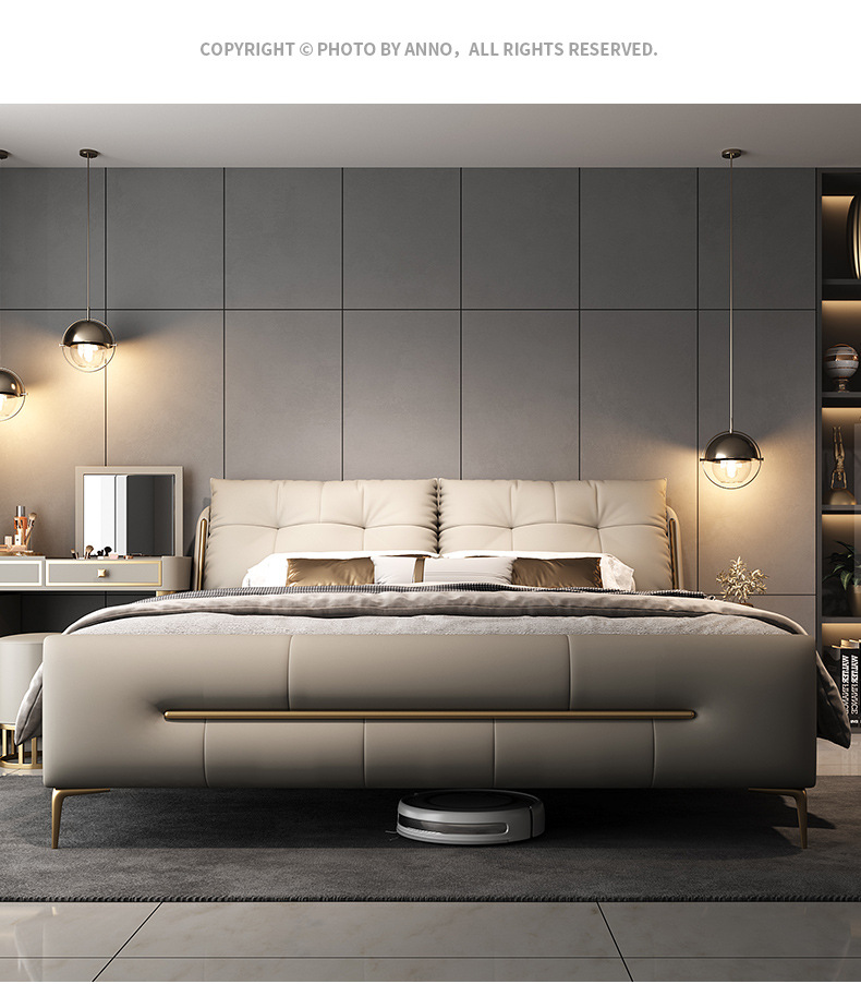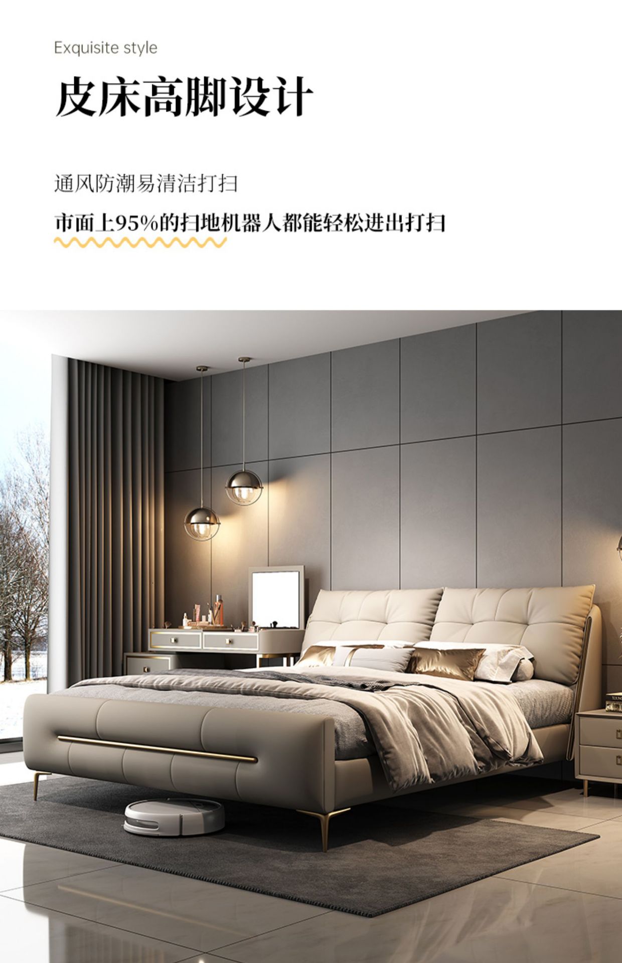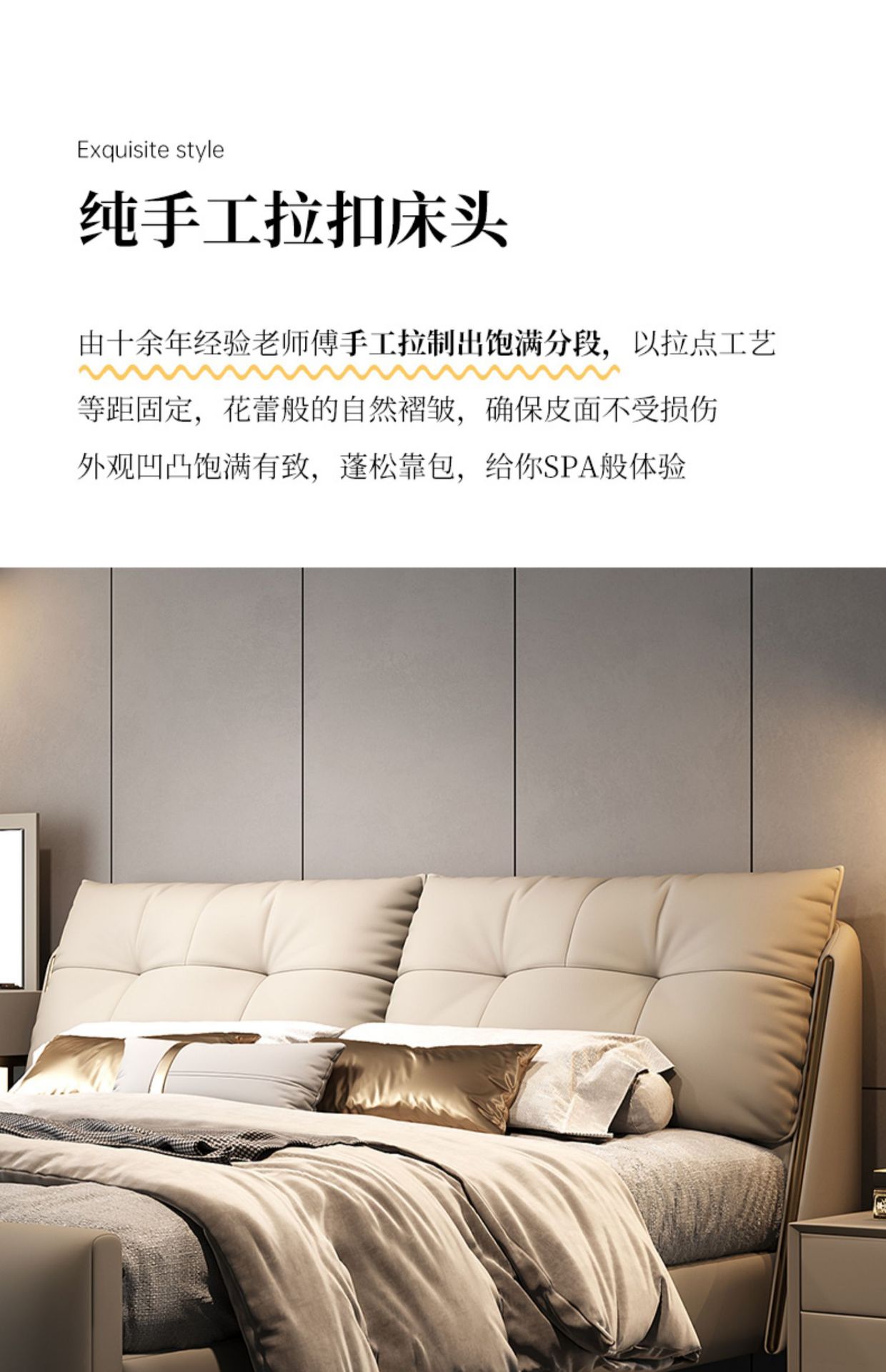 床意式主卧床1.8米皮艺床轻奢双人床简约现代家用储物真皮床婚床