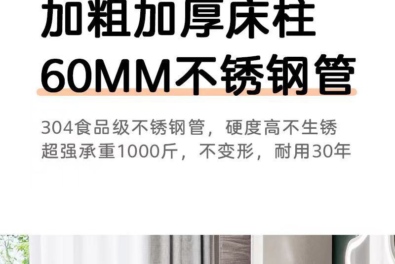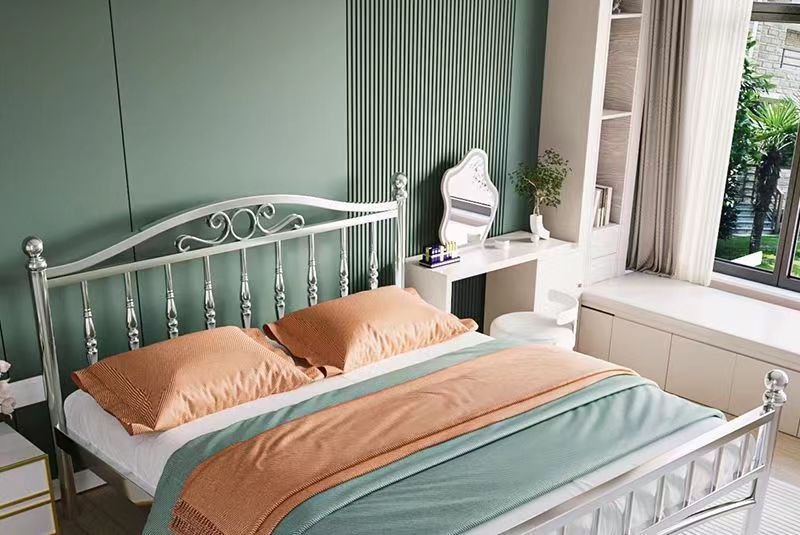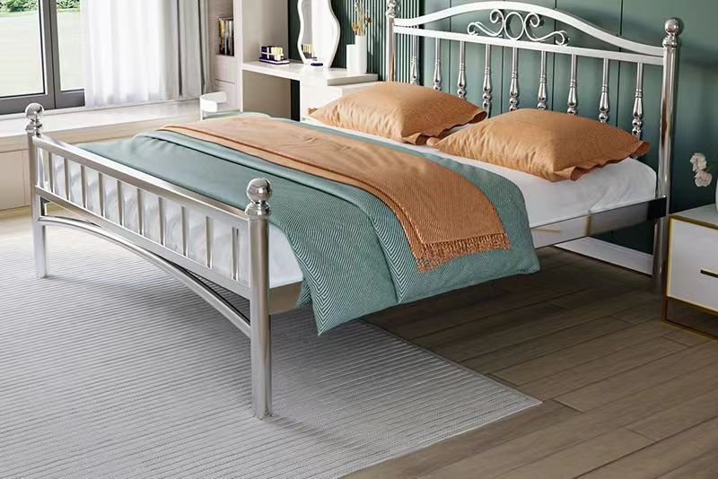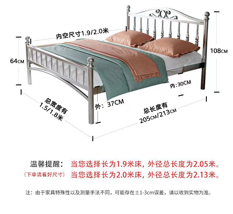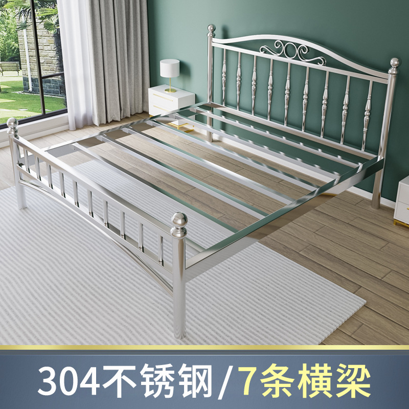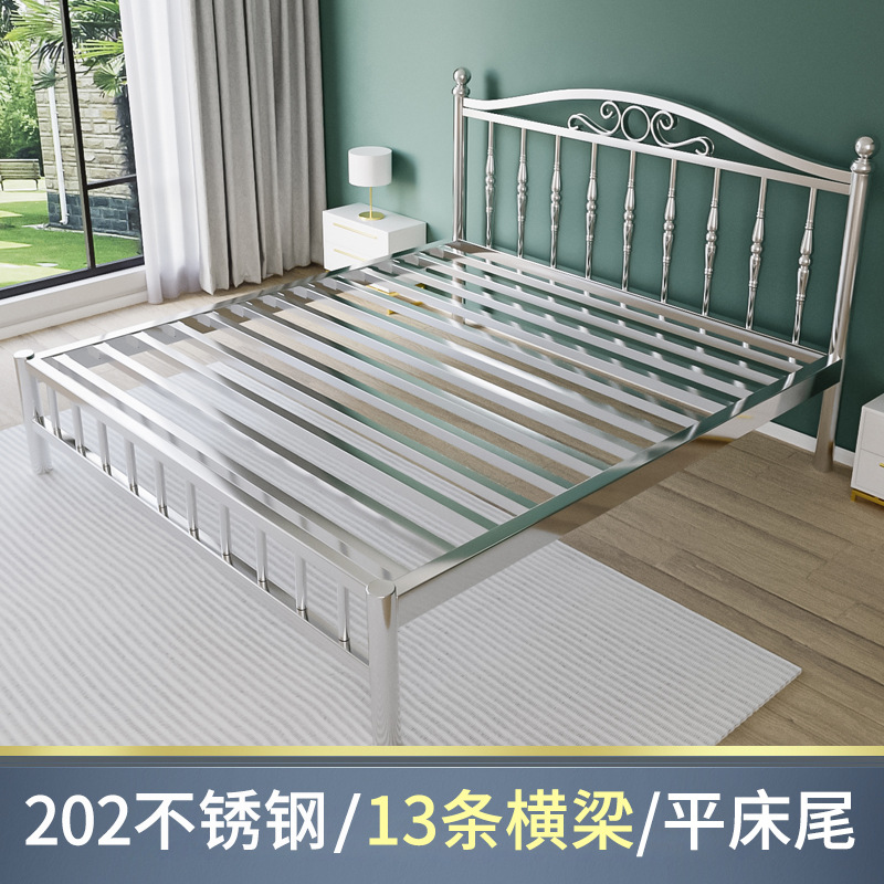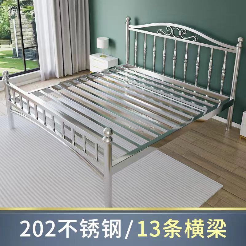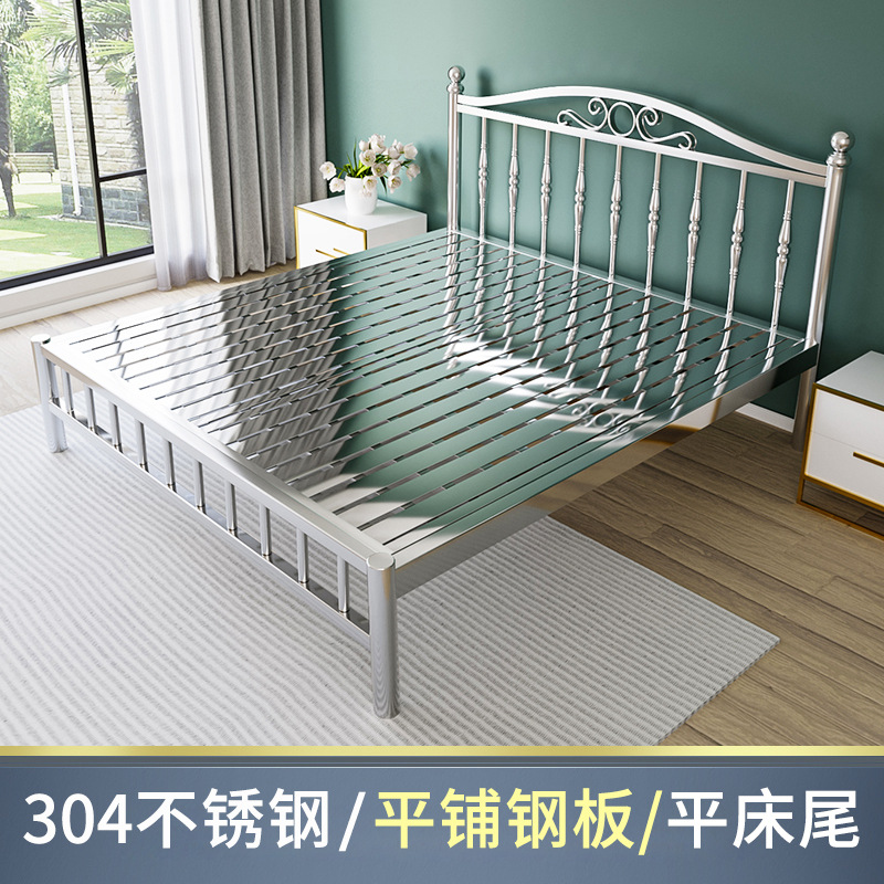 不锈钢床1.8米现代简约铁床双人床304不锈钢出租屋公寓加厚铁艺床