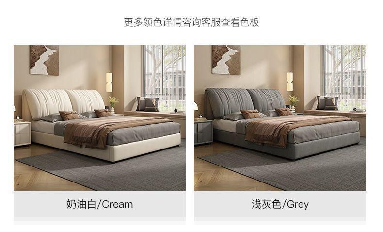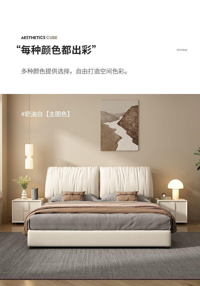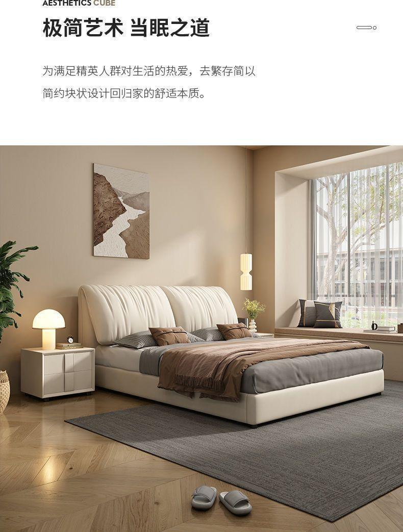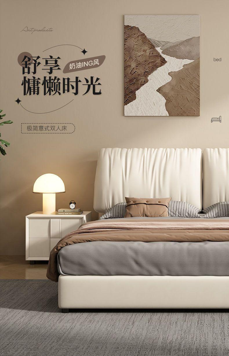 大象耳朵真皮床现代简约轻奢主卧大床双人大气意式极简婚床皮艺床