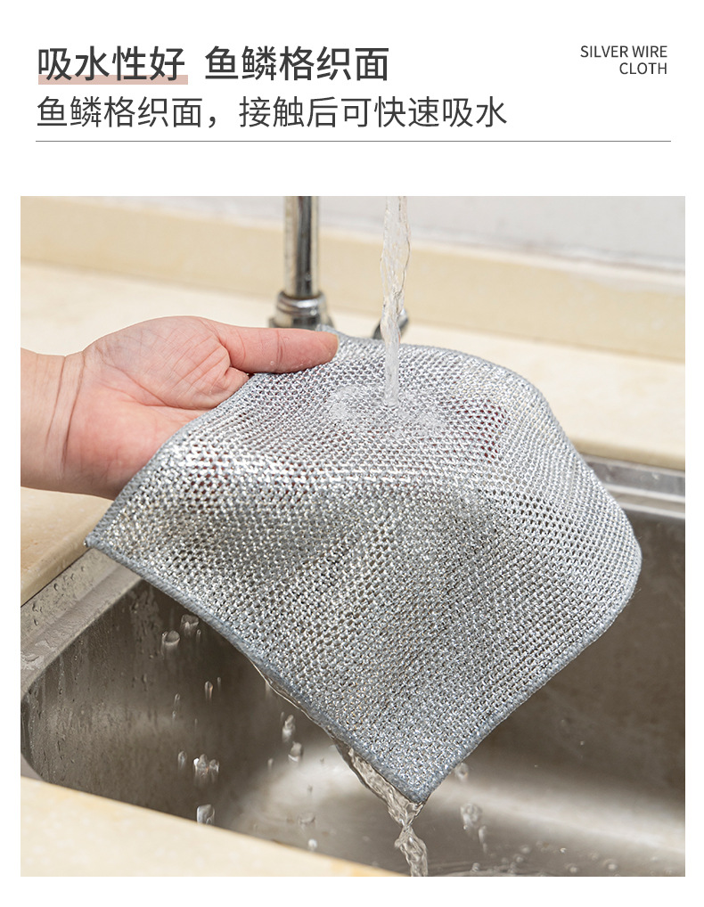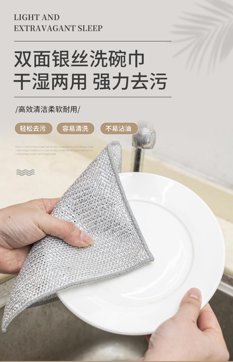 双层银丝抹布洗碗巾双面加厚不沾油清洁去油污钢丝洗碗布工厂批发