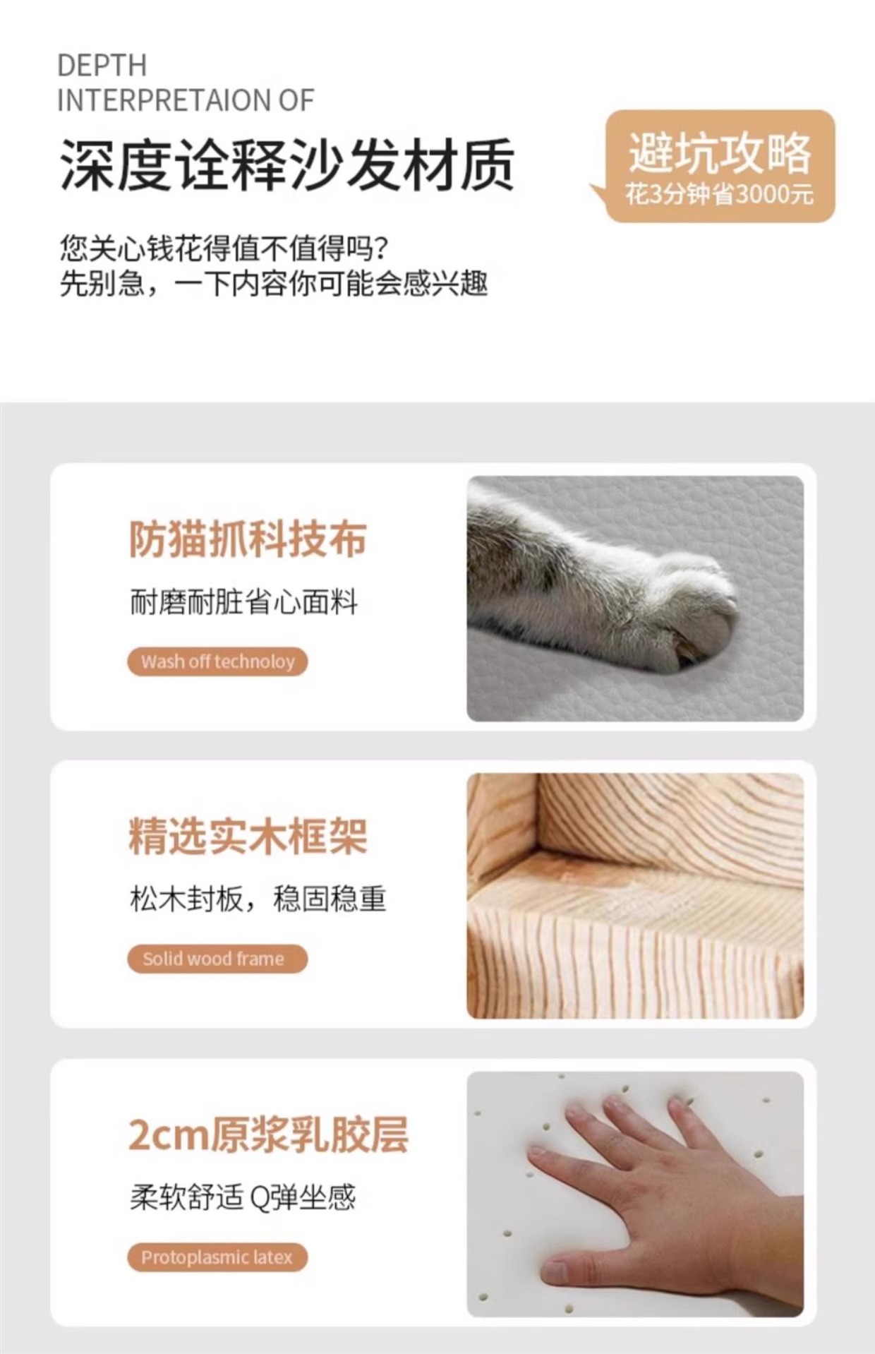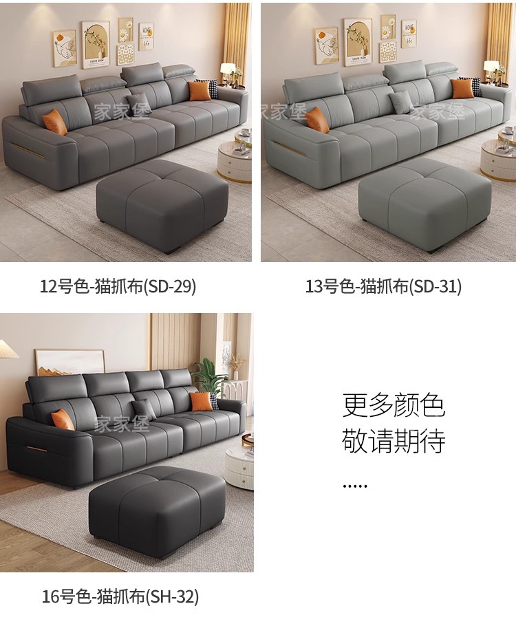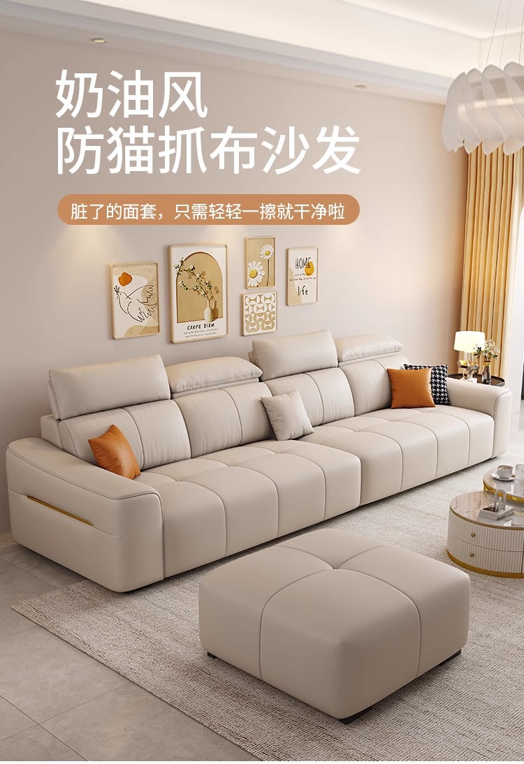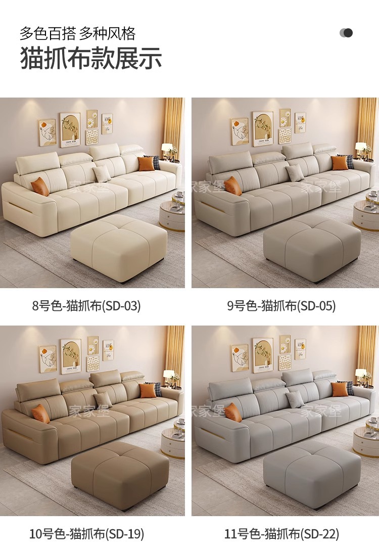 新款猫爪皮布艺沙发现代极简客厅三人直排贵妃组合轻奢真皮家具