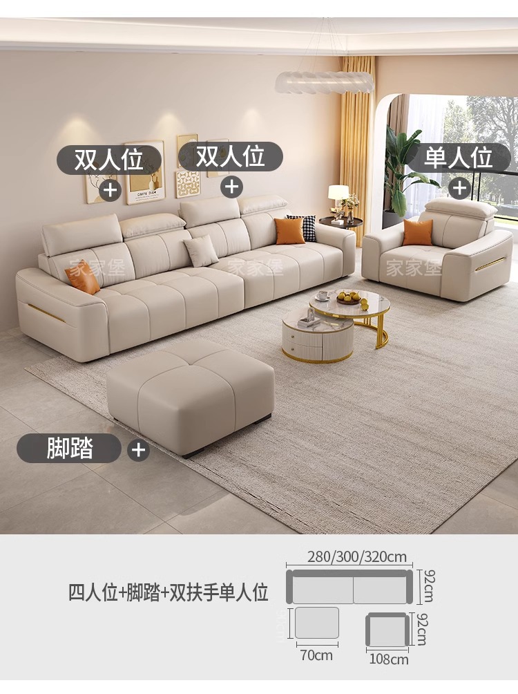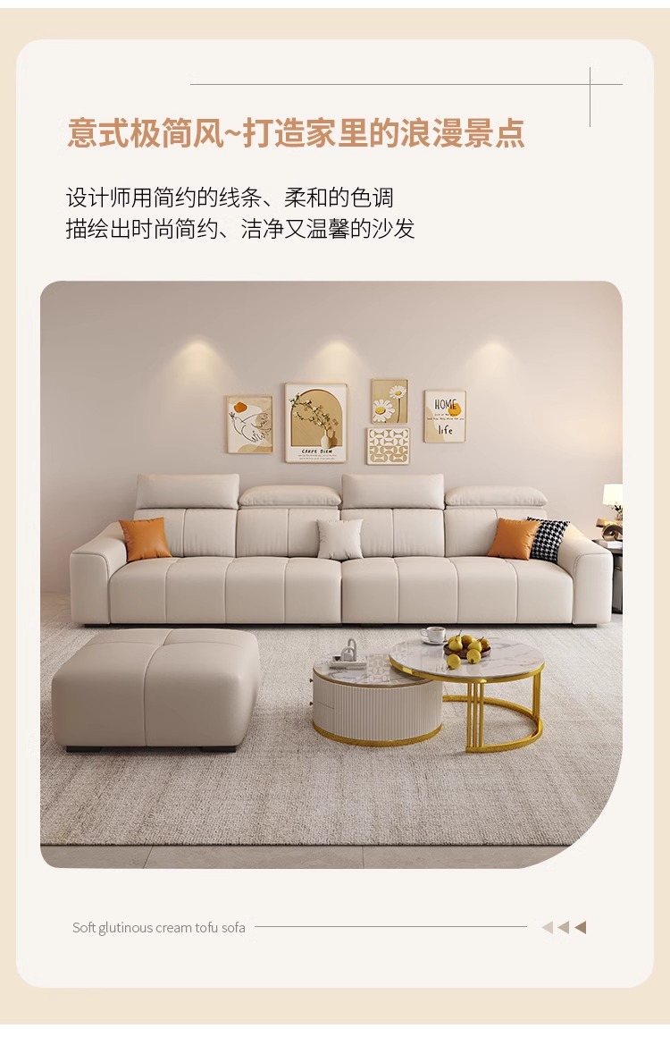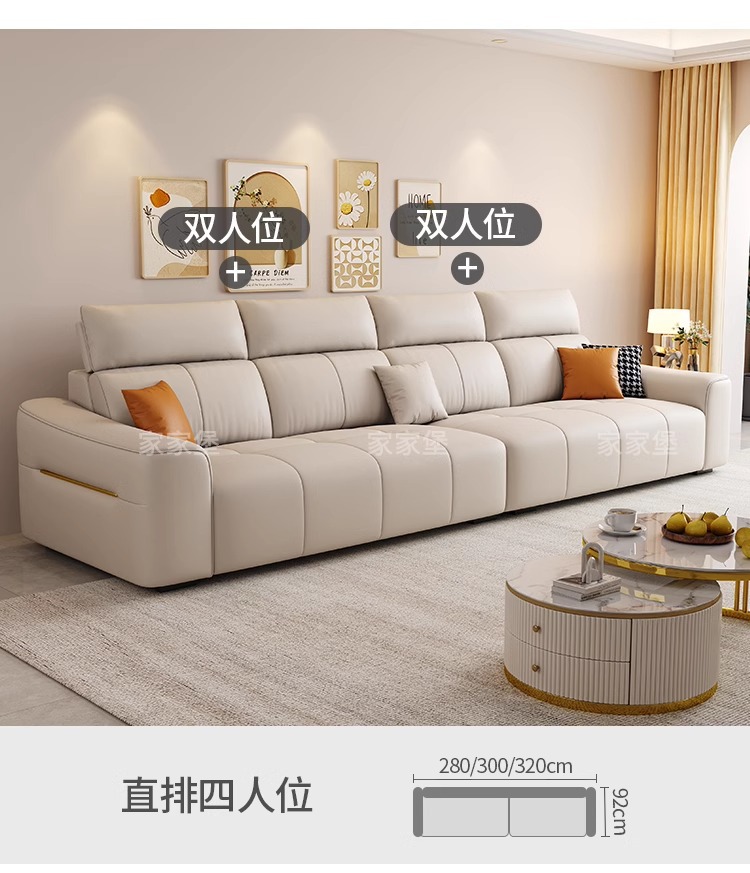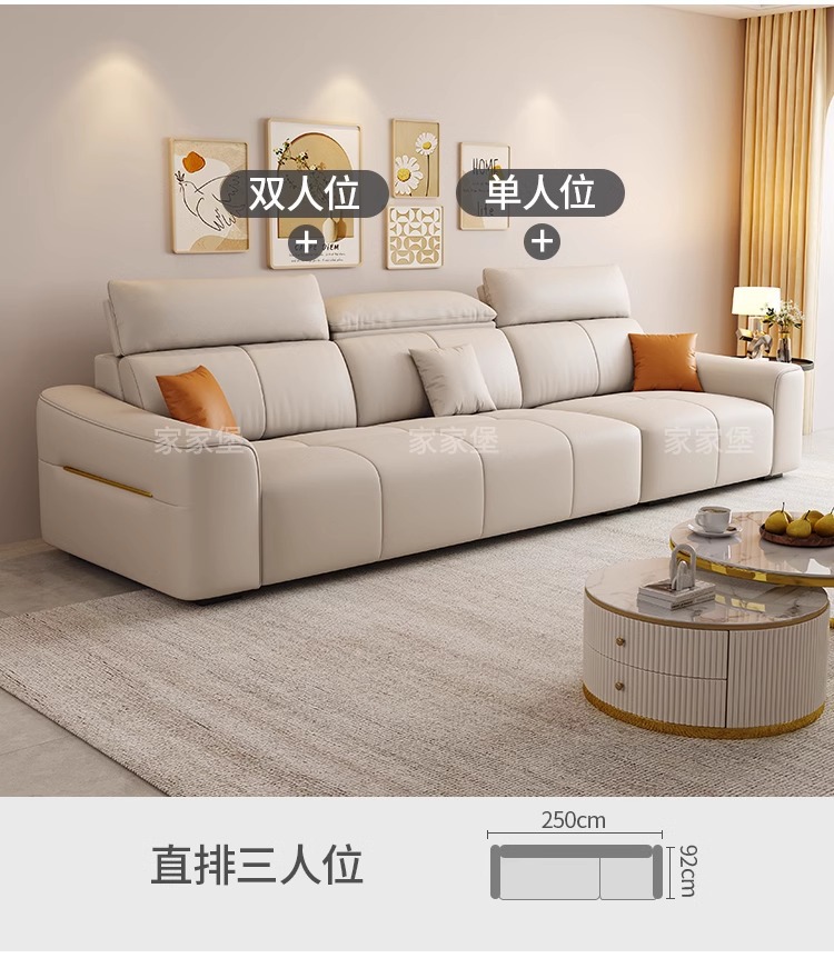 新款猫爪皮布艺沙发现代极简客厅三人直排贵妃组合轻奢真皮家具