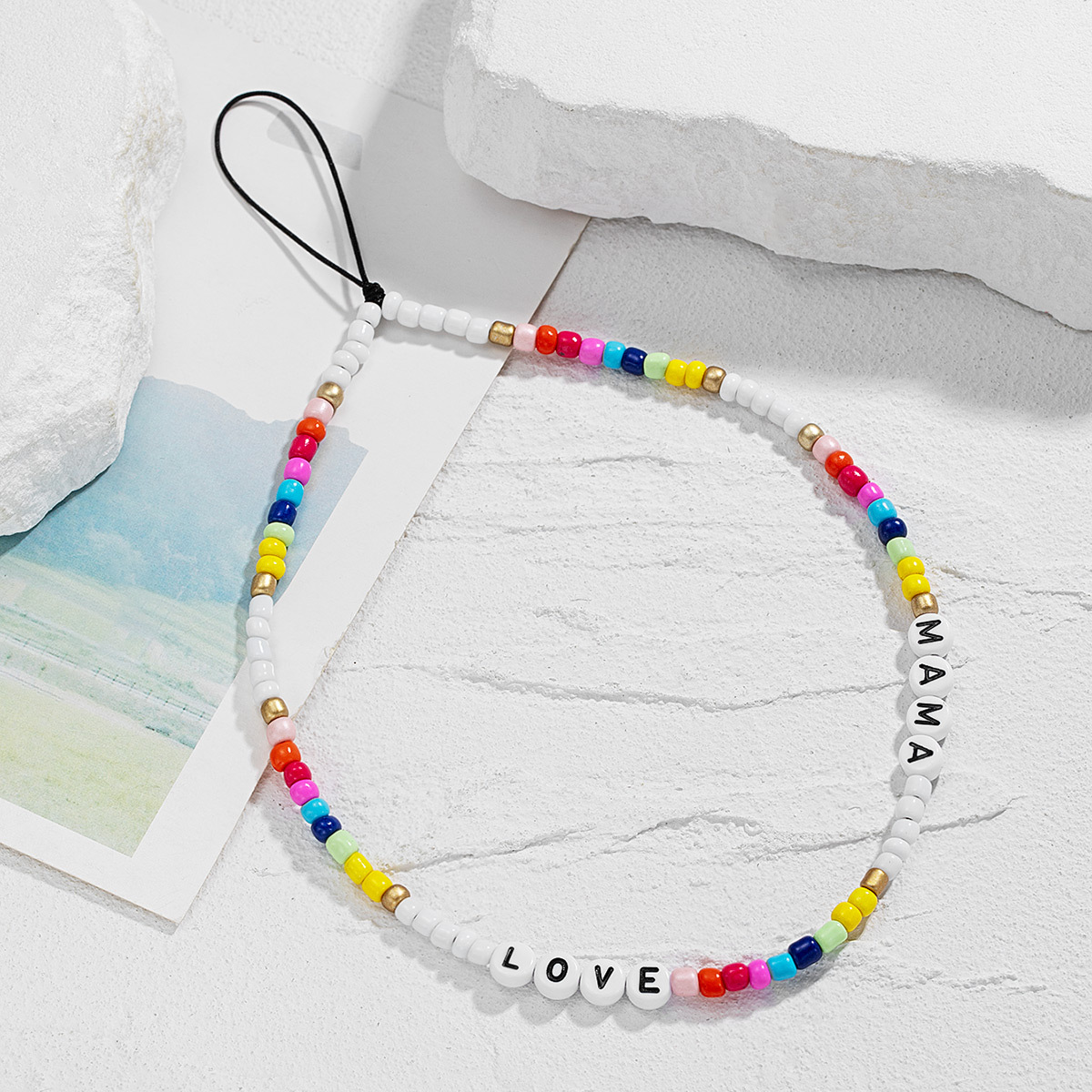 时尚母亲节个性风树脂字母LOVE彩色米珠串珠编织手机链女挂饰挂件