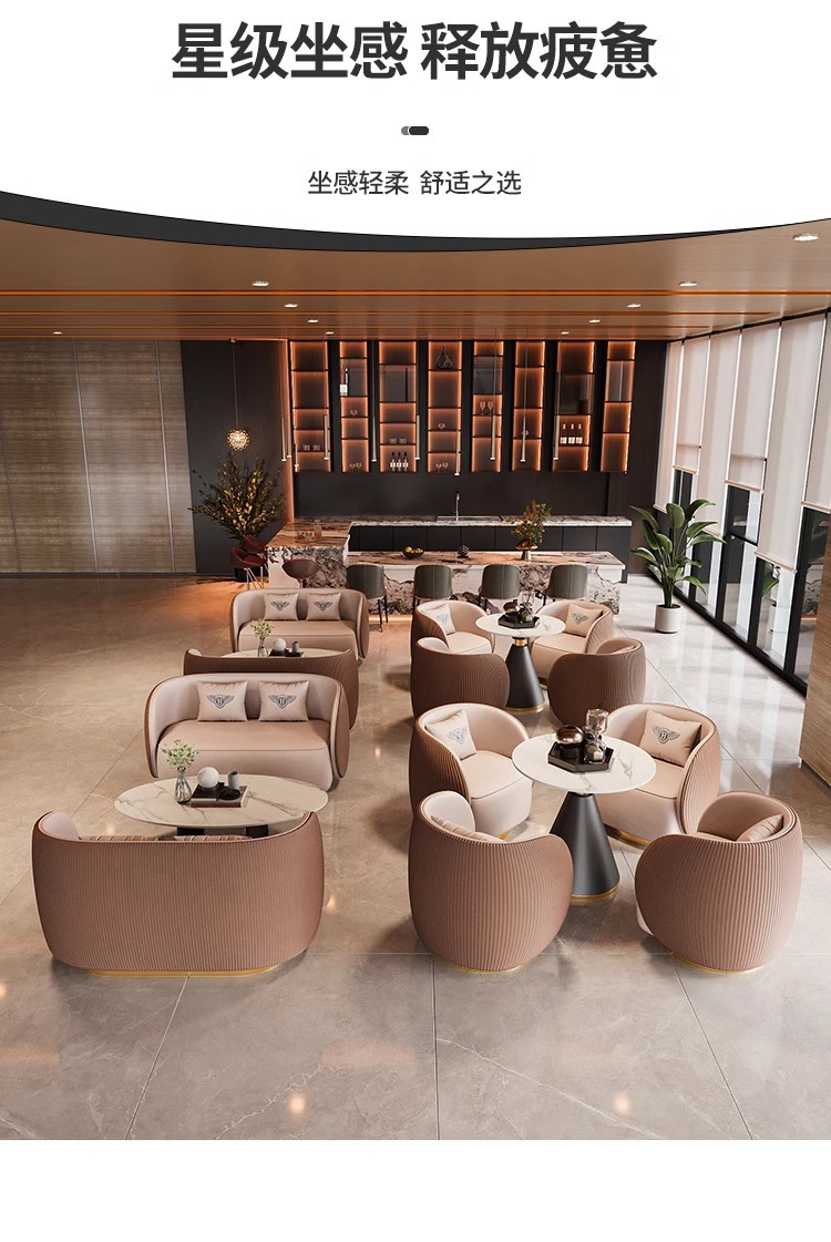 轻奢酒店大堂接待沙发洽谈桌椅组合售楼处美容院办公室会客谈判桌