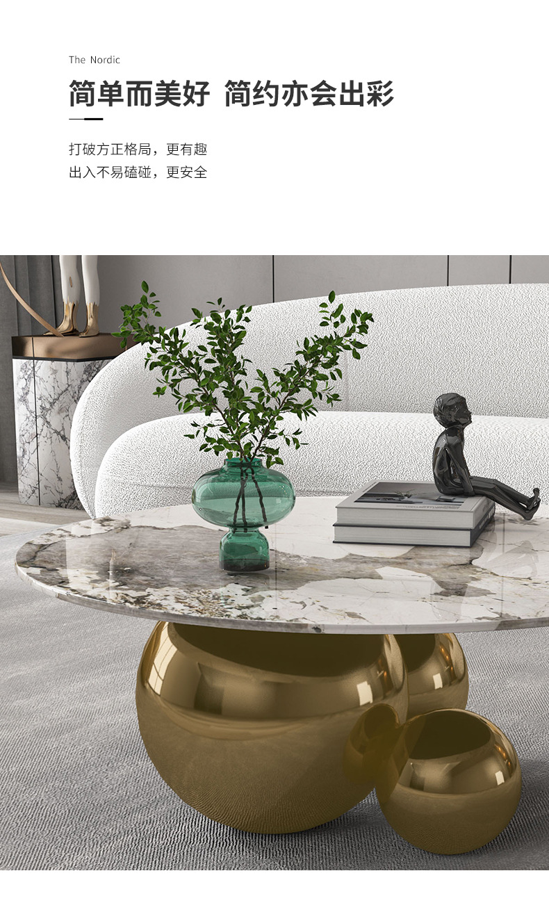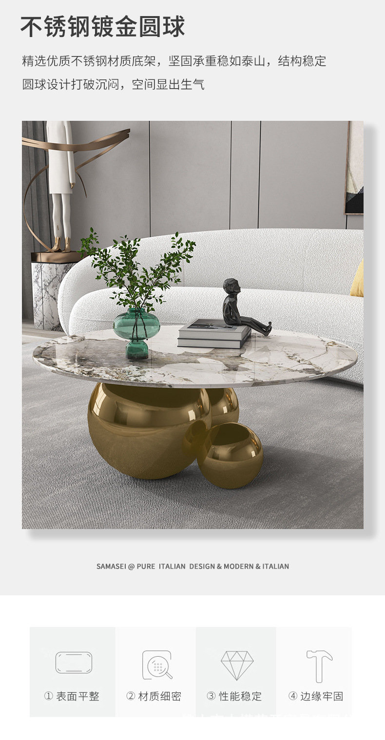 意式三球圆形茶几岩板创意家用现代网红小户型不锈钢高端客厅茶几
