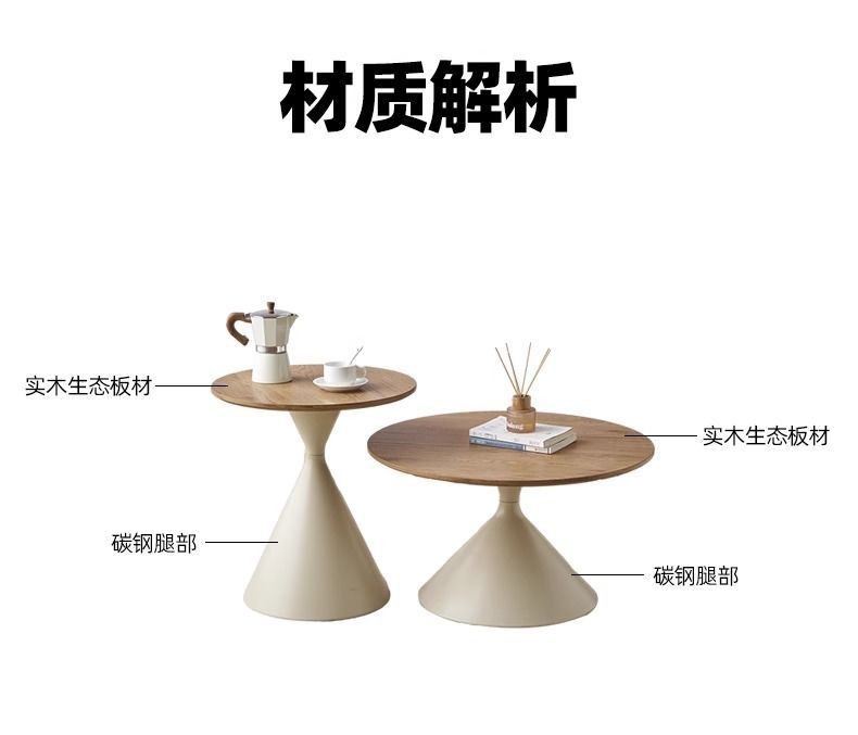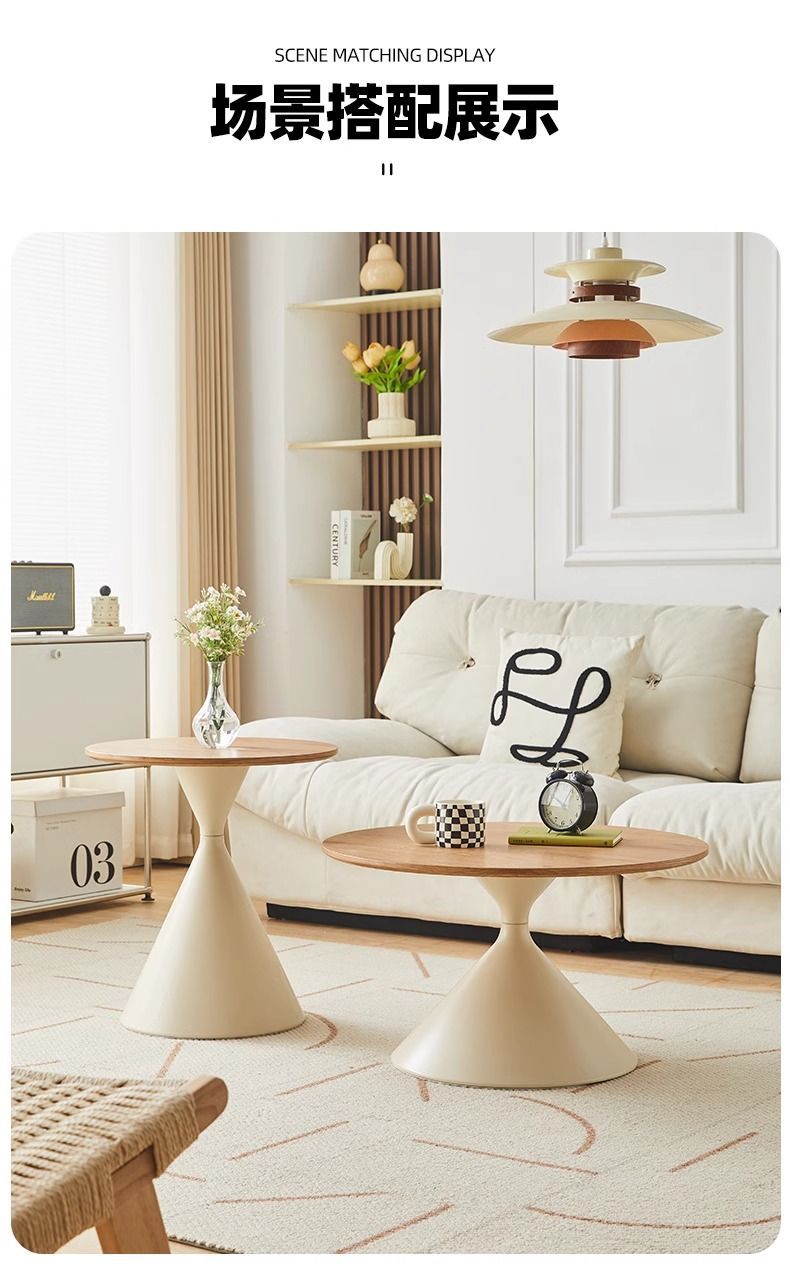 北欧奶油风圆形茶几家用设计师小户型客现代实木民宿简约小户茶几