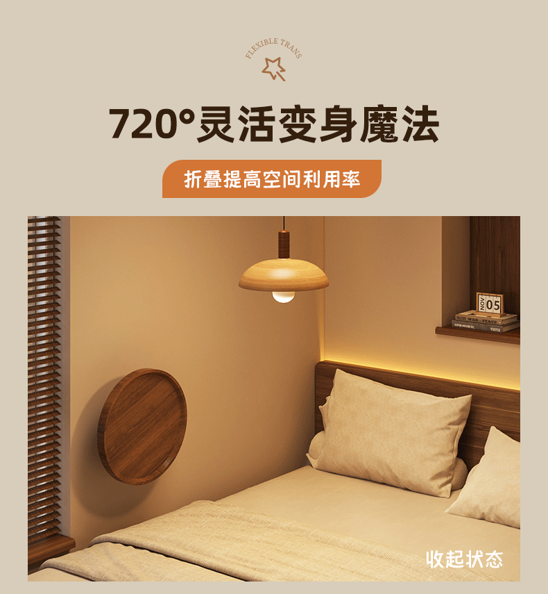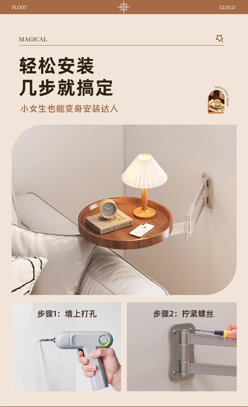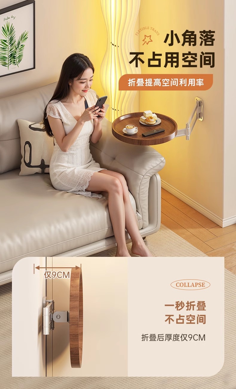 可折叠茶几小圆桌创意悬浮边几客厅边桌家用卧室壁挂床头置物桌子