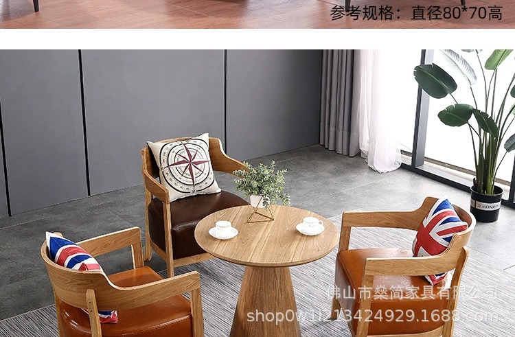 实木小圆桌洽谈桌茶几简约休闲创意咖啡厅售楼处酒店店面接待圆桌