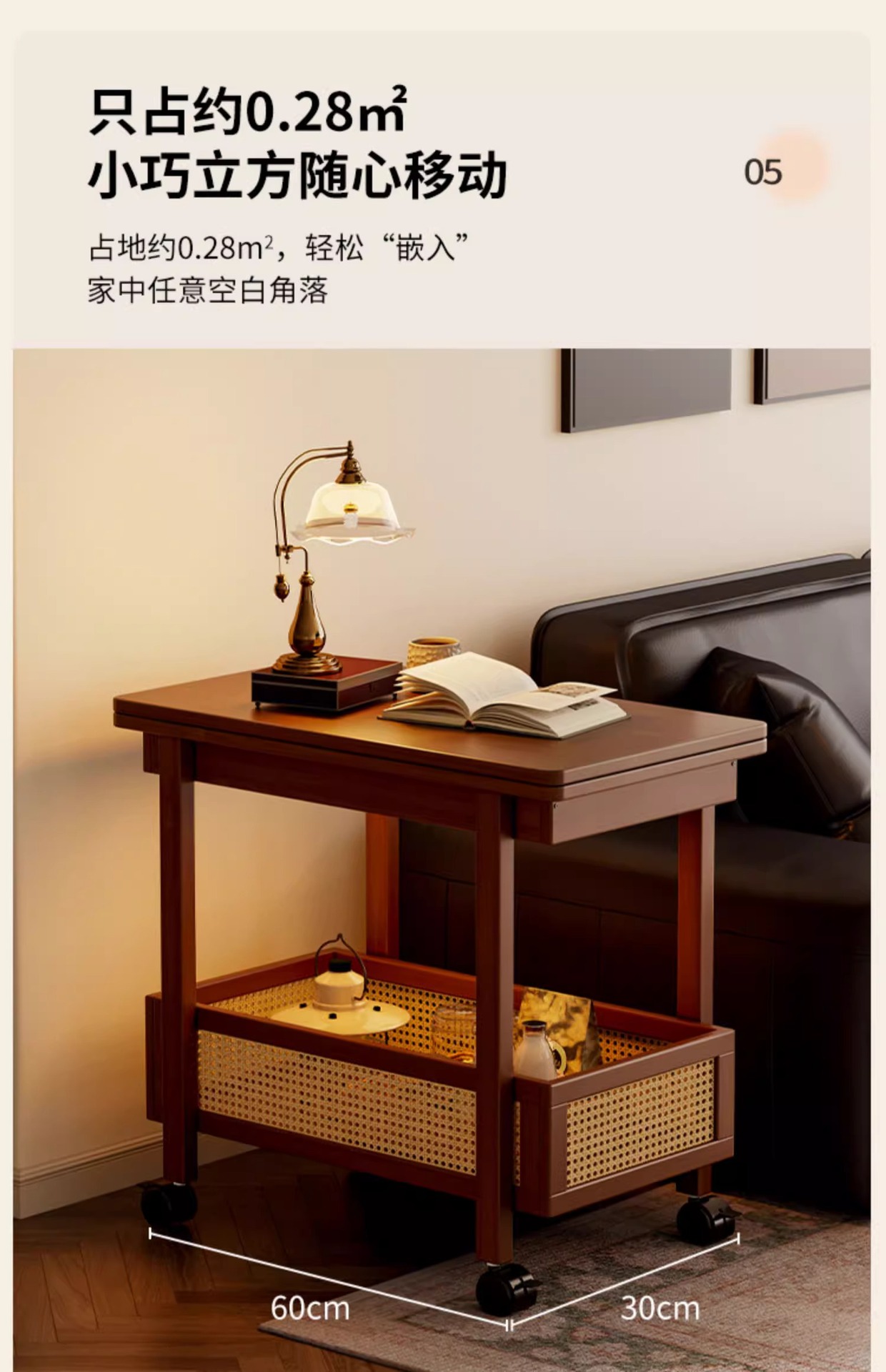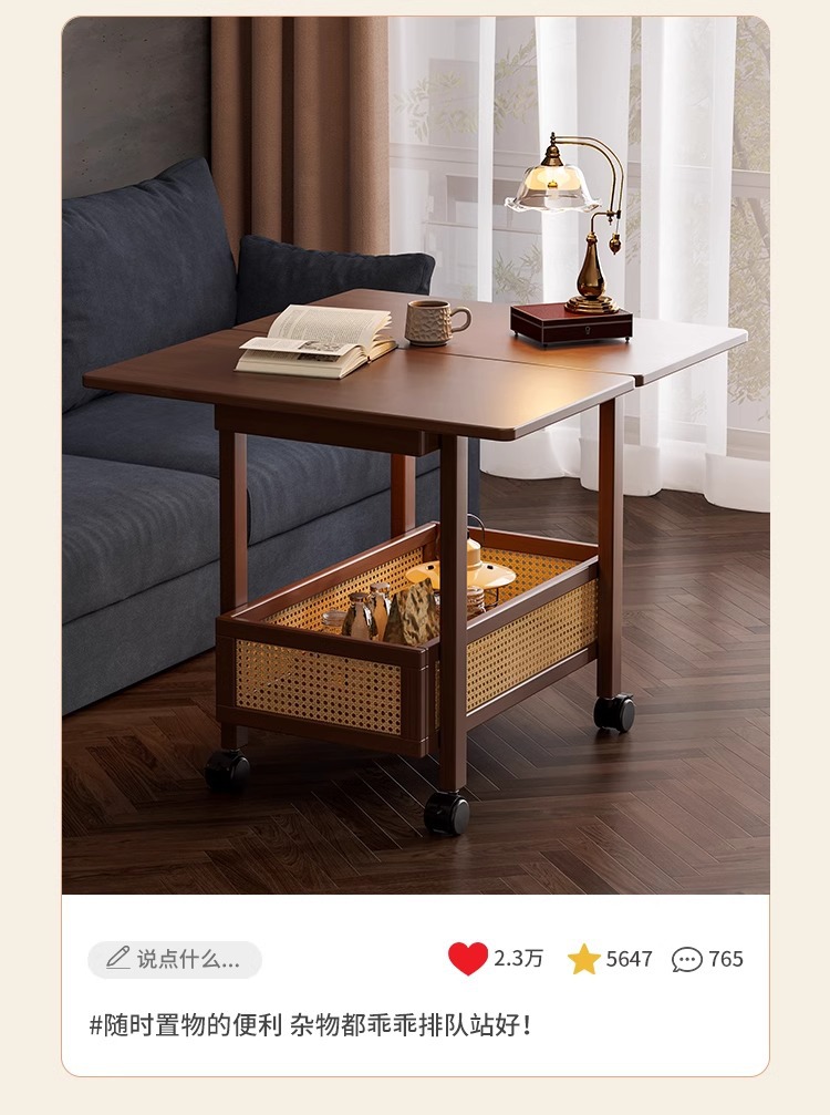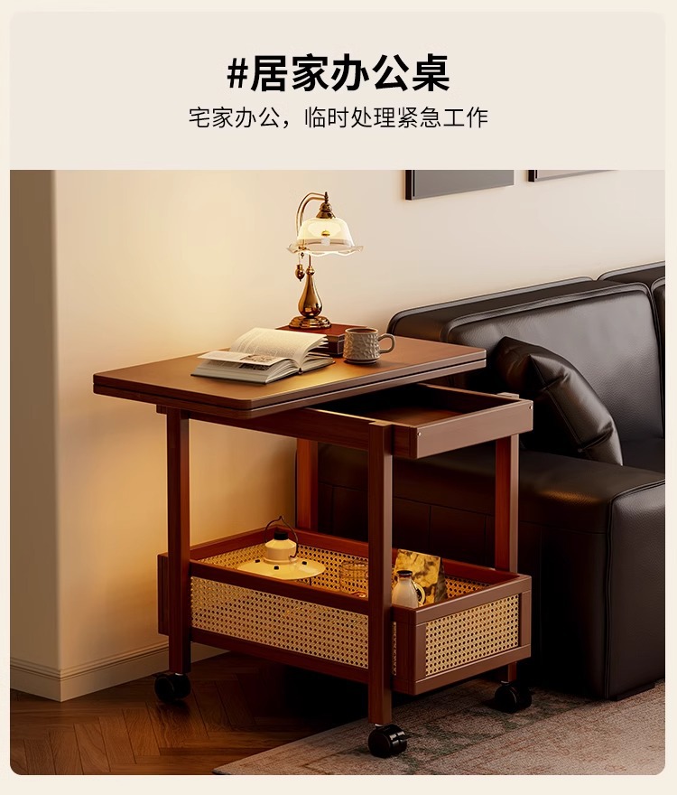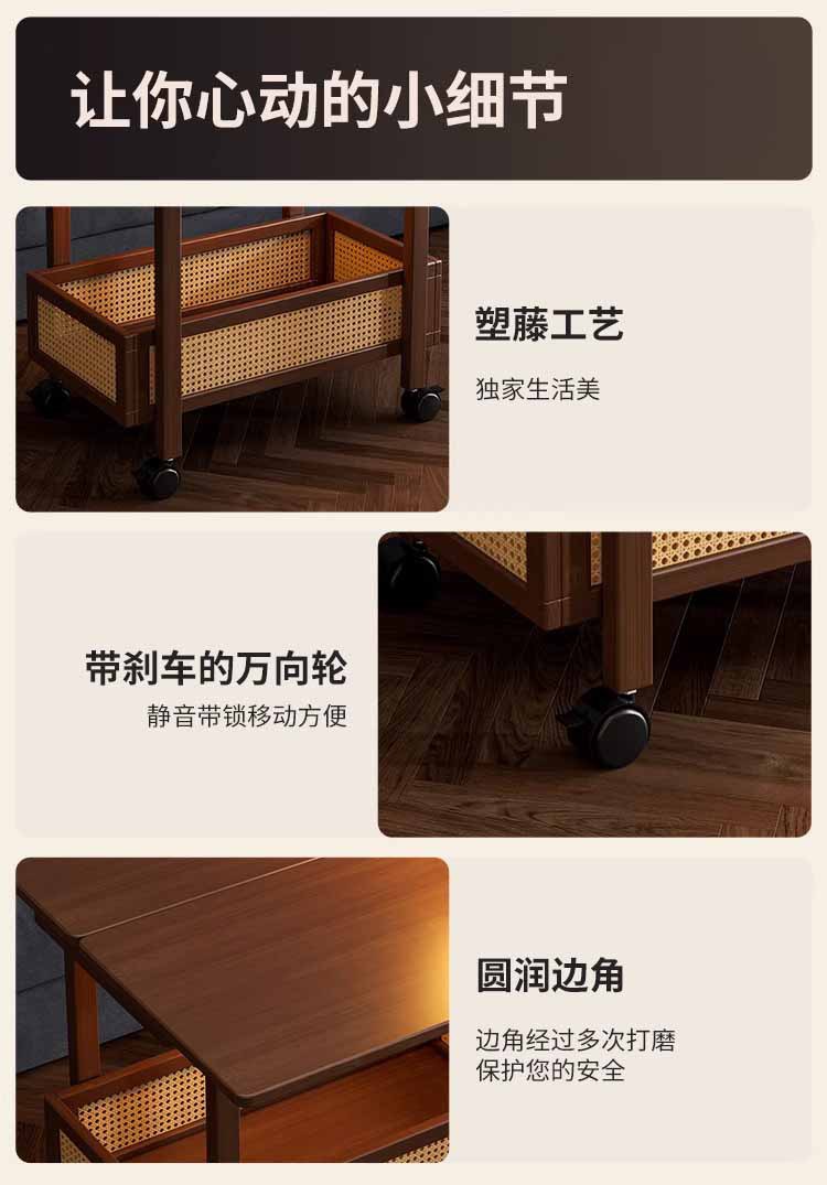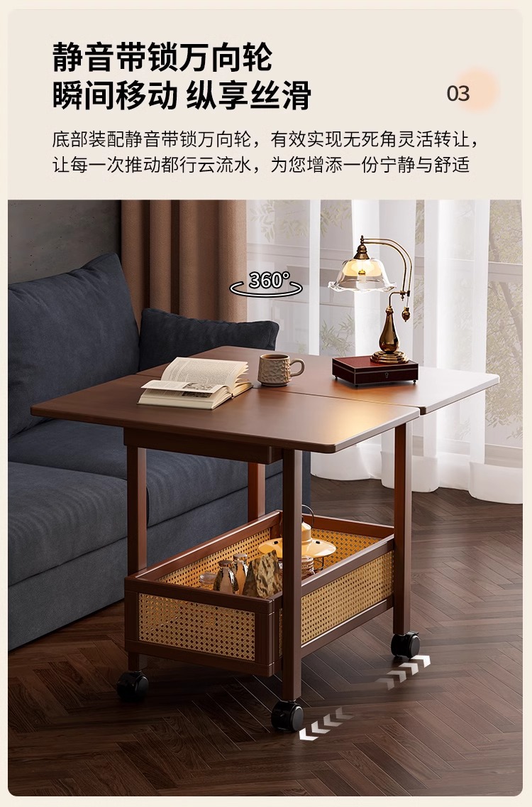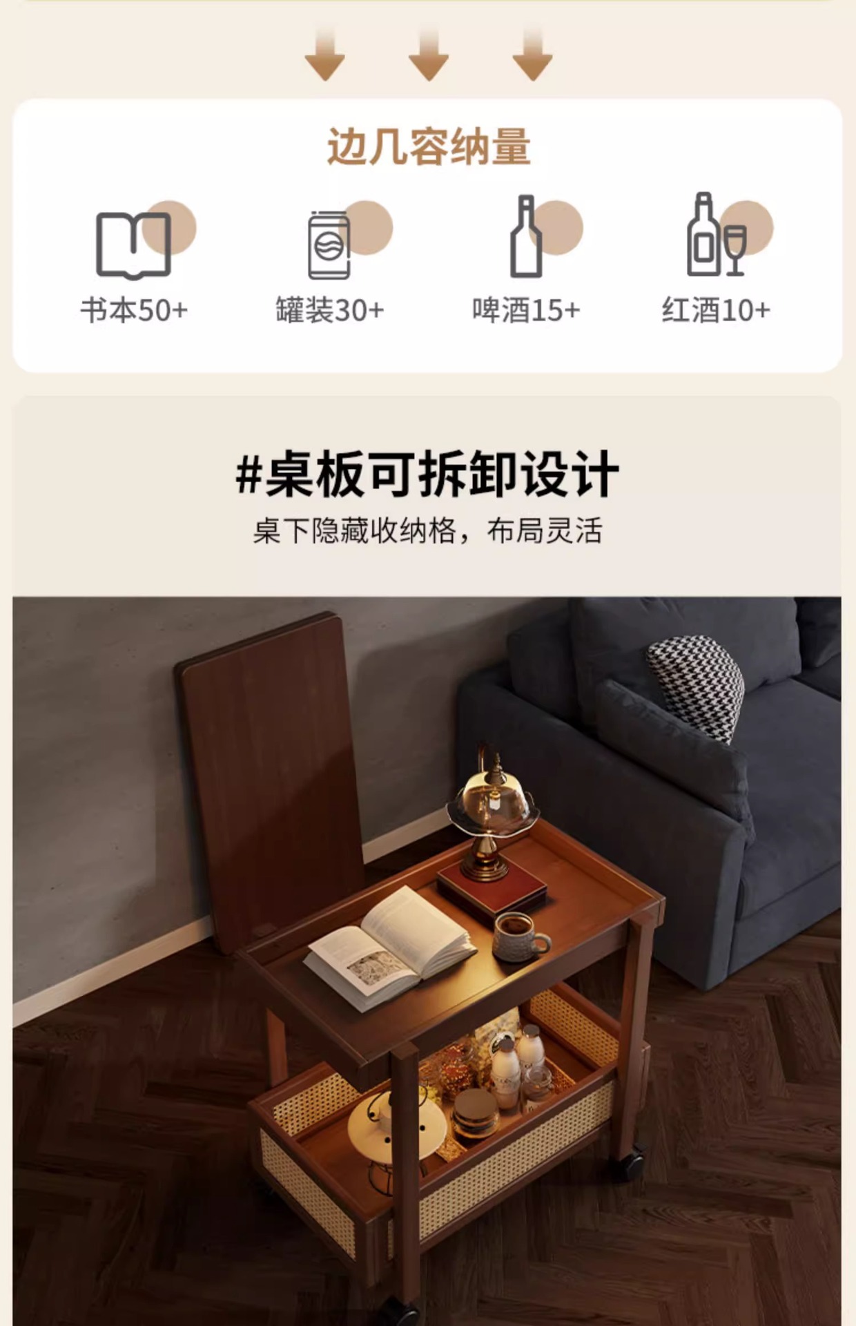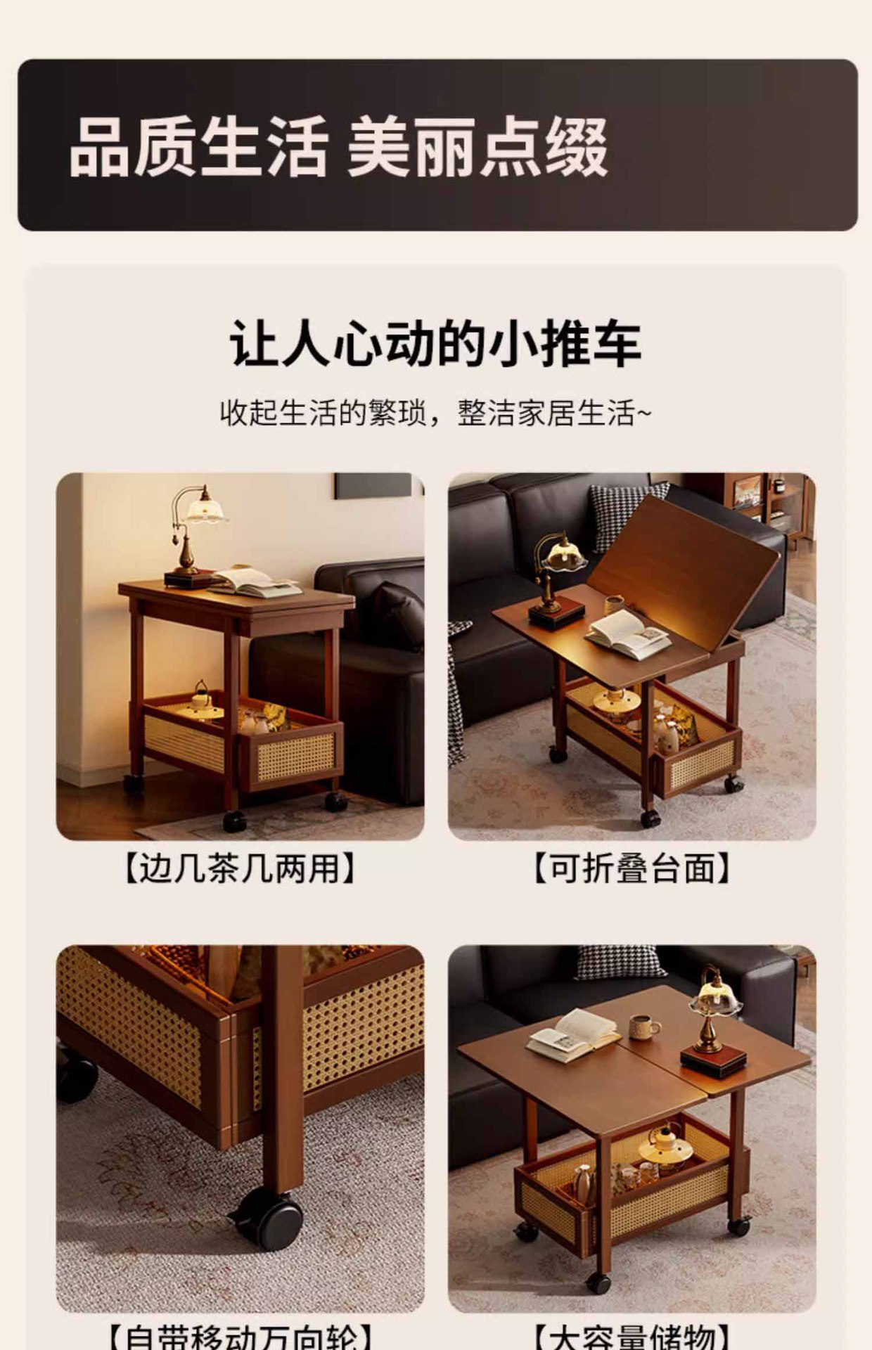 可移动客厅沙发置物玻璃边几中古风小茶几卧室床边简易带轮小推车