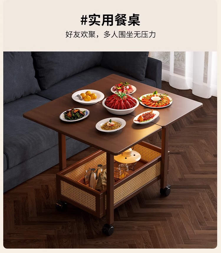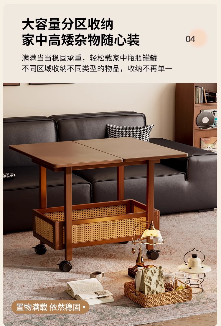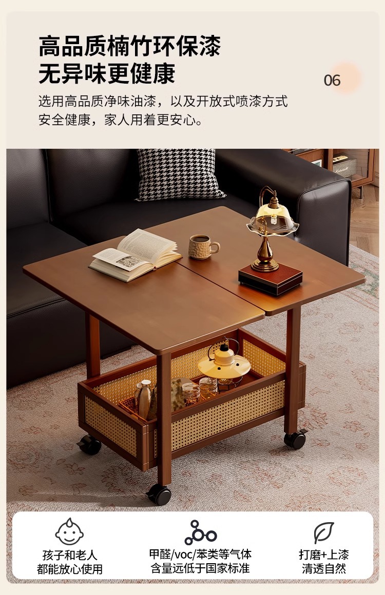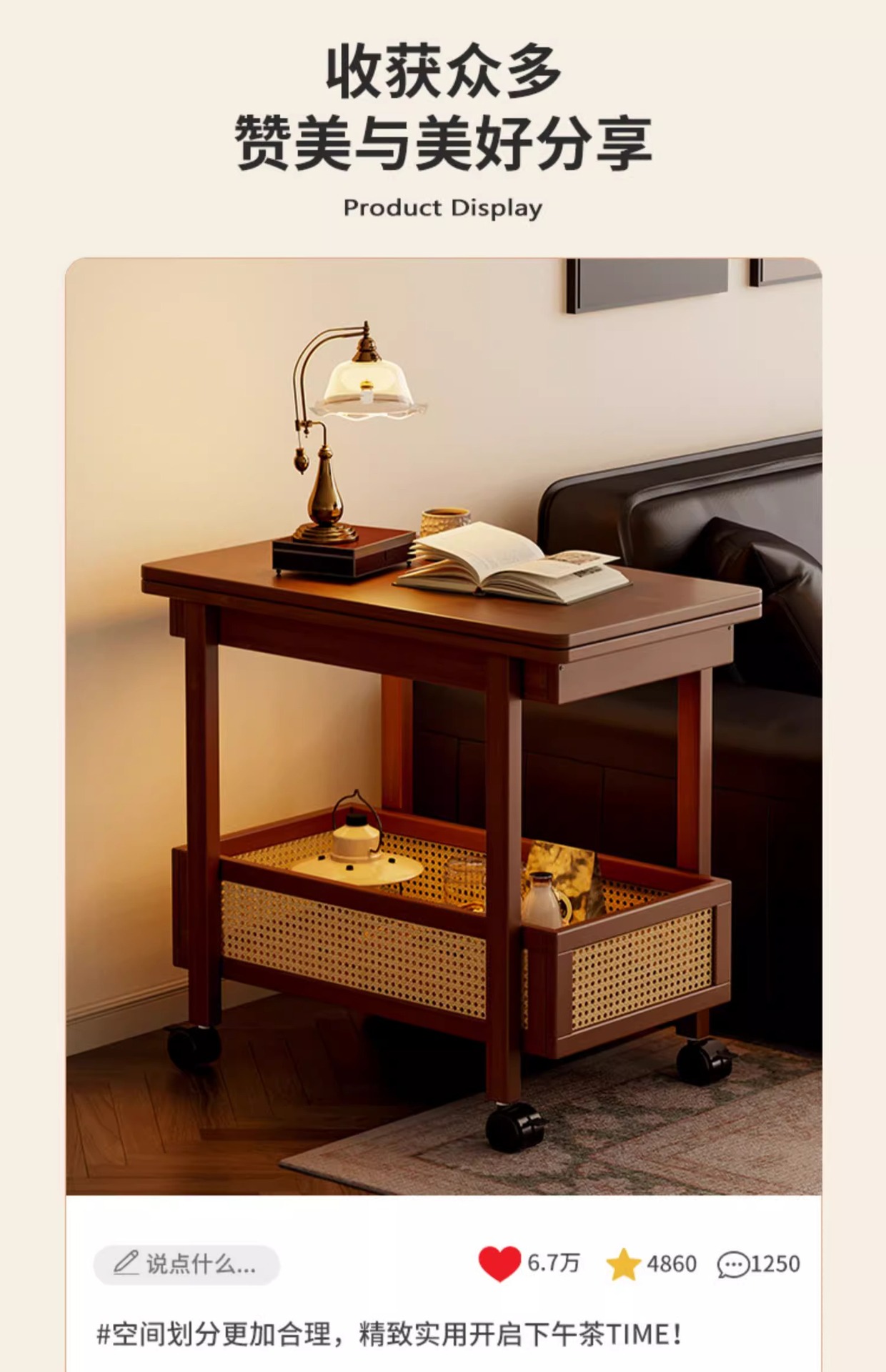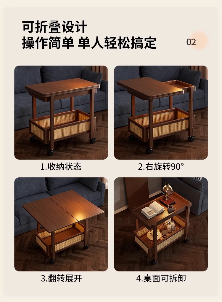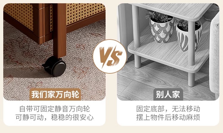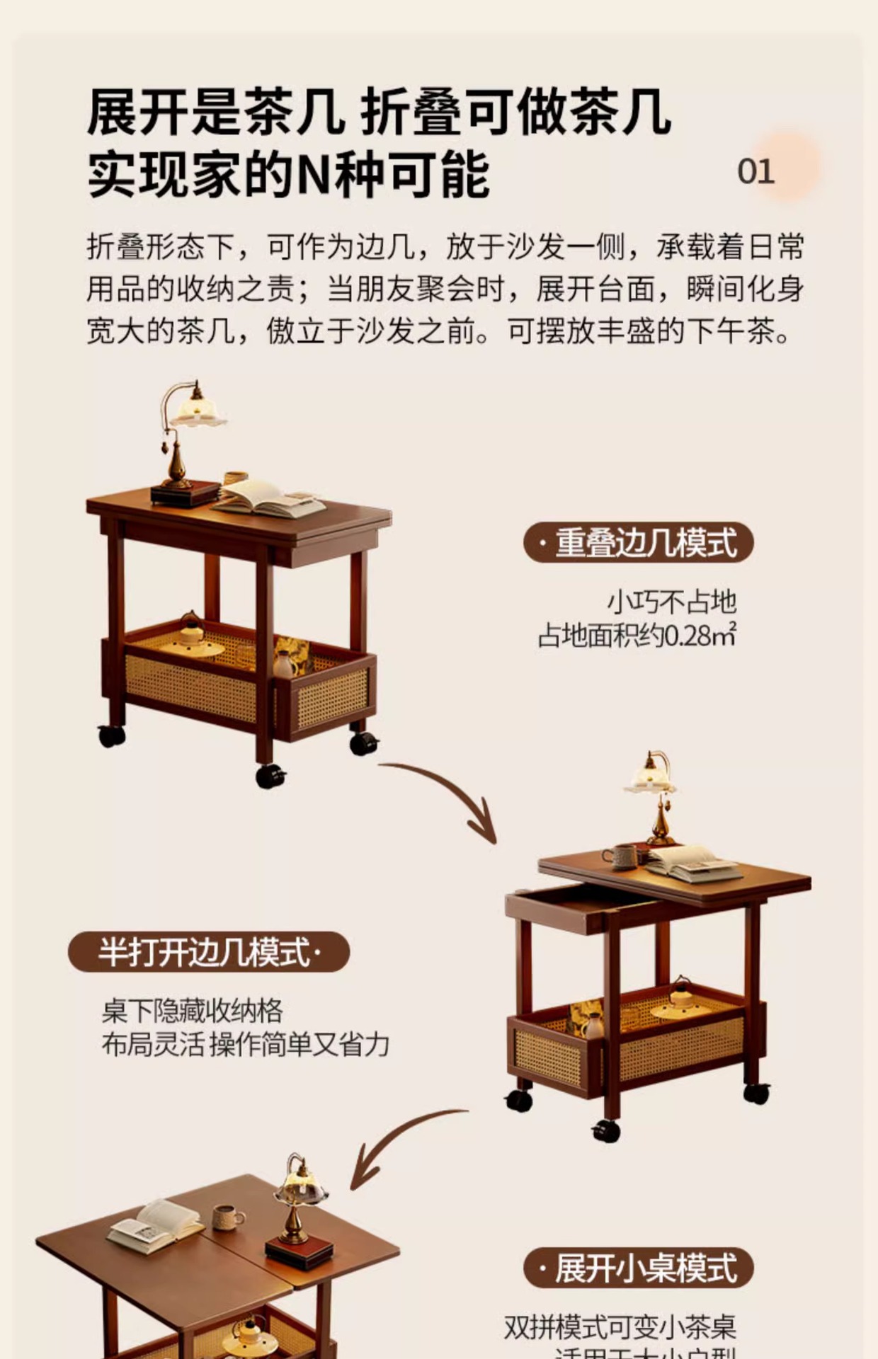 可移动客厅沙发置物玻璃边几中古风小茶几卧室床边简易带轮小推车