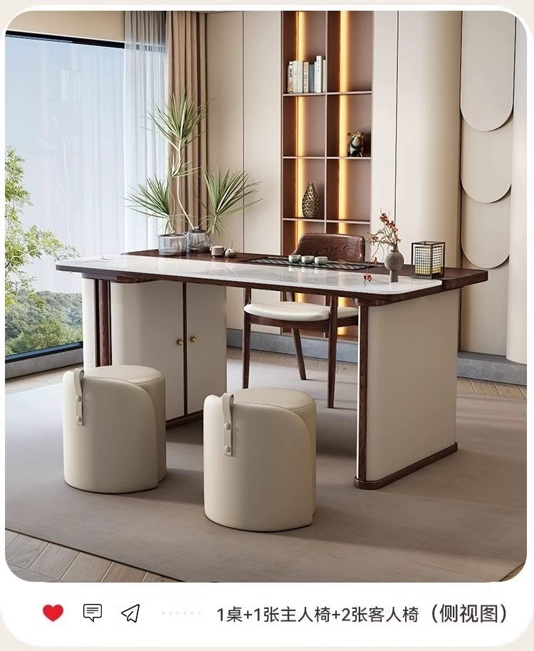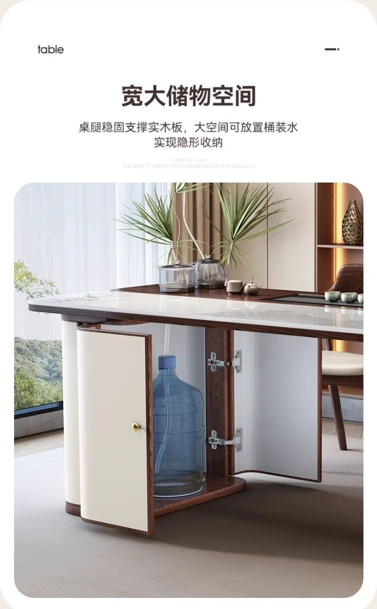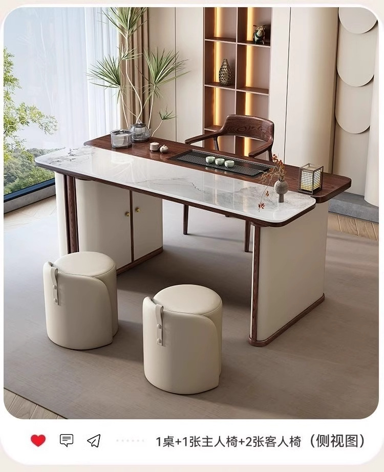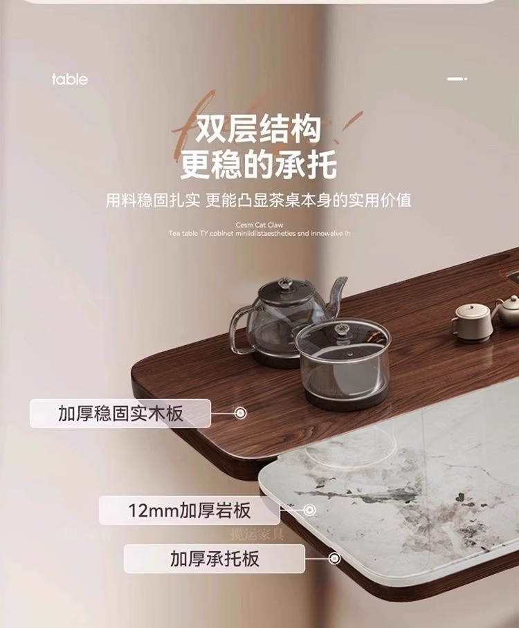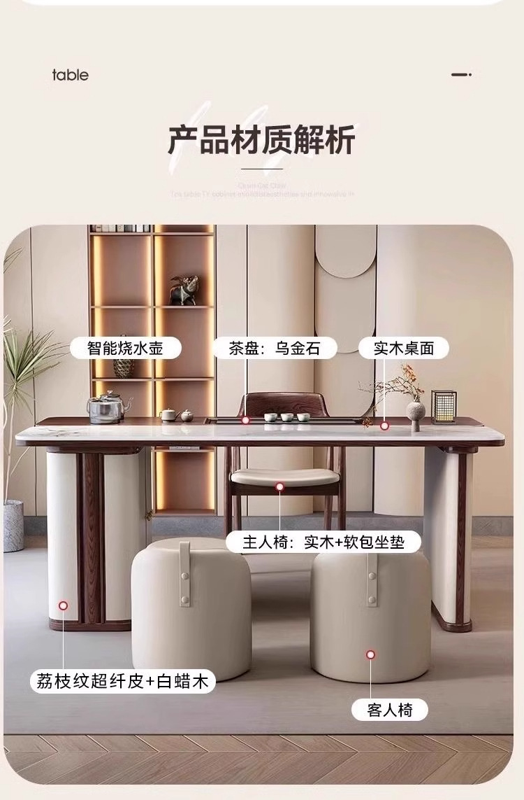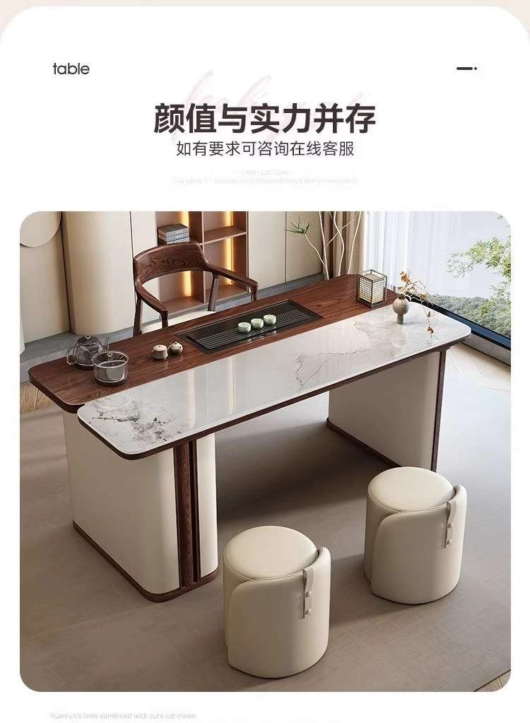 实木岩板茶桌子侘寂新中式烧水壶嵌入式一体办公室家用阳台茶几台