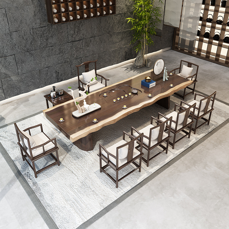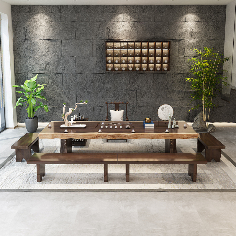新中式实木茶桌原木大板茶桌椅办公室接待茶室禅意拼色功夫泡茶桌