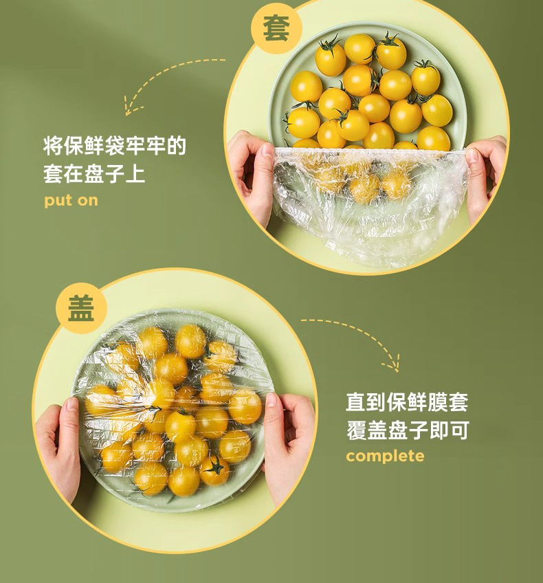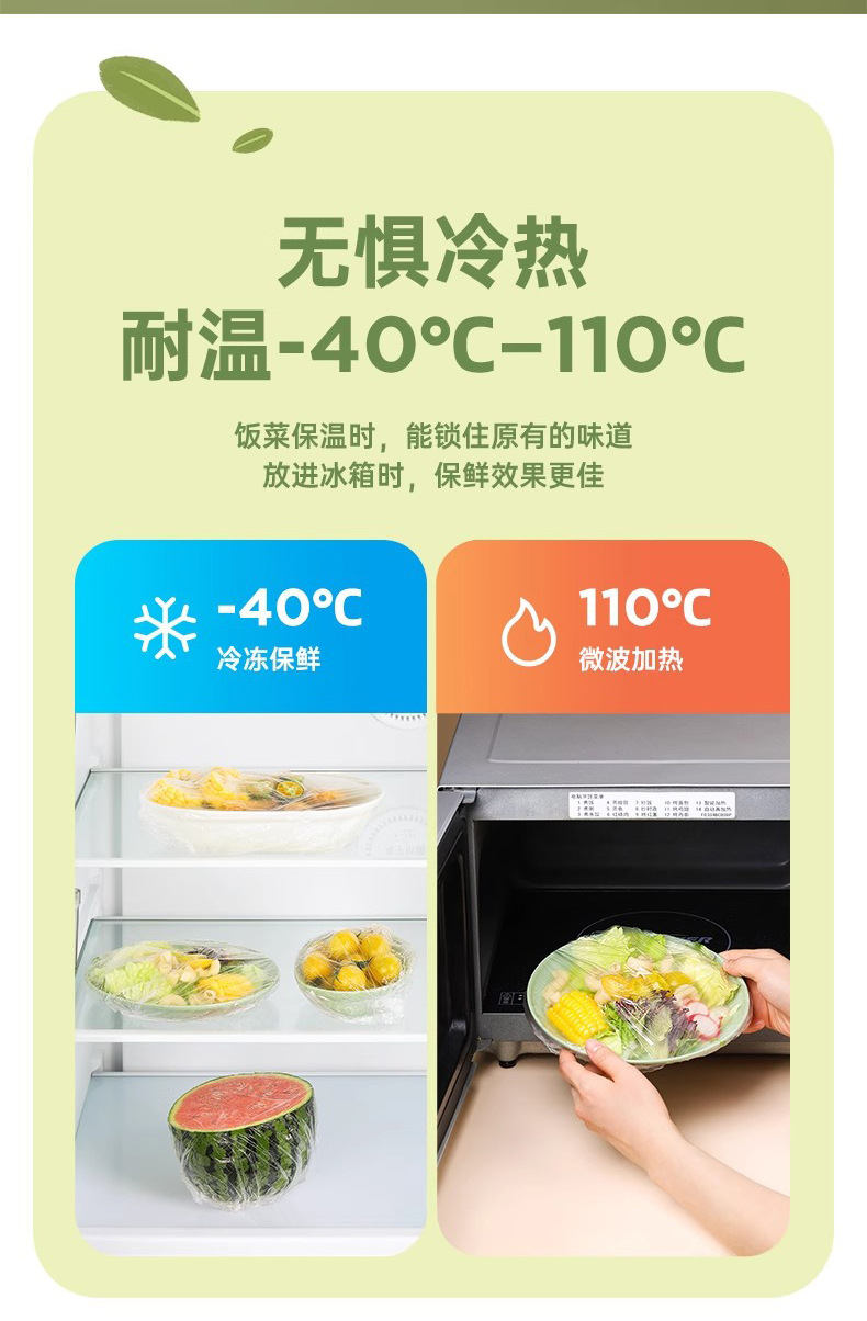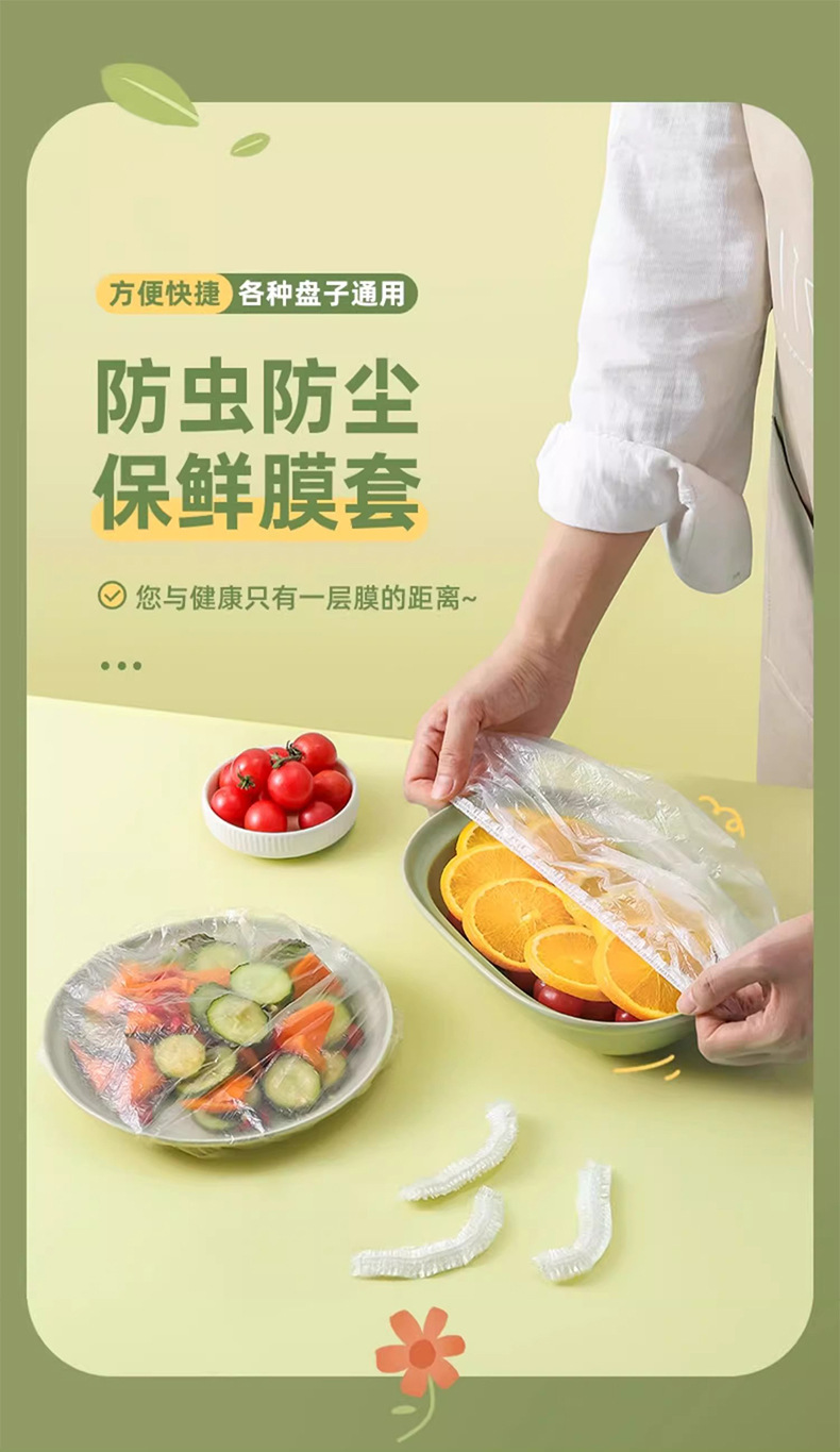 一次性保鲜膜套100只家用冰箱饭菜水果密封松紧口保鲜膜罩