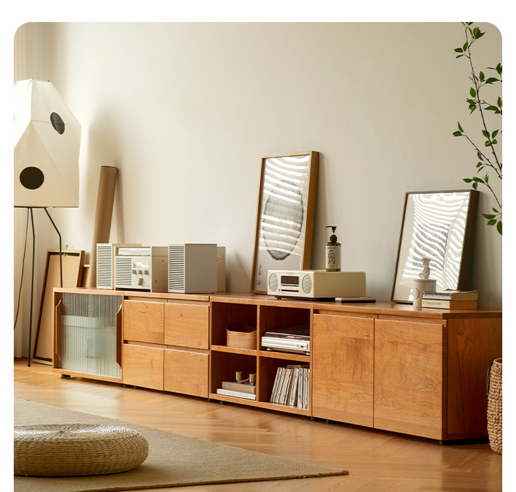 nordic solid wood module tv cabinet japanese style cherrywood furniture living room bookcase locker floor assembled cabinet