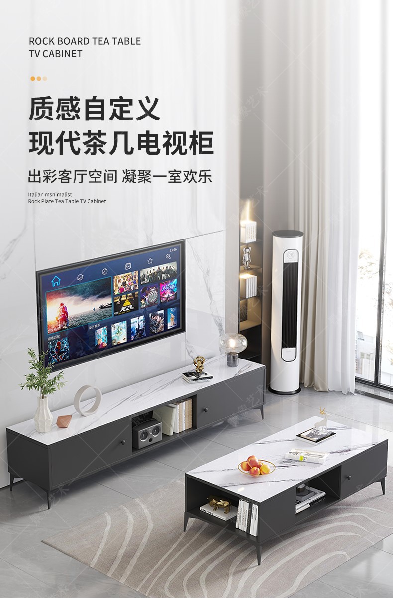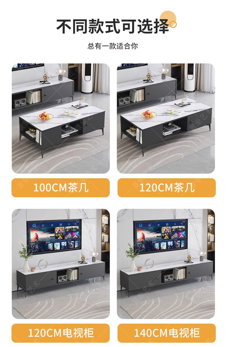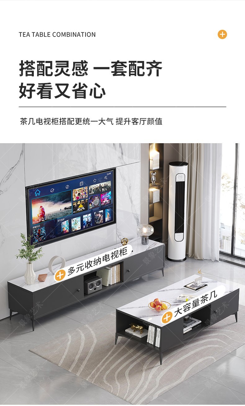 电视机柜茶几组合现代简约客厅家用落地收纳储物柜一体茶桌矮柜