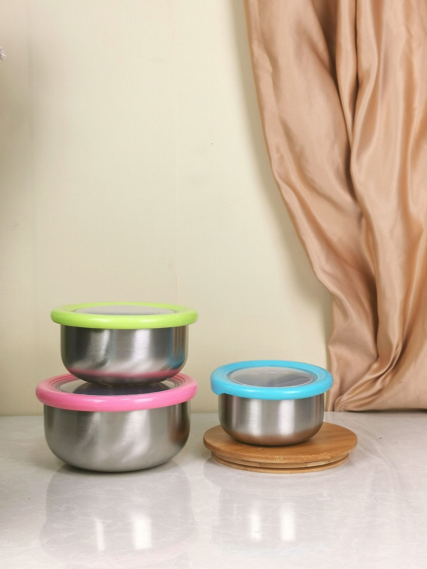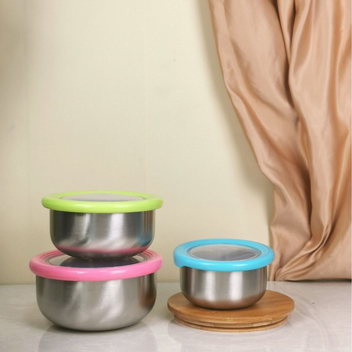 不锈钢三件套保鲜碗 环保不锈钢饭盒三个装食品冰箱收纳盒带盖