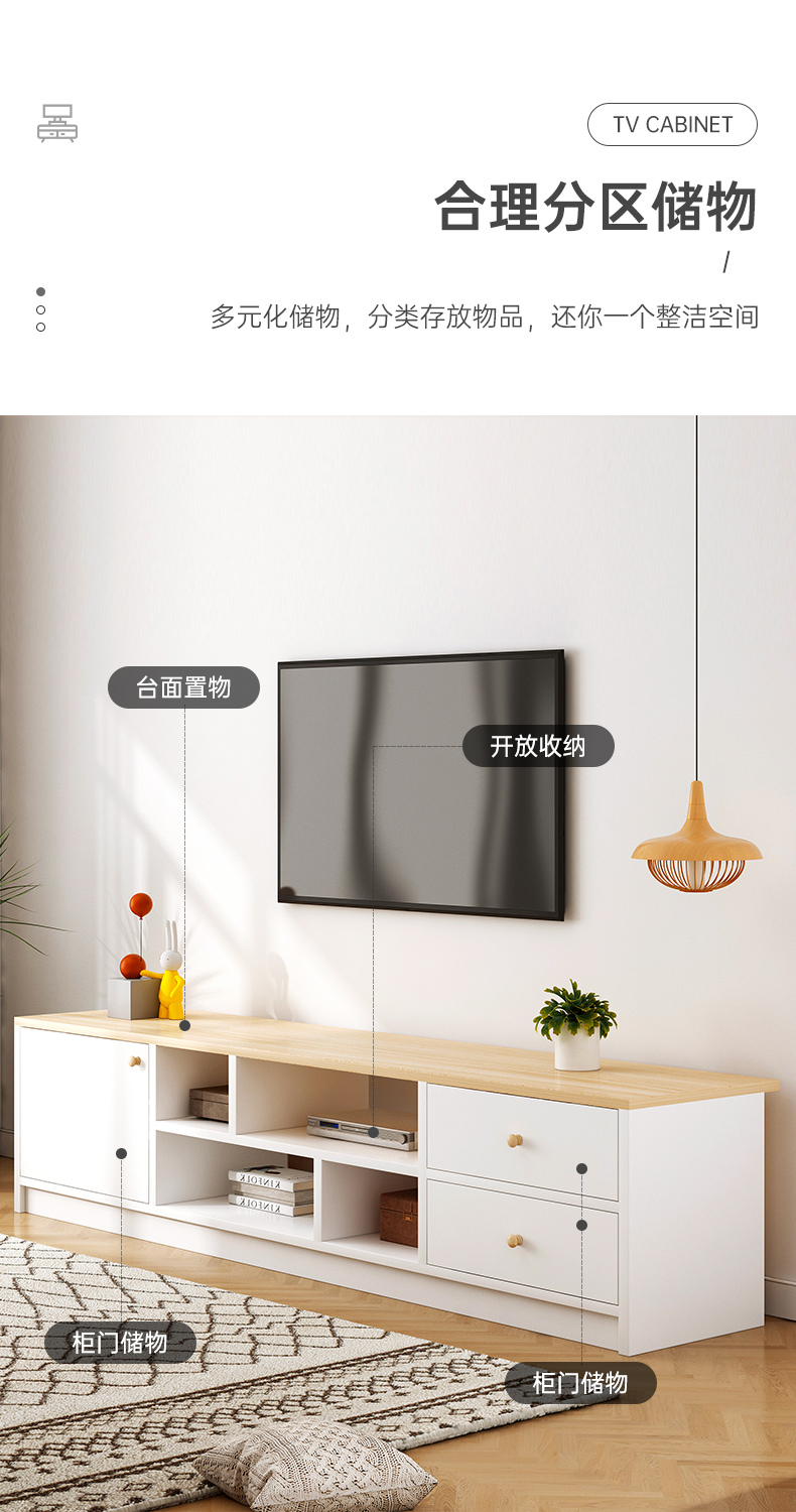 电视柜简约现代小户型客厅家用新款原木风落地桌简易卧室电视锦标
