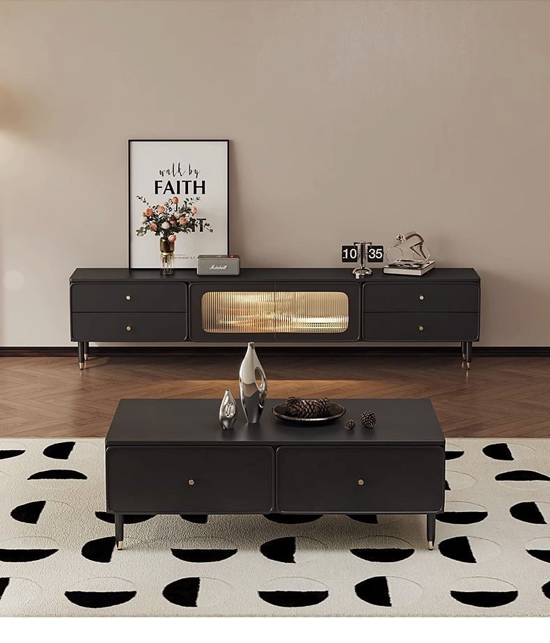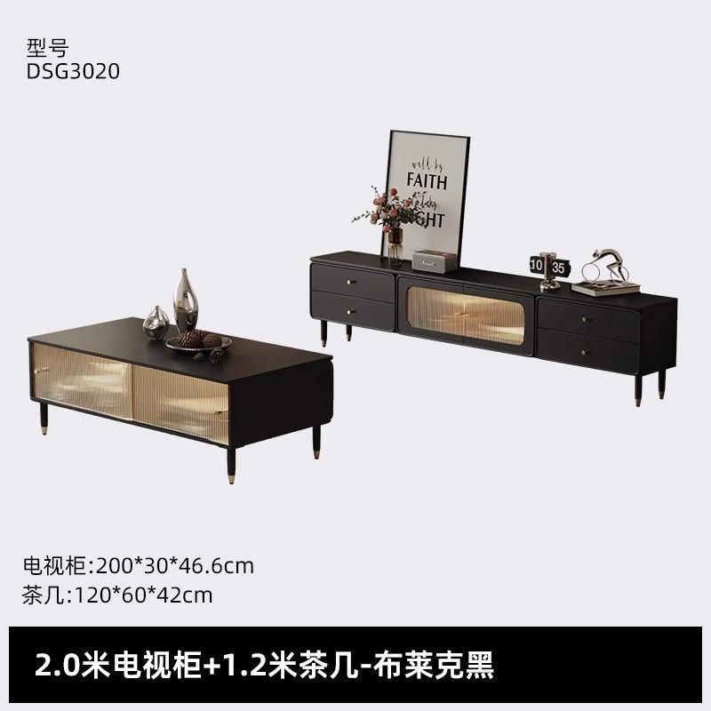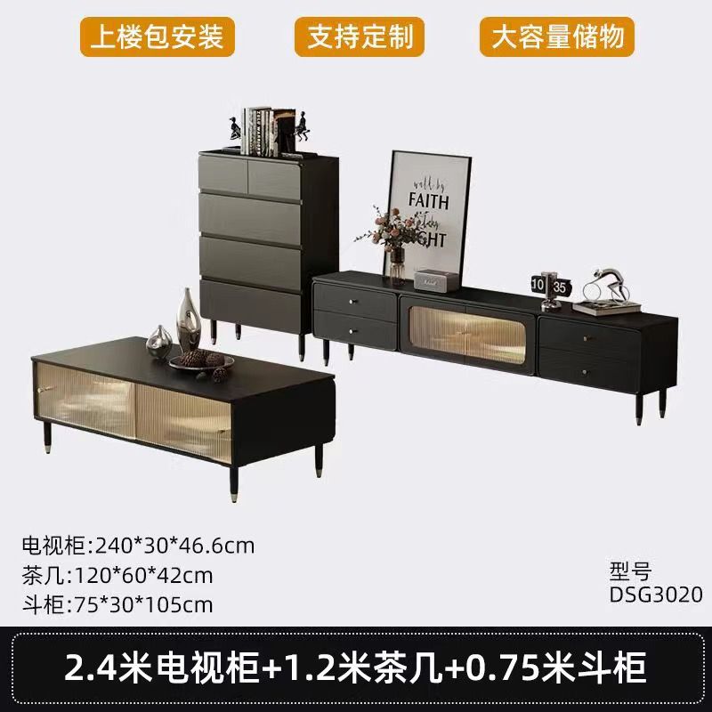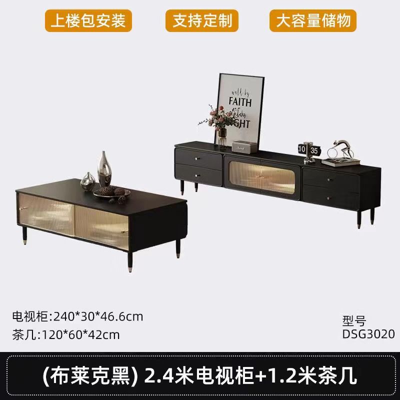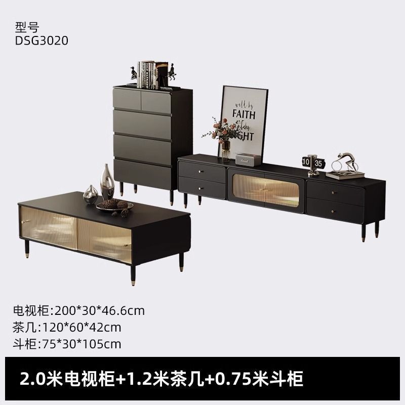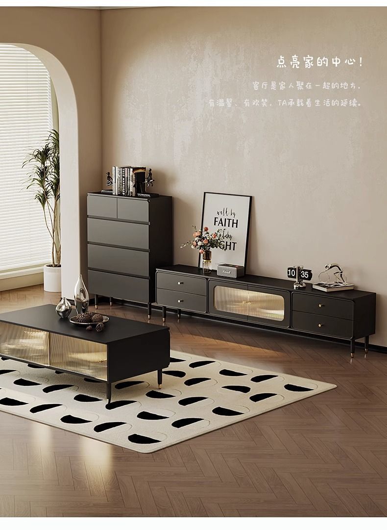 电视柜茶几组合套装简约现代小户型客厅黑色落地柜电视柜边柜