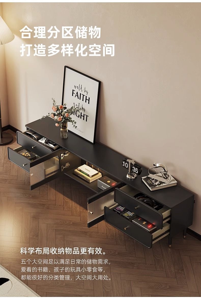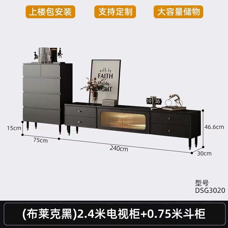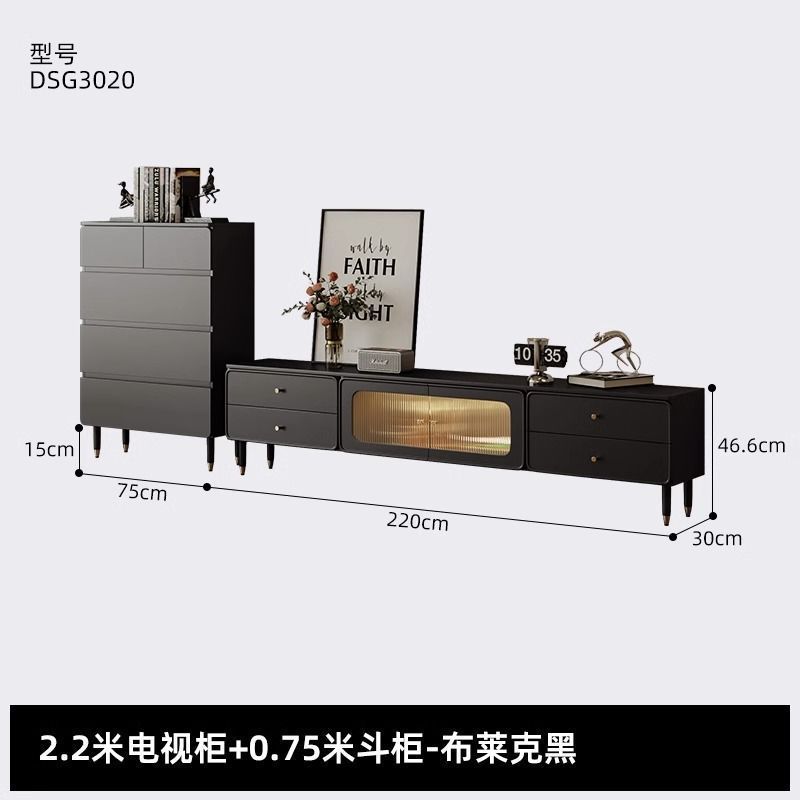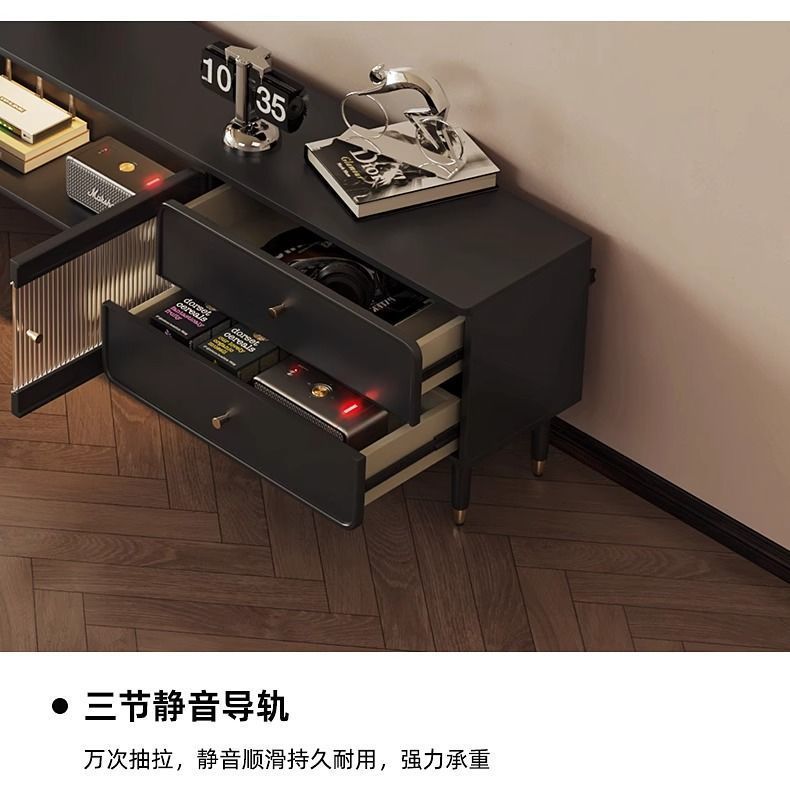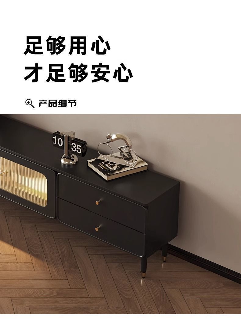 电视柜茶几组合套装简约现代小户型客厅黑色落地柜电视柜边柜